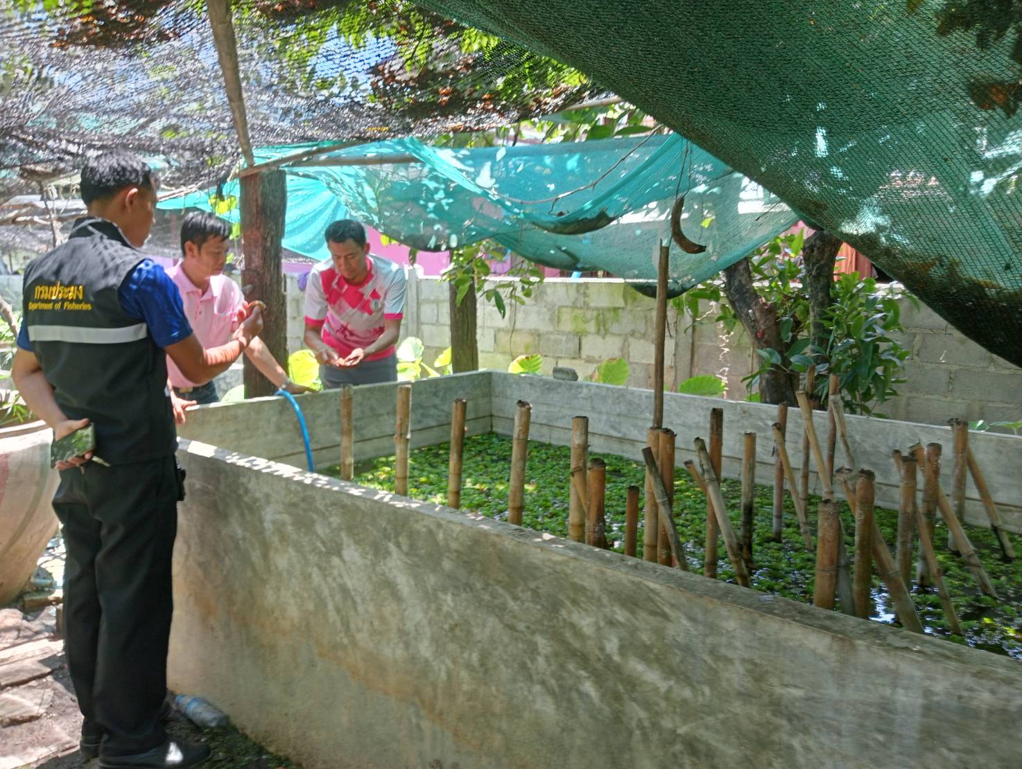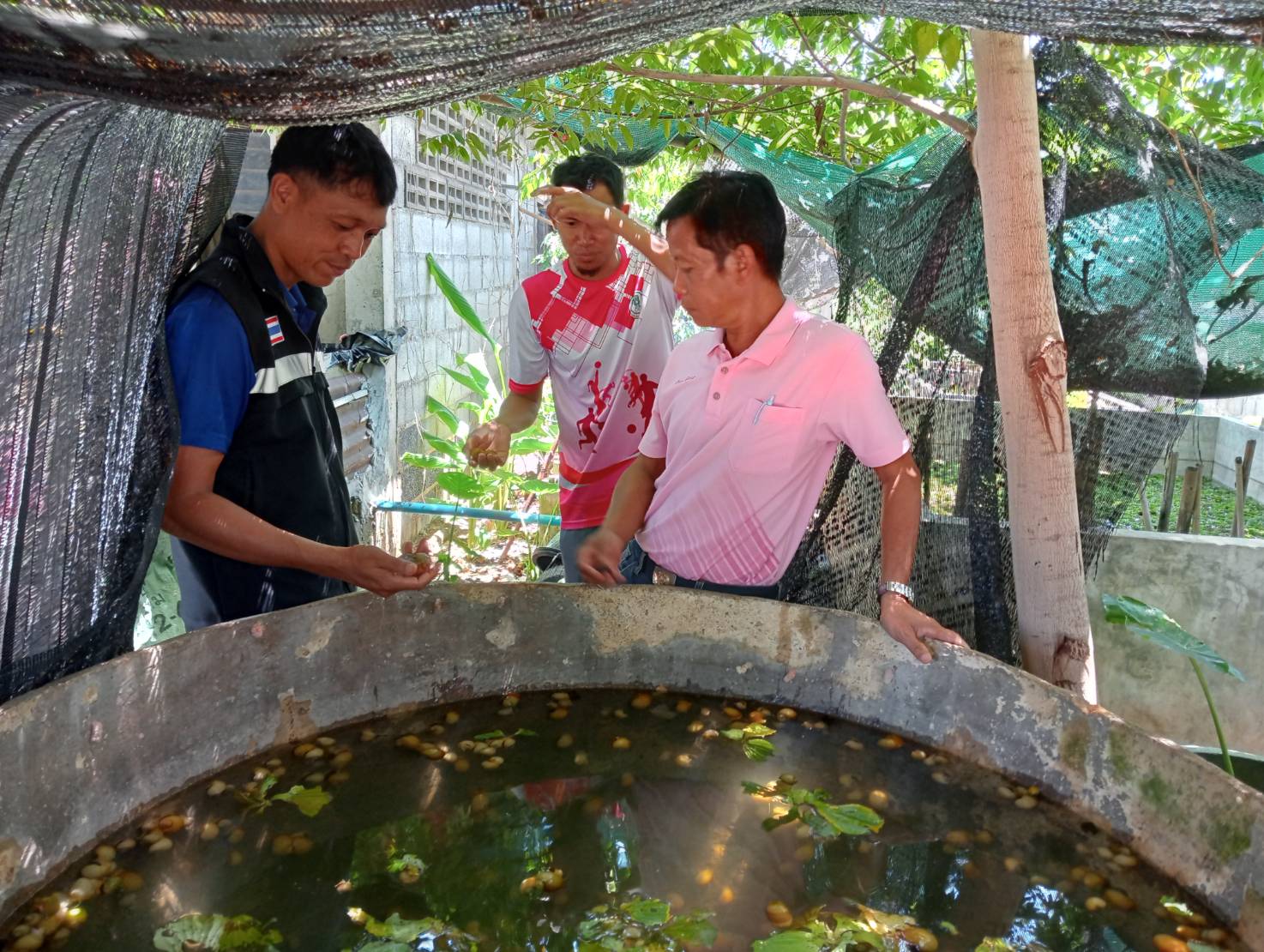 วันที่ 6 กรกฏาคม 2566   นายบุญหลาย กุลนารัตน์ ประมงจังหวัดหนองบัวลำภู มอบหมายให้ นายสมมิตร ธรรมมิยะ ประมงอำเภอสุวรรณคูหา ร่วมกับ นายธีรศักดิ์ ศรีร่องหอย นักวิชาการประมงปฏิบัติการ และนางสาวสายสมร พลบูรณ์ นักวิชาการประมง ออกพื้นที่ปฏิบัติงาน แนะนำให้ความรู้ การเพาะเลี้ยง การควบคุมการเลี้ยง และแนะแนวทางในการขอจดสิทธิบัตรการพัฒนาปรับปรุงพันธุ์หอยไข่มุข ซึ่งได้จากการผสมพันธุ์ระหว่างหอยเชอรี่สีทองจำนวน 2 สายพันธุ์ และ หอยโข่งภาคใต้สีทอง ให้กับเกษตรกร