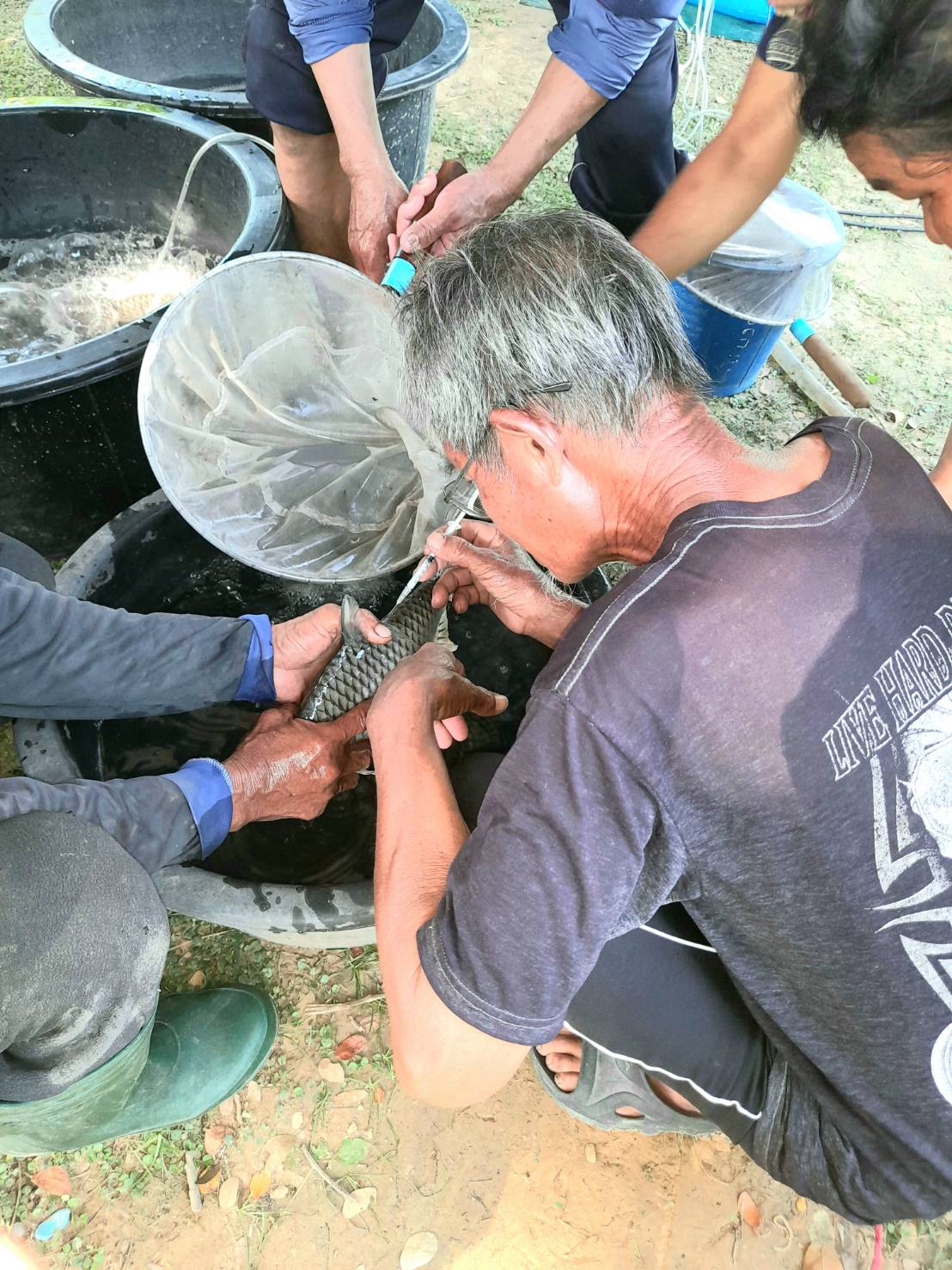 นายวิทยา ประเสริฐสังข์  ประมงอำเภอโนนสัง ร่วมกับนายพวง ช่างจักร ผญบ.บ้านหินสิ่วพร้อมสมาชิกเกษตรกรกลุ่มเพาะพันธุ์ปลาบ้านหินสิ่วร่วมกันขยายผลการเพาะพันธุ์ปลาตะเพียนขาวด้วยชุดเพาะพันธุ์ปลาเคลื่อนที่ (hatchery mobile งบยุทธศาสตร์จังหวัดปี 2565)ขยายผลให้แก่สมาชิก  ณ ศูนย์เรียนรู้นายวิชัย สิงหา บ้านหินสิ่วตำบลบ้านถิ่น อ.โนนสัง จังหวัดหนองบัวลำภู