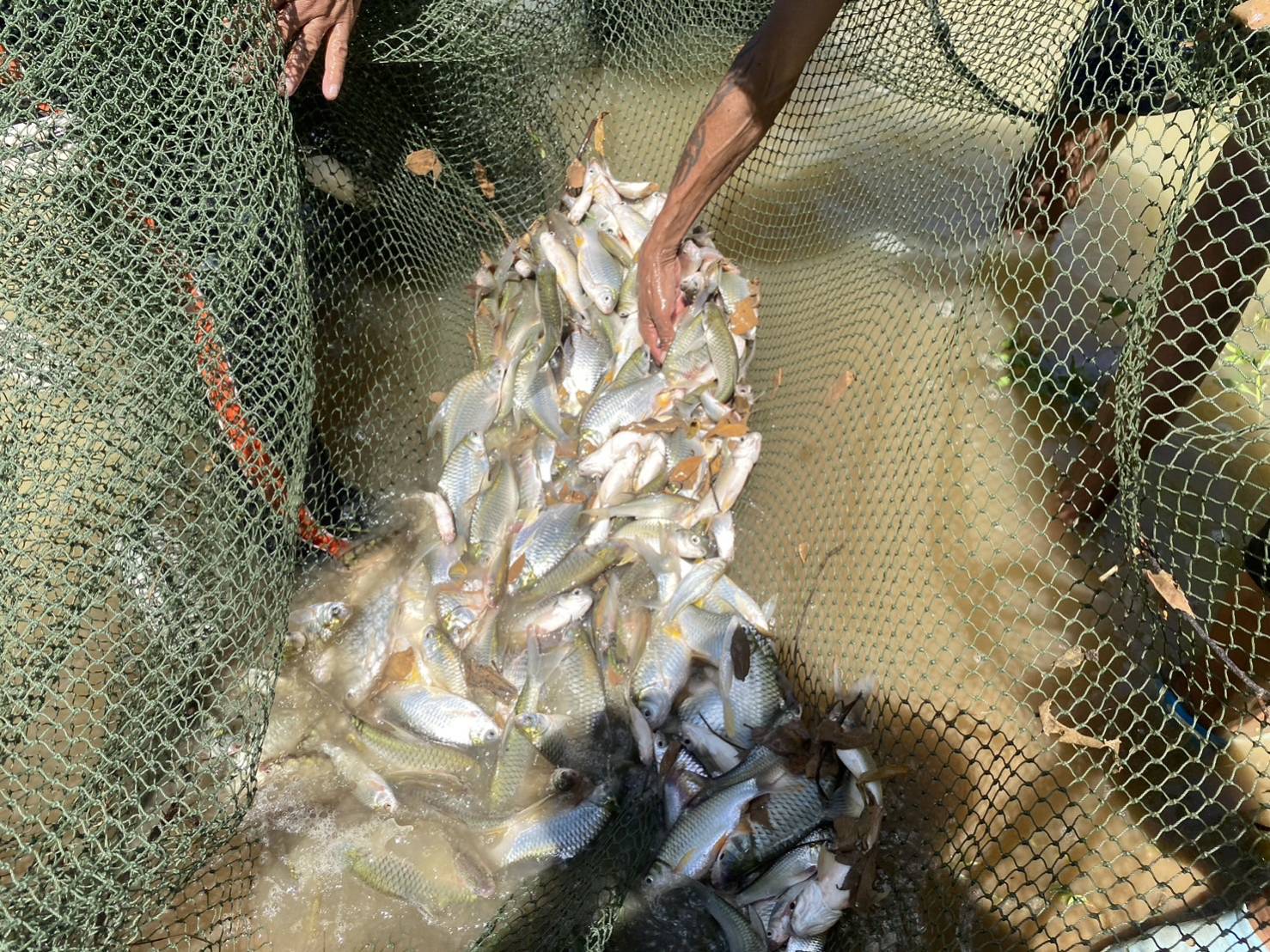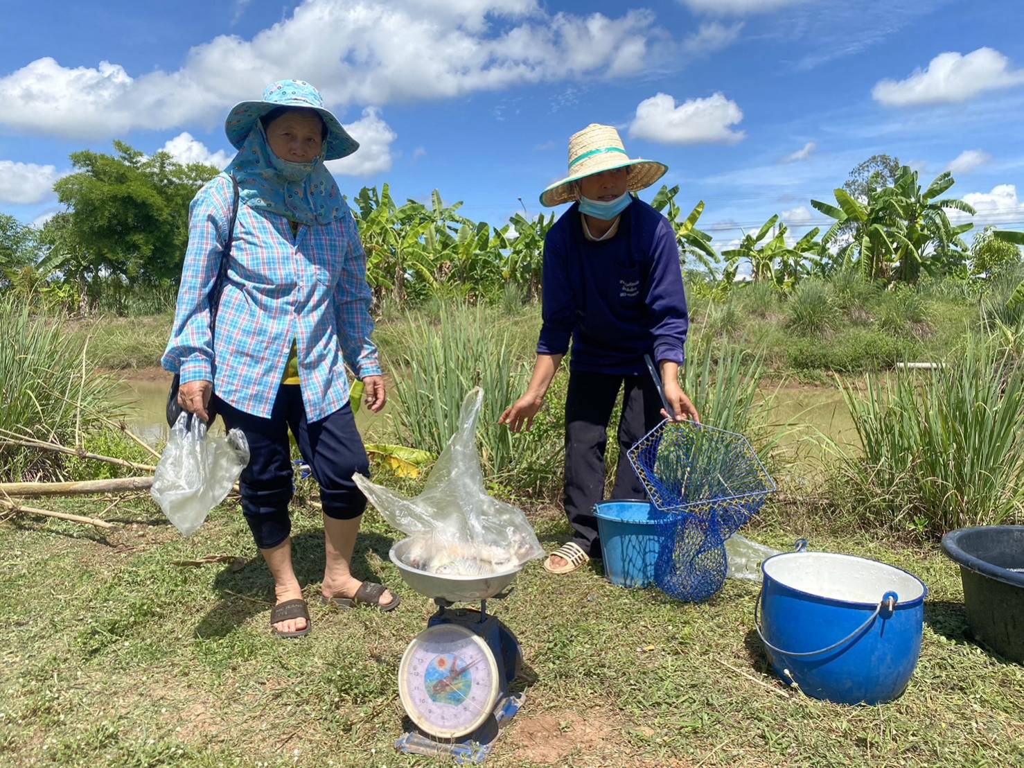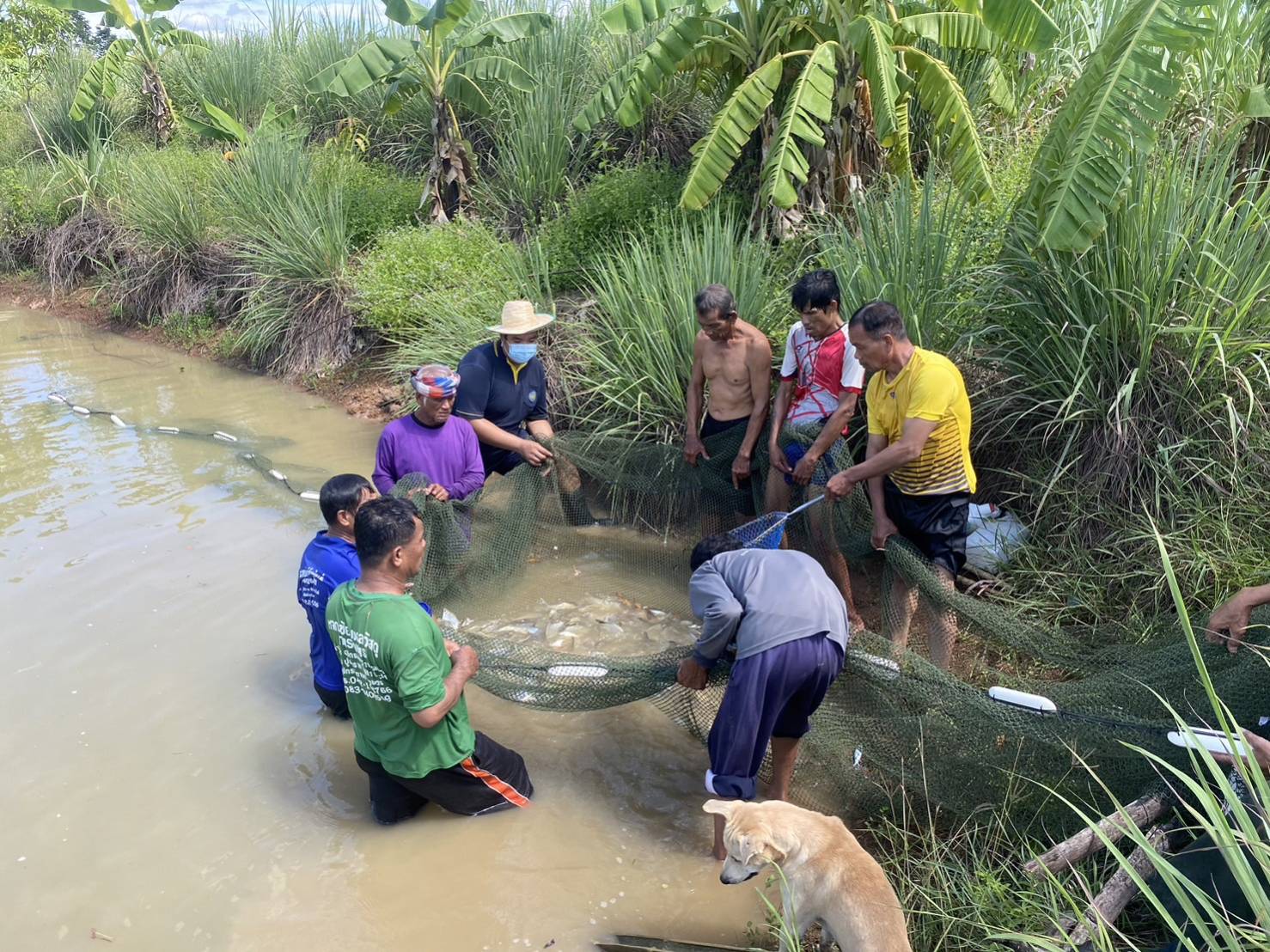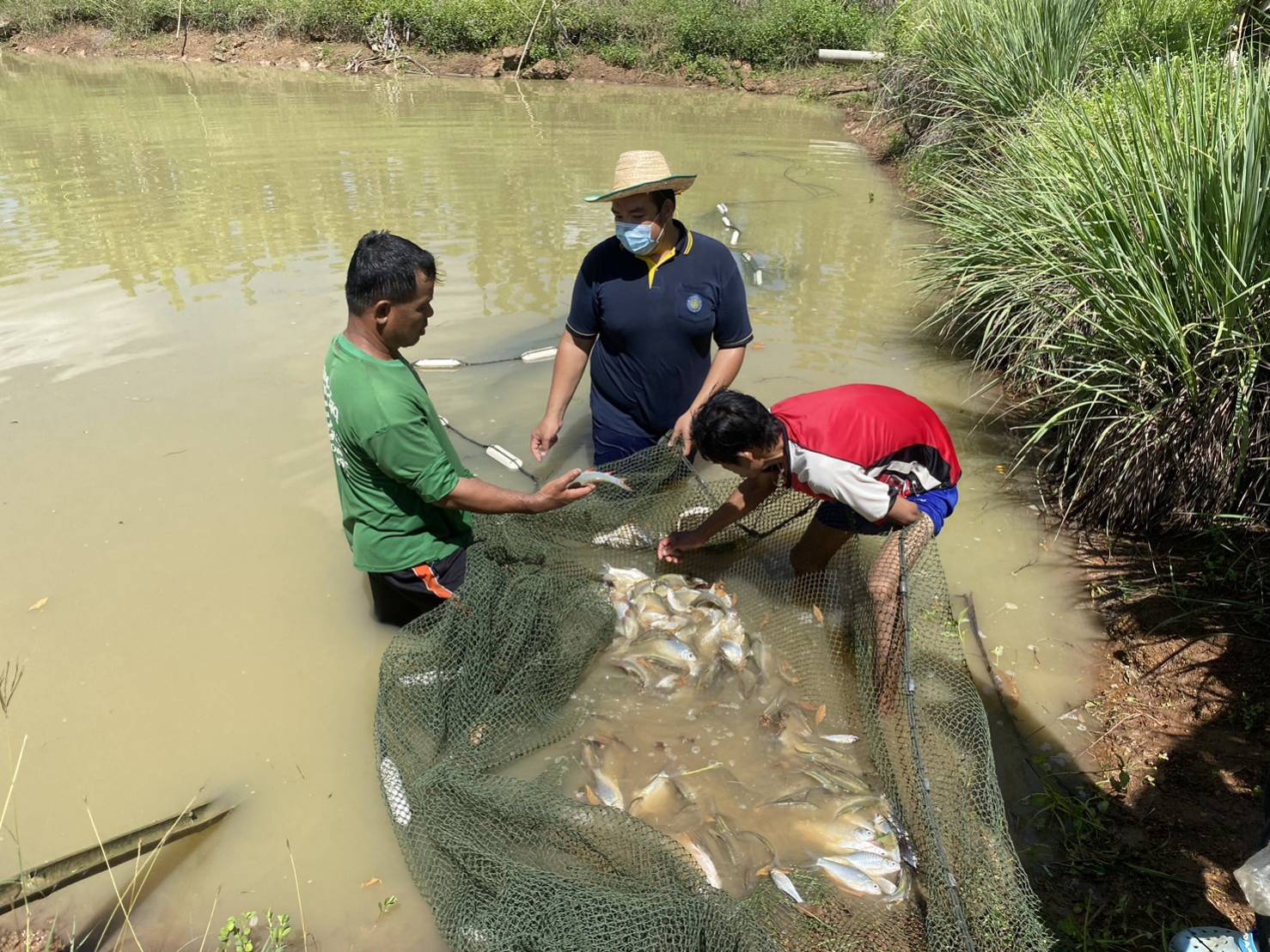 นายเมธา ตาลเหล็ก ประมงอำเภอนากลาง ร่วมกับนายไพศาล ศรีคูณ นักวิชาการประมง กลุ่มพัฒนาและส่งเสริมอาชีพการประมง สำนักงานประมงจังหวัดหนองบัวลำภู ติดตามการดำเนินกิจกรรมเกษตรกรกลุ่มแปลงใหญ่ปลาตะเพียนขาวตำบลอุทัยสวรรค์ (กลุ่มปี 2564) ดำเนินการจับผลผลิตปลาตะเพียนขาว จำหน่ายในชุมชน