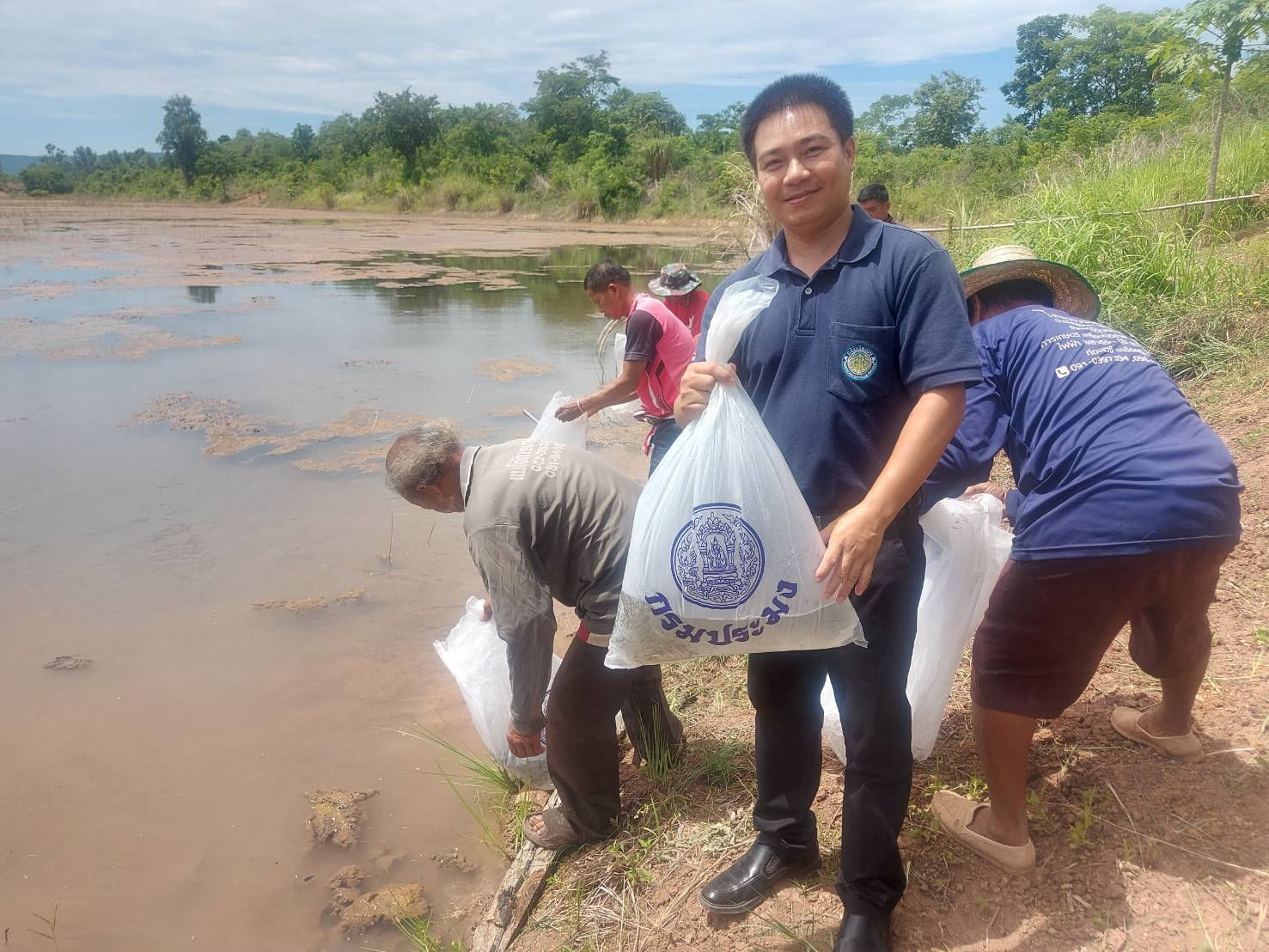 นายสมภาร วังคีรี ประมงอำเภอเมืองหนองบัวลำภู ร่วมกับเจ้าหน้าที่ศูนย์วิจัยและพัฒนาประมงน้ำจืดอุดรธานี ออกพบปะและให้คำแนะนำพร้อมปล่อยพันธุ์สัตว์น้ำโครงการเพิ่มผลผลิตสัตว์น้ำเศรษฐกิจที่มีมูลค่าสูงเพื่อสร้างรายได้ ณ แหล่งน้ำหนองโน ม.2 ต.หัวนา อ.เมือง จ.หนองบัวลำภู พื้นที่ 30 ไร่ (ปล่อยปลายี่สกเทศ 15,000 ตัว)