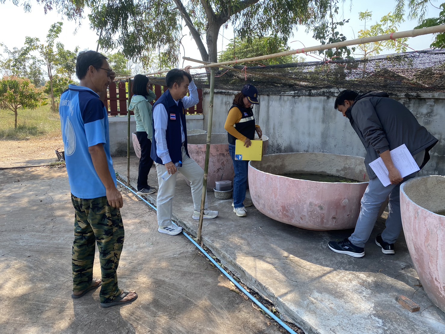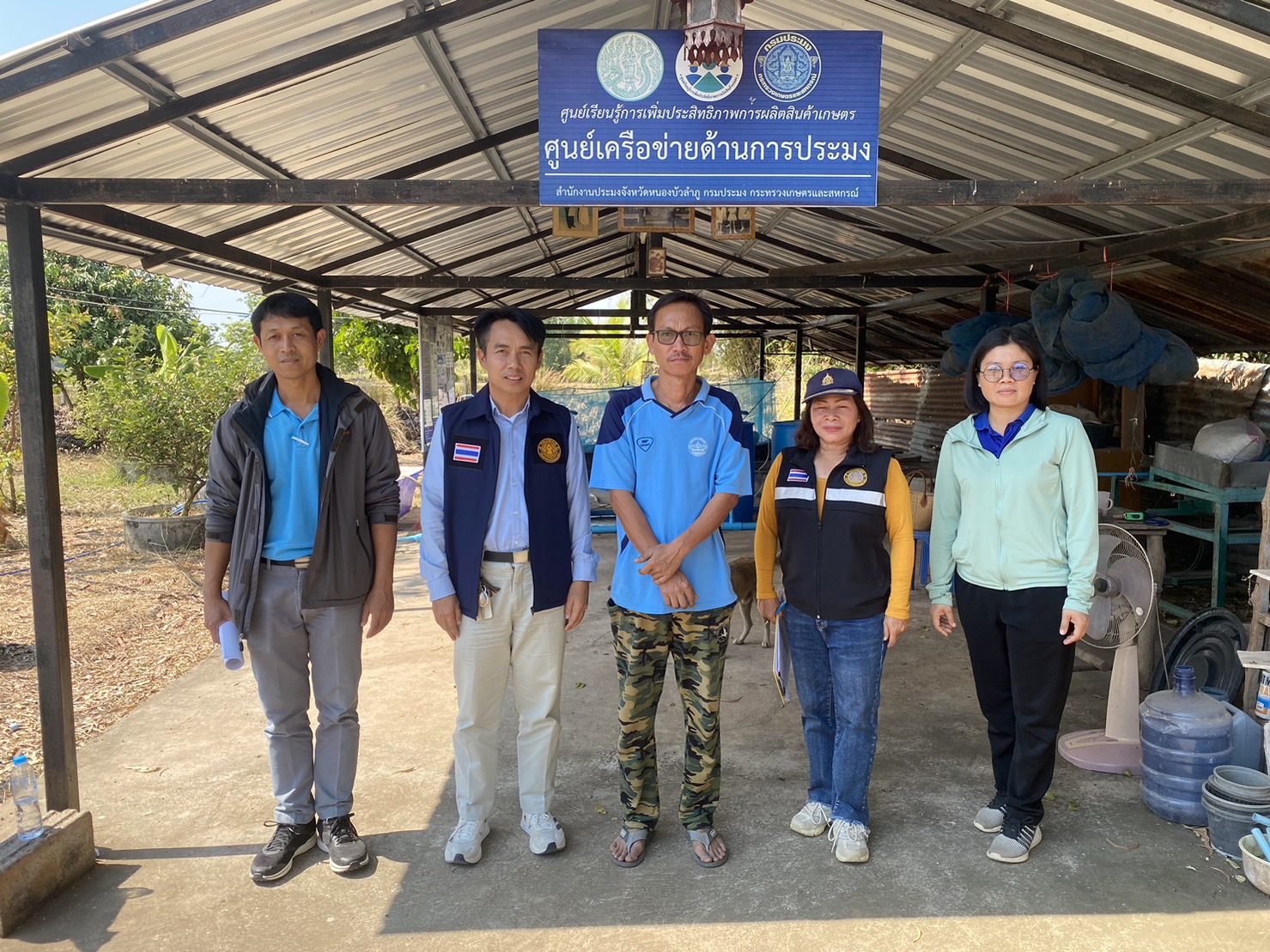 นางสาวทัศนีย์ สุนนท์ชัย หัวหน้ากลุ่มพัฒนาและส่งเสริมอาชีพการประมง พร้อมด้วยนายธีรศักดิ์ ศรีร่องหอย นักวิชาการประมงปฏิบัติการ นางสาวสายสมร พลบูรณ์ นักวิชาการประมง และนายไพศาล ศรีคูณ นักวิชาการประมง ซึ่งเป็นคณะกรรมการพิจารณาคัดเลือก ศพก.เครือข่ายด้านการประมง เพื่อเป็นต้นแบบระดับจังหวัดประจำปีงบประมาณ 2567