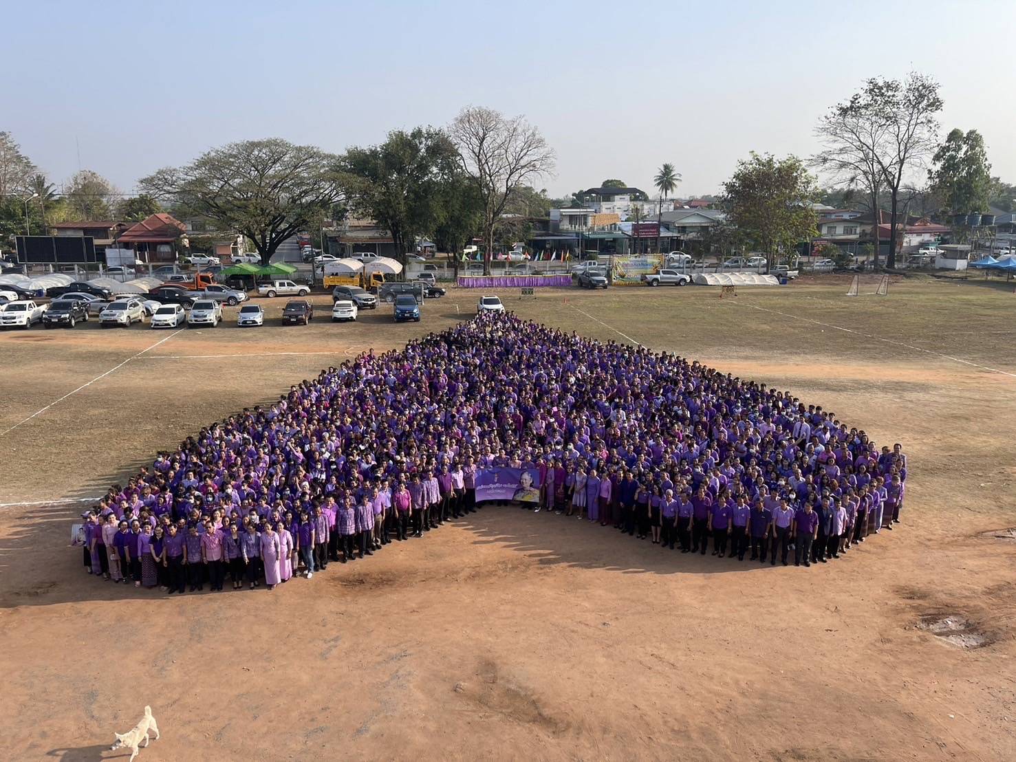 โดยผู้ร่วมพิธีกว่า 1,568 คน ได้พร้อมใจกันแต่งกายด้วยชุดโทนสีม่วง ซึ่งเป็นสีประจำพระองค์ของสมเด็จพระกนิษฐาธิราชเจ้า กรมสมเด็จพระเทพรัตนราชสุดาฯ สยามบรมราชกุมารี มาร่วมกันแสดงพลังแห่งความจงรักภักดี ด้วยการแปรอักษรเป็นรูปหัวใจ ร้องเพลงชาติไทย ขับร้องเพลงเฉลิมพระเกียรติ "สมเด็จพระกนิษฐาธิราชเจ้า" และกล่าวคำถวายพระพร "ทรงพระเจริญ" เพื่อร่วมแสดงพลัง ถวายกำลังใจแด่สมเด็จพระกนิษฐาธิราชเจ้า กรมสมเด็จพระเทพรัตนราชสุดาฯ สยามบรมราชกุมารี ผู้ทรงเป็นที่รักของปวงชนชาวไทย