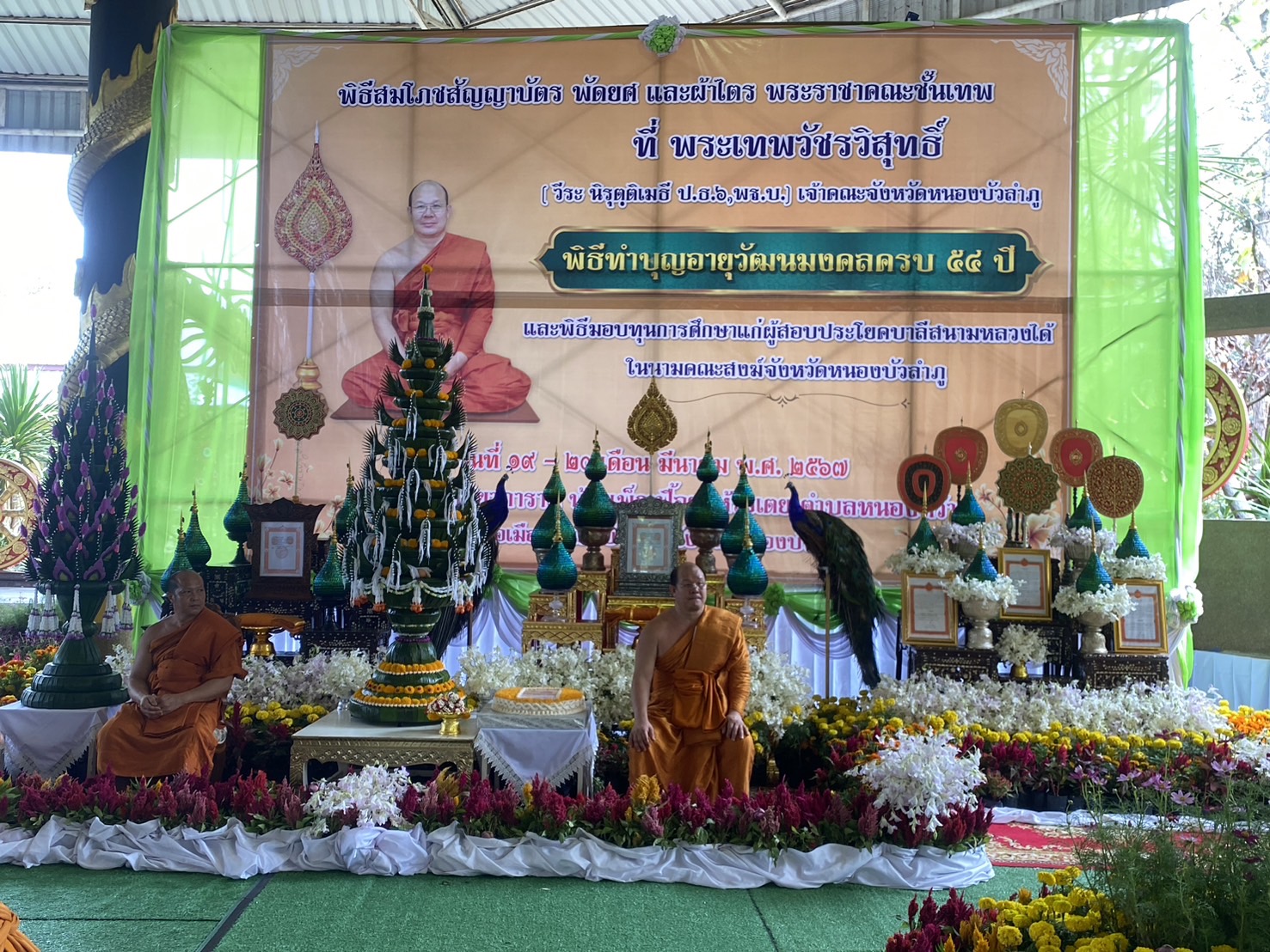 วันที่ 20 มีนาคม พ.ศ. 2567 นายบุญหลาย กุลนารัตน์ ประมงจังหวัดหนองบัวลำภู พร้อมด้วย นายไพศาล ศรีคูณ นักวิชาการประมง ร่วมพิธีสมโภชสัญญาบัตรพัดยศ และผ้าไตร พระราชาคณะชั้นเทพ ที่พระเทพวัชรวิสุทธิ์ เจ้าคณะจังหวัดหนองบัวลำภู พิธีทำบุญอายุวัฒนมงคล 54 ปี ณ วัดพัชรกิติยาภาราม บ้านเฟ็กเฟื้อย ห้วยเตย ต.หนองหว้า อ.เมือง จ.หนองบัวลำภู