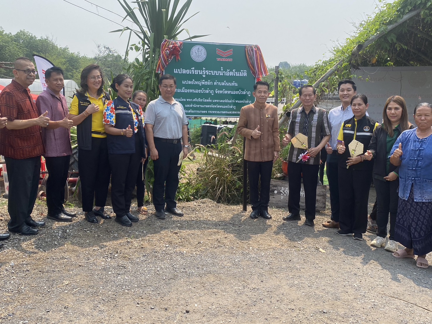 นางสาวทัศนีย์ สุนนท์ชัย รักษาราชการแทนประมงจังหวัดหนองบัวลำภู พร้อมด้วยนายไพศาล ศรีคูณ นักวิชาการประมง ร่วมเป็นเกียรติในพิธีรับมอบระบบการให้น้ำอัตโนมัติ