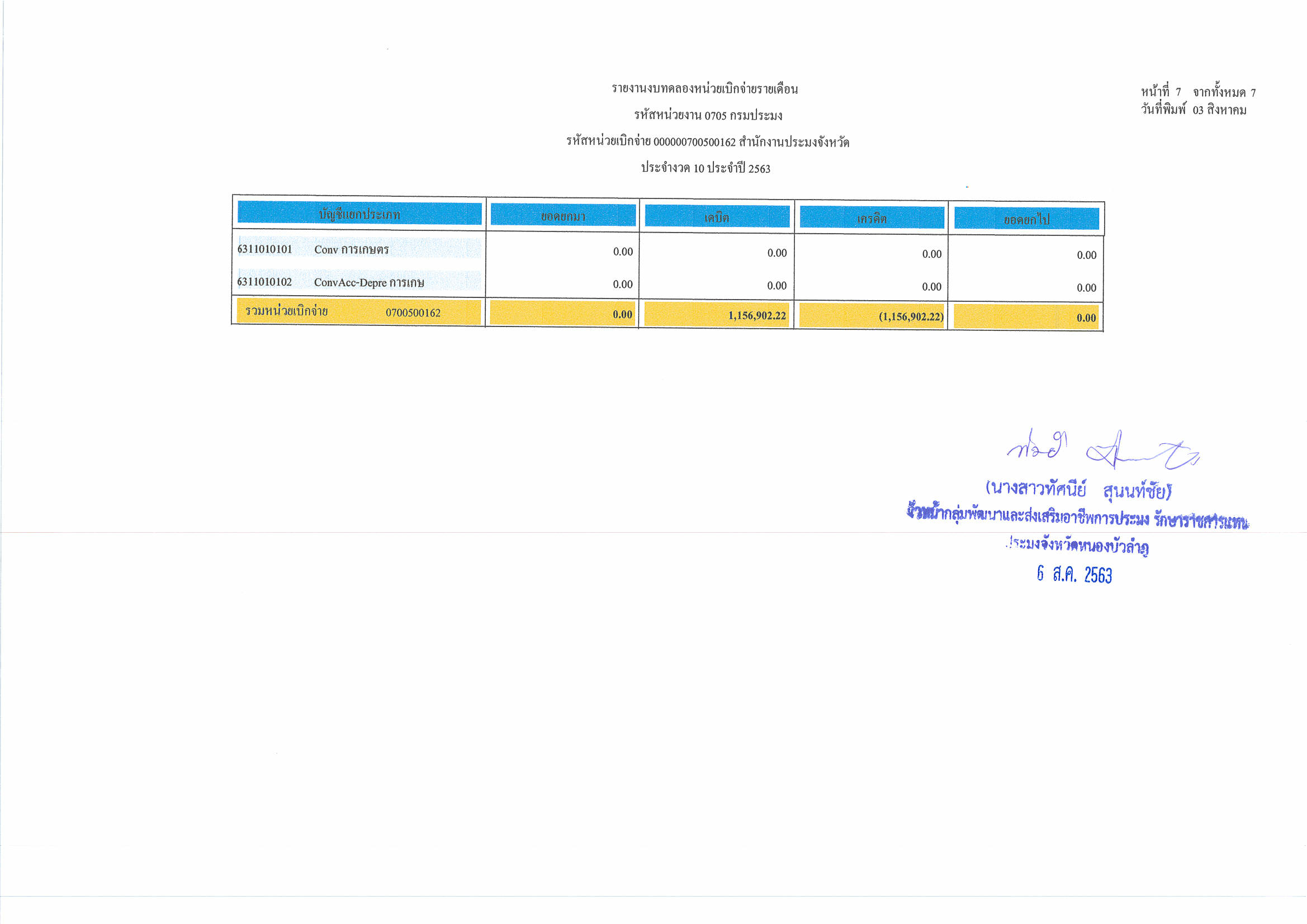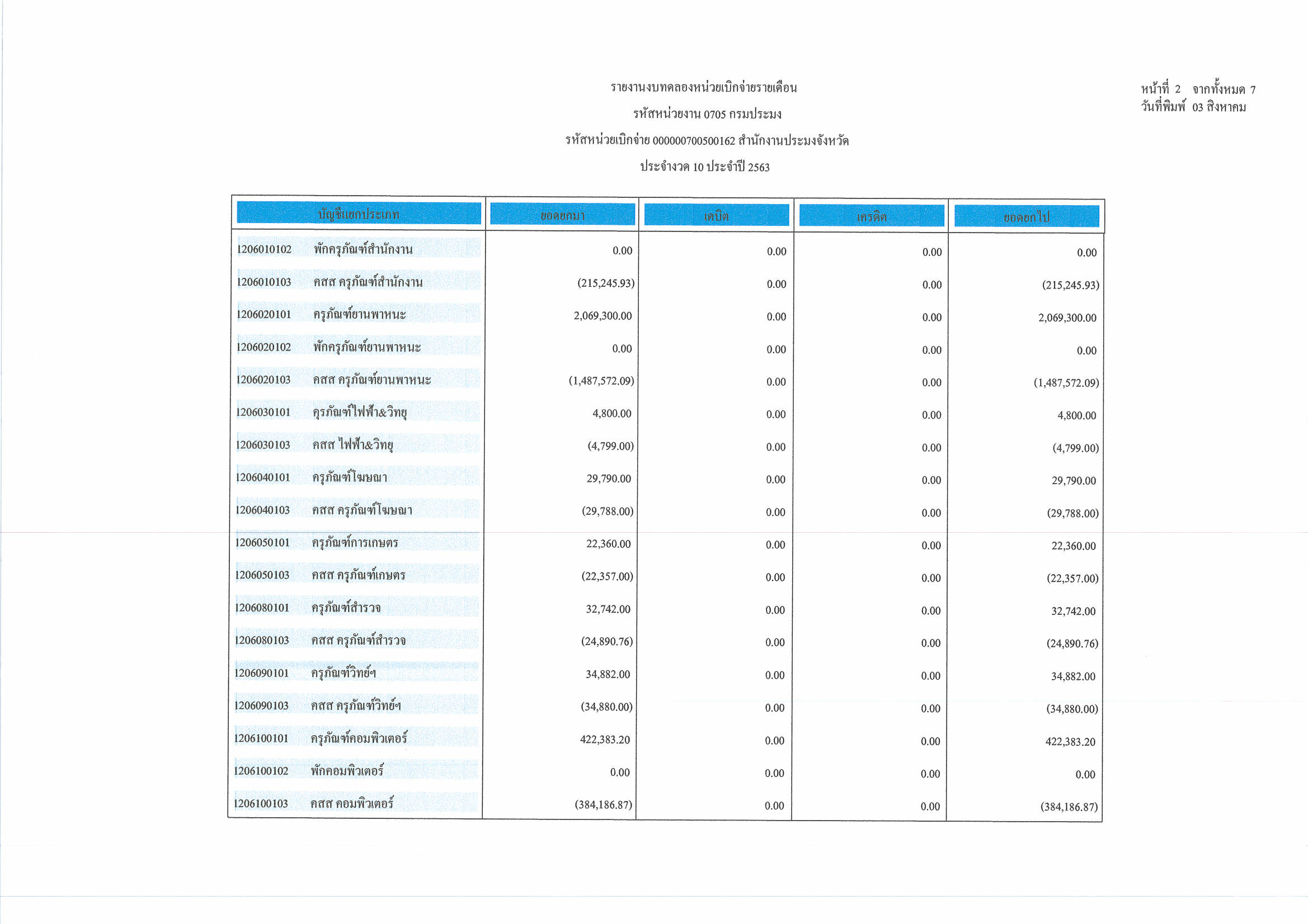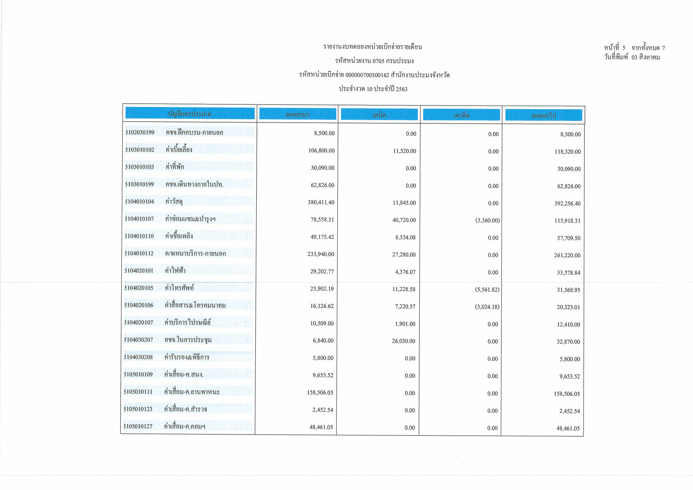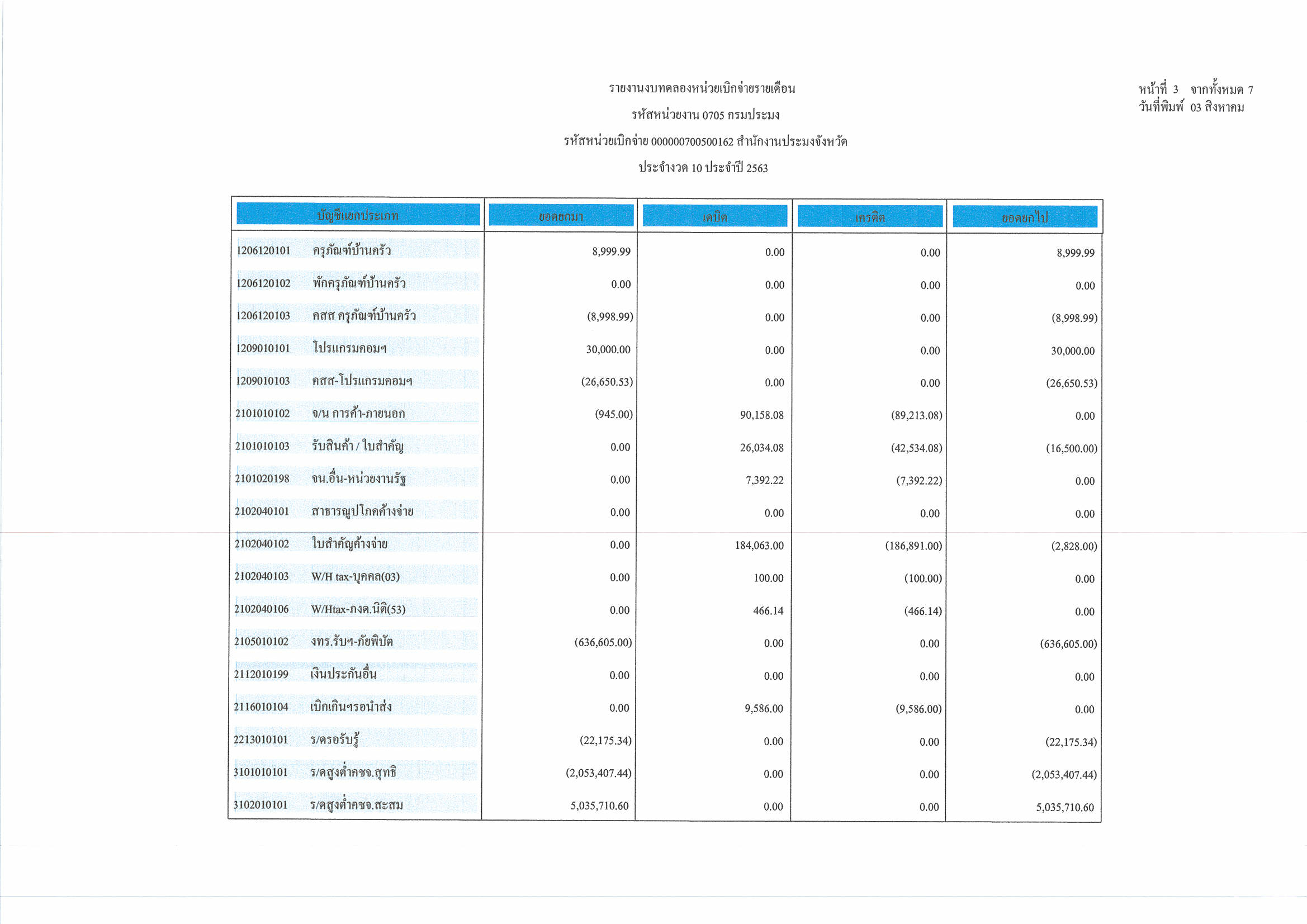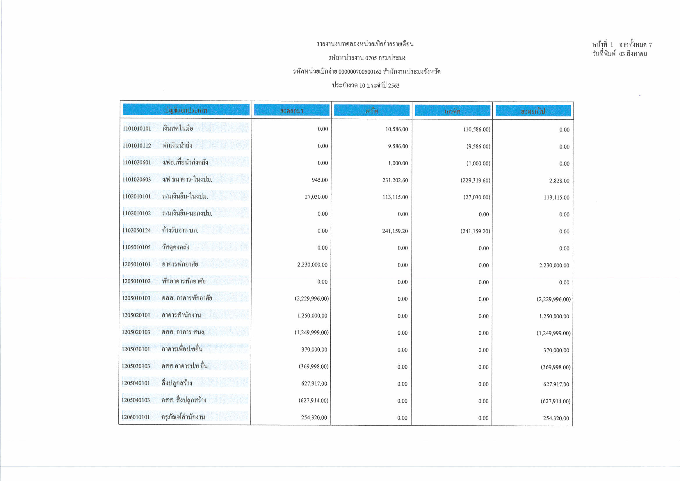 งบทดลอง ประจำเดือน กรกฎาคม 2563..คลิก