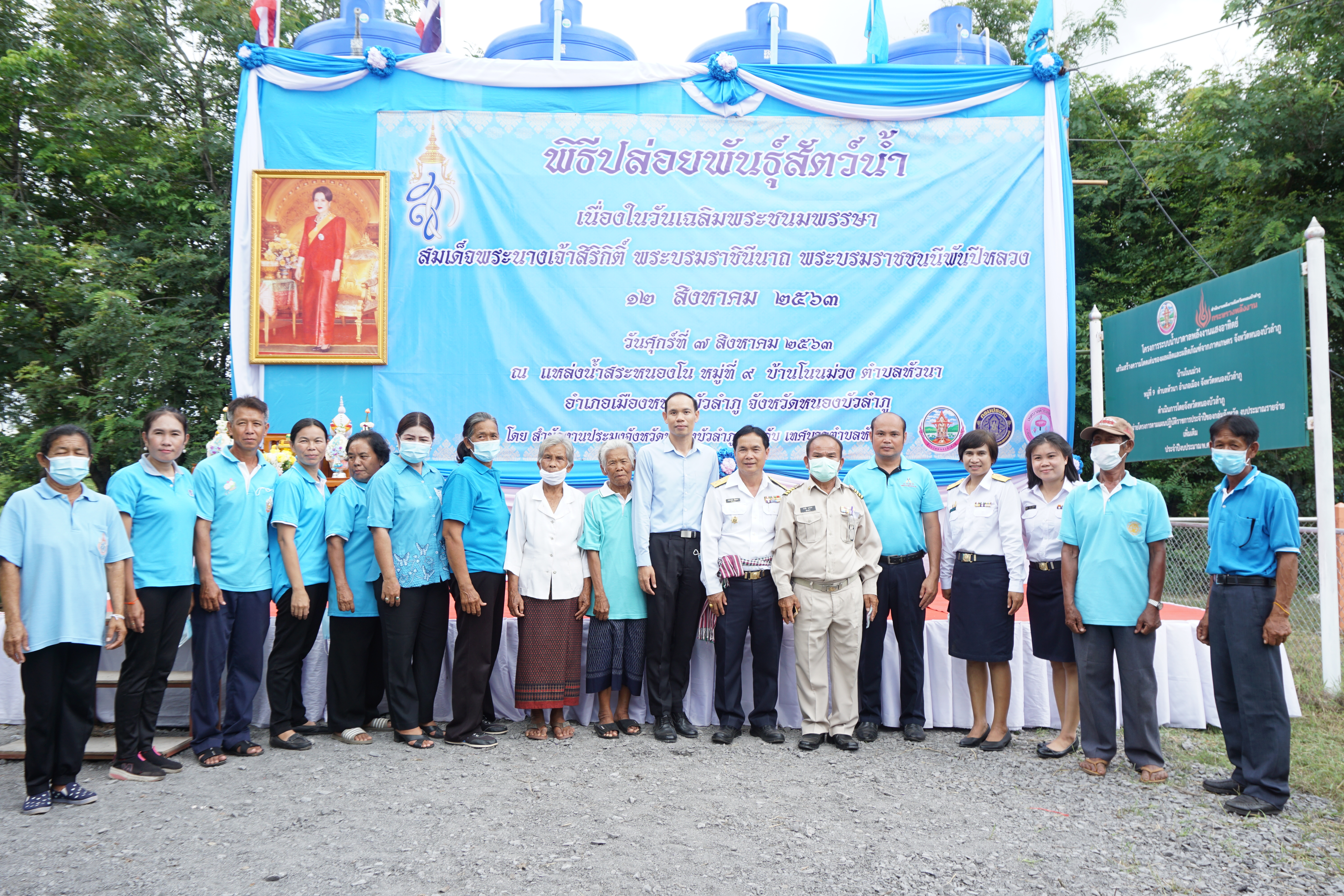 วันที่ 7 สิงหาคม 2563 สำนักงานประมงจังหวัดหนองบัวลำภู ร่วมกับเทศบาลตำบลหัวนา จัดพิธีปล่อยพันธุ์สัตว์น้ำเพื่อเฉลิมพระเกียรติและถวายเป็นพระราชกุศลแด่ สมเด็จพระนางเจ้าสิริกิติ์ พระบรมราชินีนาถ พระบรมราชชนนีพันปีหลวง เนื่องในโอกาสวันเฉลิมพระชนมพรรษา 88 พรรษา 12 สิงหาคม 2563 ณ แหล่งน้ำสระหนองโน หมู่ 9 บ้านโนนม่วง ตำบลหัวนา อำเภอเมืองหนองบัวลำภู จังหวัดหนองบัวลำภู บริเวณเนื้อที่ 70 ไร่ ทั้งนี้ได้รับการสนับสนุนพันธุ์สัตว์น้ำจากศูนย์วิจัยและพัฒนาการเพาะเลี้ยงสัตว์น้ำจืด เขต 4 (อุดรธานี) จำนวน 300,000 ตัว พันธุ์ปลากินพืช (ยี่สกเทศ) โดยมีหัวหน้าส่วนราชการระดับจังหวัด และผู้แทน ร่วมพิธี จำนวน 22 หน่วยงาน หัวหน้าส่วนระดับอำเภอ จำนวน 13 หน่วยงาน และผู้บริหารองค์กรปกครองส่วนท้องถิ่น กำนัน ผู้ใหญ่บ้าน ผู้นำชุมชน จิตอาสา นักเรียน นักศึกษา และประชาชนชาวตำบลหัวนา จำนวน 300 คน ร่วมกิจกรรมในพิธีปล่อยพันธุ์สัตว์น้ำฯ โดยมี นายเวียงชัย แก้วพินิจ รองผู้ว่าราชการจังหวัดหนองบัวลำภู เป็นประธาน ในพิธี