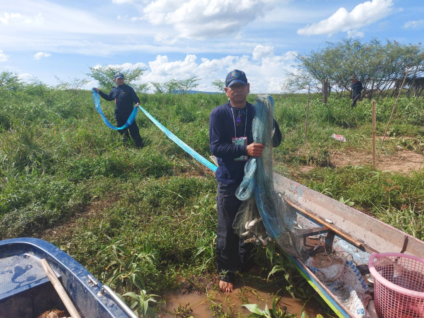 วันที่ 13 สิงหาคม 2563 เวลา 09.00 น. ชุดเฉพาะกิจควบคุมการทำการประมงอ่างเก็บน้ำเขื่อนอุบลรัตน์ ในช่วงฤดูน้ำแดง ประจำปี 2563 โดยสำนักงานประมงจังหวัดหนองบัวลำภู สำนักงานประมงอำเภอโนนสัง หน่วยป้องกันและปราบปรามประมงน้ำจืดเขื่อนอุบลรัตน์และอาสาสมัครอนุรักษ์สัตว์น้ำ ได้ออกปฏิบัติงานตรวจตราป้องปรามเฝ้าระวังการทำการประมงที่ผิดกฎหมายบริเวณเขตอนุรักษ์พันธุ์สัตว์น้ำ บ.หนองเหมือดแอ่ ต.หนองเรือ และตามลำน้ำพองบริเวณ บ.โนนกุดหิน ต.หนองเรือ ถึงลำน้ำพองบริเวณโนนแดง บ.โนนสว่าง ต.โนนเมือง อ.โนนสัง จ.หนองบัวลำภู