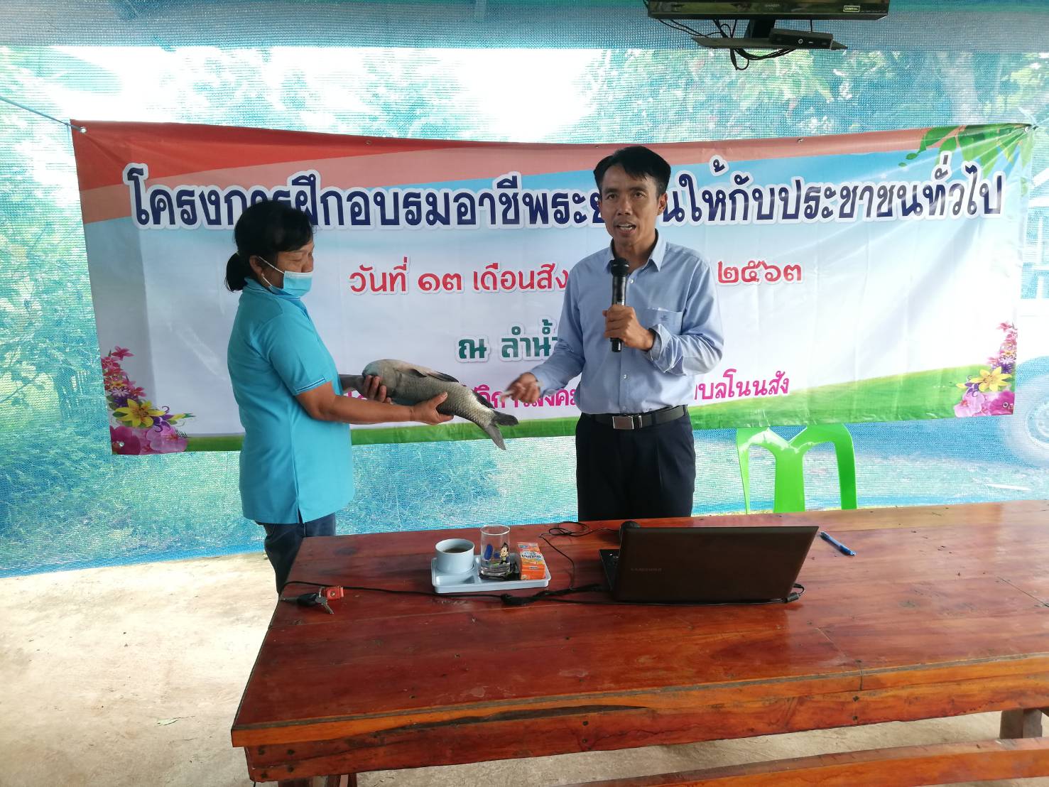 วันที่13 สิงหาคม 2563 นายวิทยา ประเสริฐสังข์ ประมงอำเภอโนนสัง ร่วมเป็นวิทยากรบรรยายการฝึกอาชีพระยะสั้นบรรยายในหัวข้อการเพาะเลี้ยงและอนุบาลสัตว์น้ำจืดและฝึกปฏิบัติการเพาะปลายี่สกเทศ,ตะเพียน จัดโดยกองสวัสดิการเทศบาลตำบลโนนสัง อำเภอโนนสัง จังหวัดหนองบัวลำภู ณ ฟาร์มลำน้ำพันธุ์ปลา ศูนย์เรียนรู้การเพิ่มประสิทธิภาพการผลิตสินค้าเกษตร (ศพก.) เครือข่ายด้านการประมง