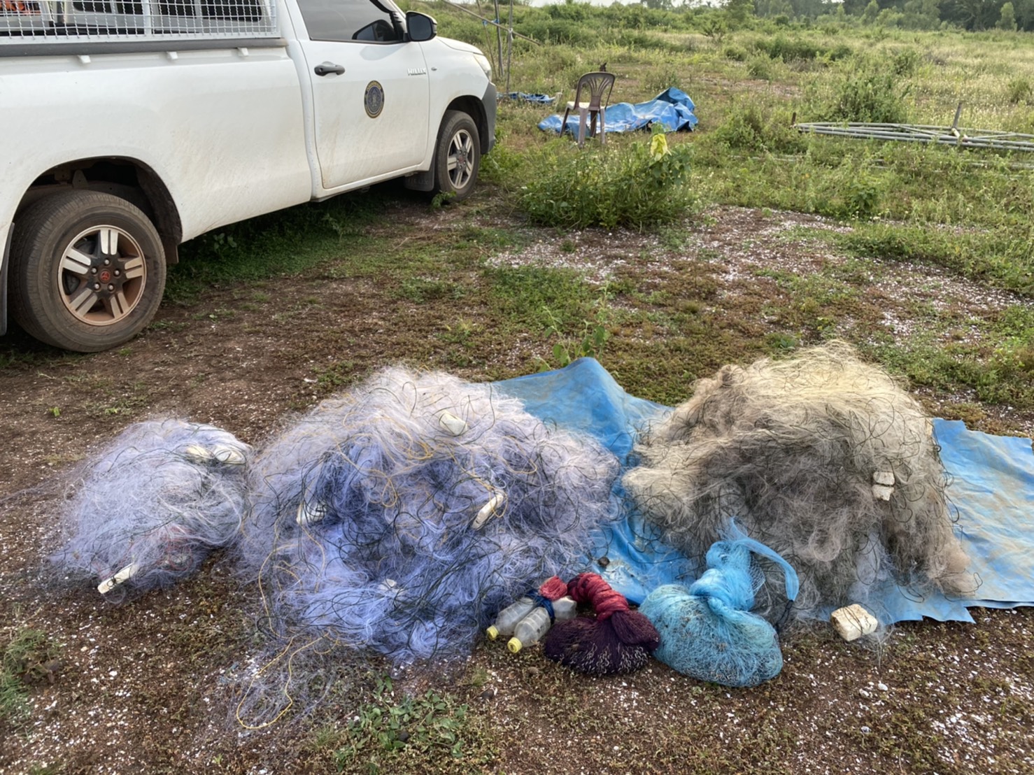 วันที่ 30 สิงหาคม 2563 ชุดเฉพาะกิจควบคุมการทำการประมงอ่างเก็บน้ำเขื่อนอุบลรัตน์ ในช่วงฤดูน้ำแดง ประจำปี 2563 โดยสำนักงานประมงจังหวัดหนองบัวลำภู สำนักงานประมงอำเภอโนนสัง และอาสาสมัครอนุรักษ์สัตว์น้ำ ได้ออกปฏิบัติงานตรวจตราป้องปรามเฝ้าระวังการทำการประมงที่ผิดกฎหมายบริเวณเขตอนุรักษ์พันธุ์สัตว์น้ำ บ.หนองเหมือดแอ่ ต.หนองเรือ เขตอนุรักษ์พันธุ์สัตว์น้ำ บ.โคกใหญ่ ต.โคกใหญ่ และตามลำน้ำพองบริเวณ บ.โนนหินแห่ ต.หนองเรือ ถึงลำน้ำพองบริเวณโนนแดง บ.โนนสว่าง ต.โนนเมือง อ.โนนสัง จ.หนองบัวลำภู ได้ตรวจพบเครื่องมือที่ใช้ทำการประมง ประเภทข่ายลอย จำนวน 20 ผืน แหที่มีความยาวมากกว่า 6 ศอก จำนวน 2 ปาก ซึ่งเป็นเครื่องมือที่ห้ามทำการประมงตามประกาศกรมประมงในช่วงฤดูสัตว์น้ำจืดมีไข่ วางไข่ และเลี้ยงตัวในวัยอ่อน ซึ่งสอบถามชาวประมงไม่ทราบว่าผู้ใดเป็นเจ้าของ จึงได้ทำการตรวจยึดเครื่องมือดังกล่าว และลงบันทึกประจำวันที่ สภ.โนนสังจ.หนองบัวลำภู ไว้เป็นหลักฐาน