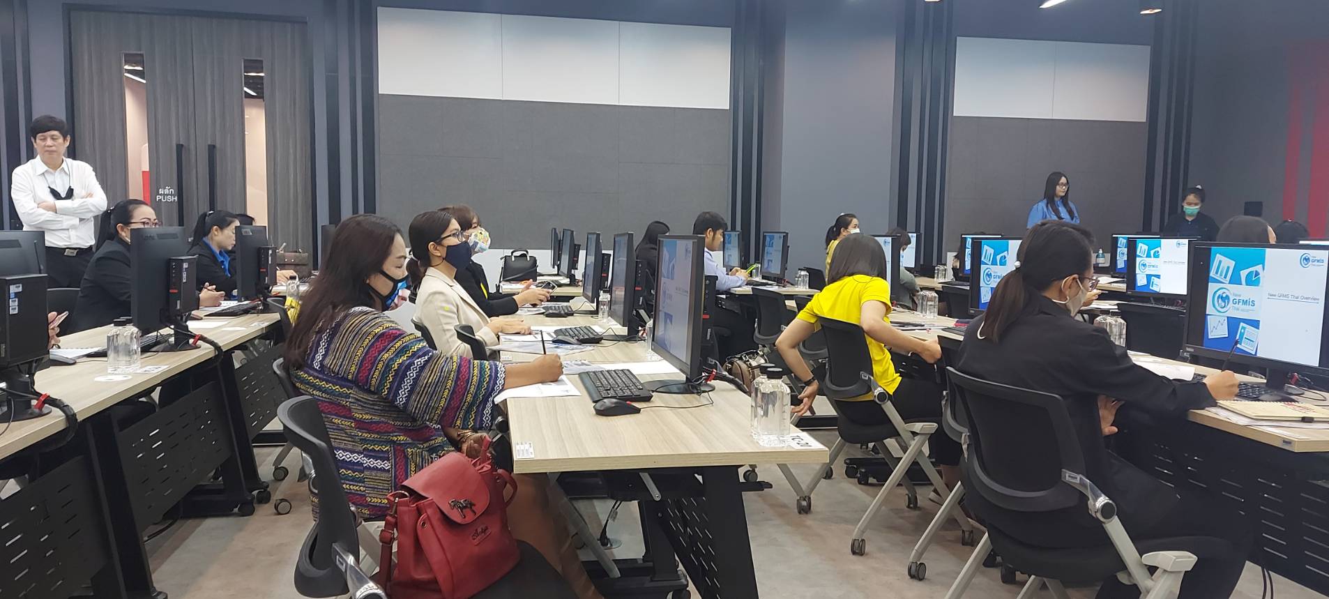 วันที่ 30 พฤศจิกายน - 4 ธันวาคม 2563 นางถนอมขวัญ นอศรี หัวหน้ากลุ่มบริหารและยุทธศาสตร์ พร้อมด้วย นางสาวบุรัสกร แสงไกร เจ้าพนักงานธุรการปฏิบัติงาน เข้าร่วมโครงการฝึกอบรมการใช้งานระบบ New Gfmis Thai สำหรับหน่วยเบิกจ่ายของส่วนราชการ ณ ห้อง Training Center บริษัท ยิบอินซอย จำกัด กรุงเทพมหานคร