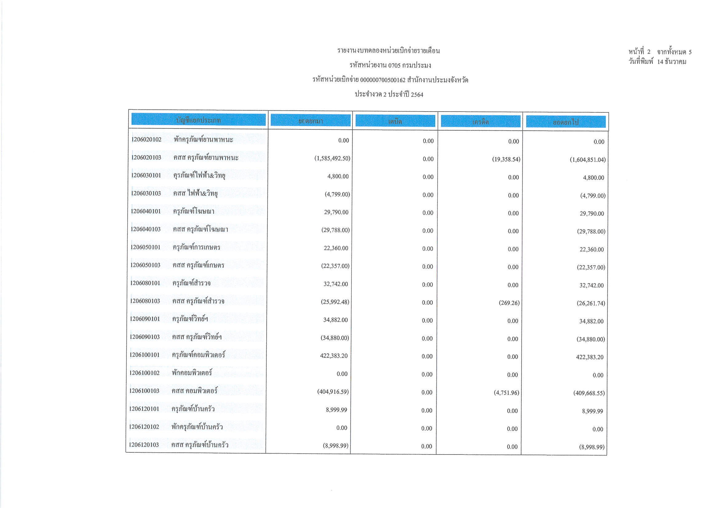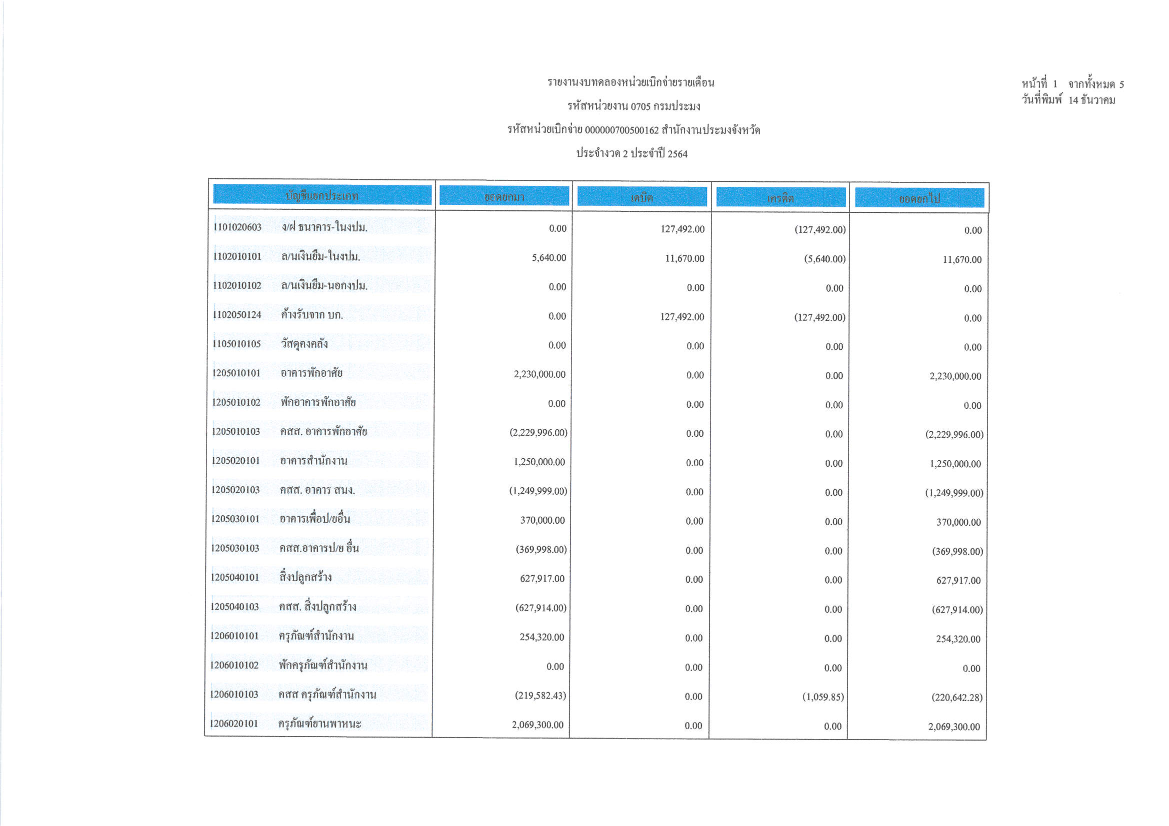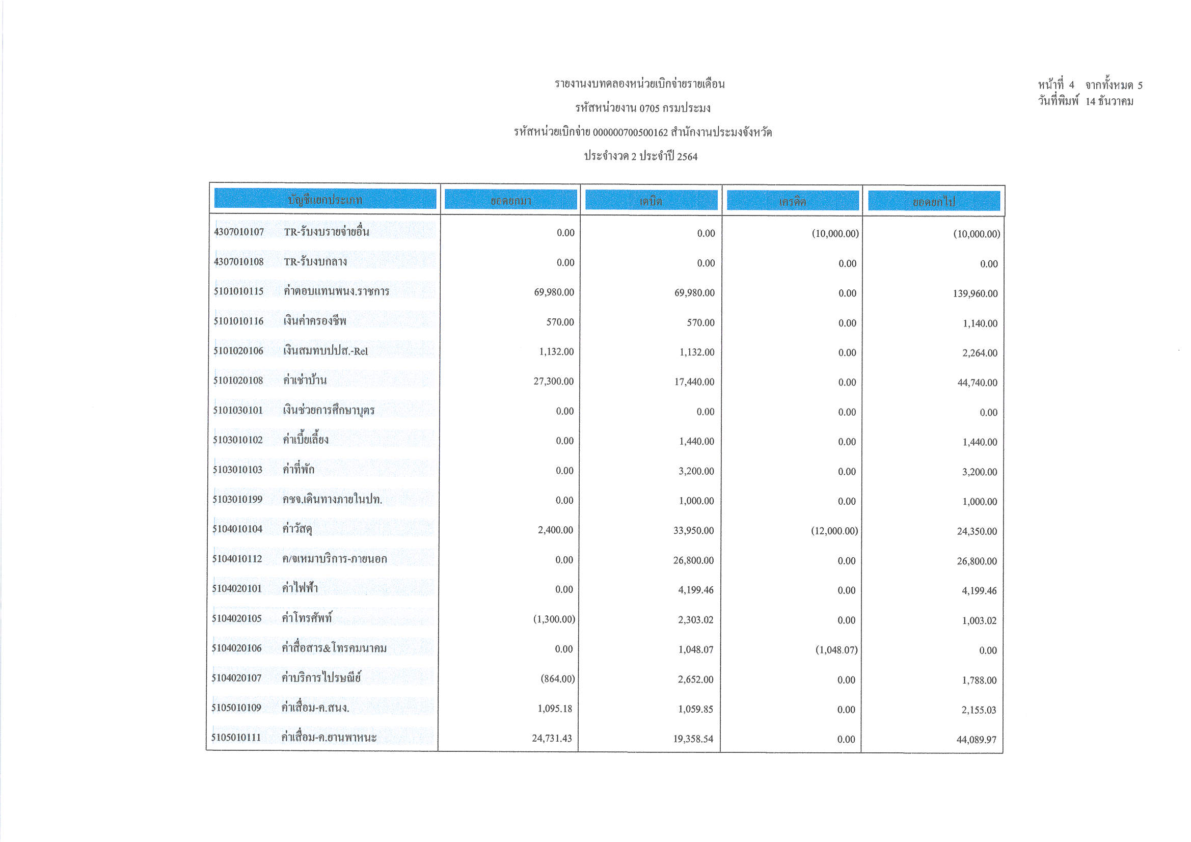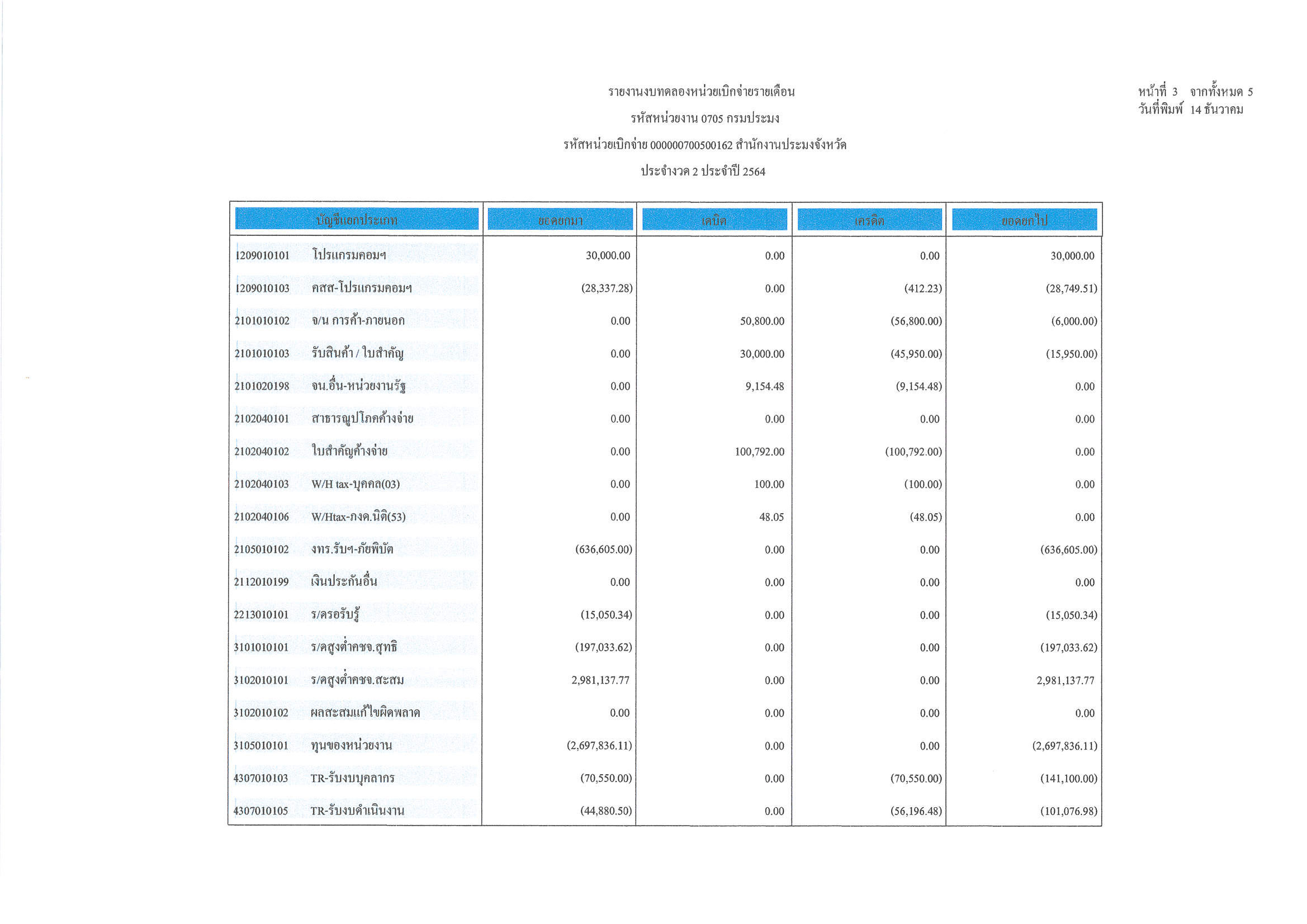 งบทดลอง ประจำเดือน พฤศจิกายน 2563
