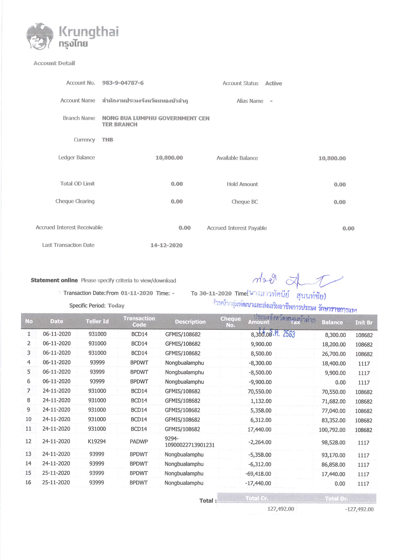 ภาพการเปิดเผยแสดงรายละเอียดประกอบรายการบัญชีที่สำคัญประกอบงบทดลองประจำเดือน พฤศจิกายน 2563