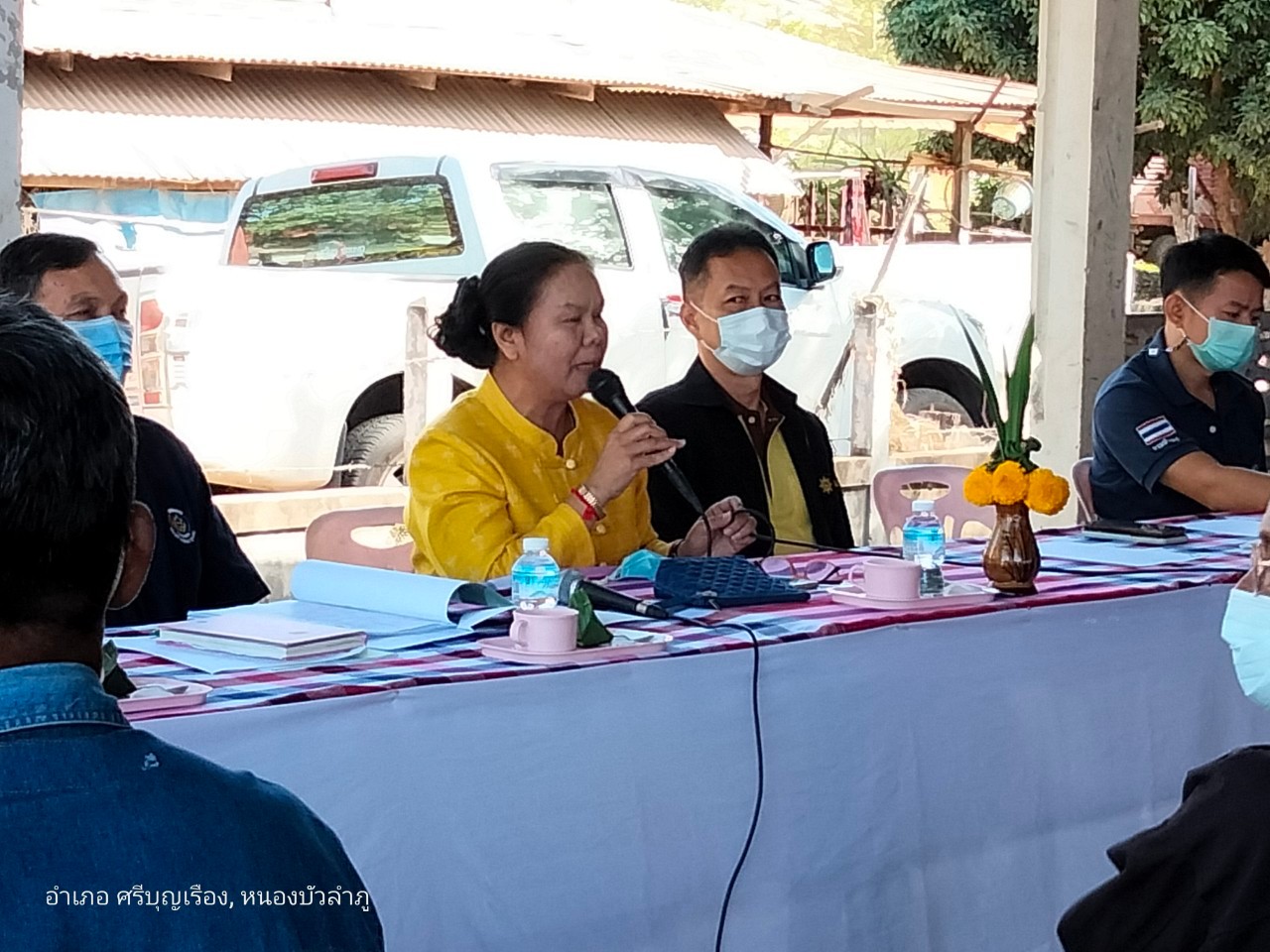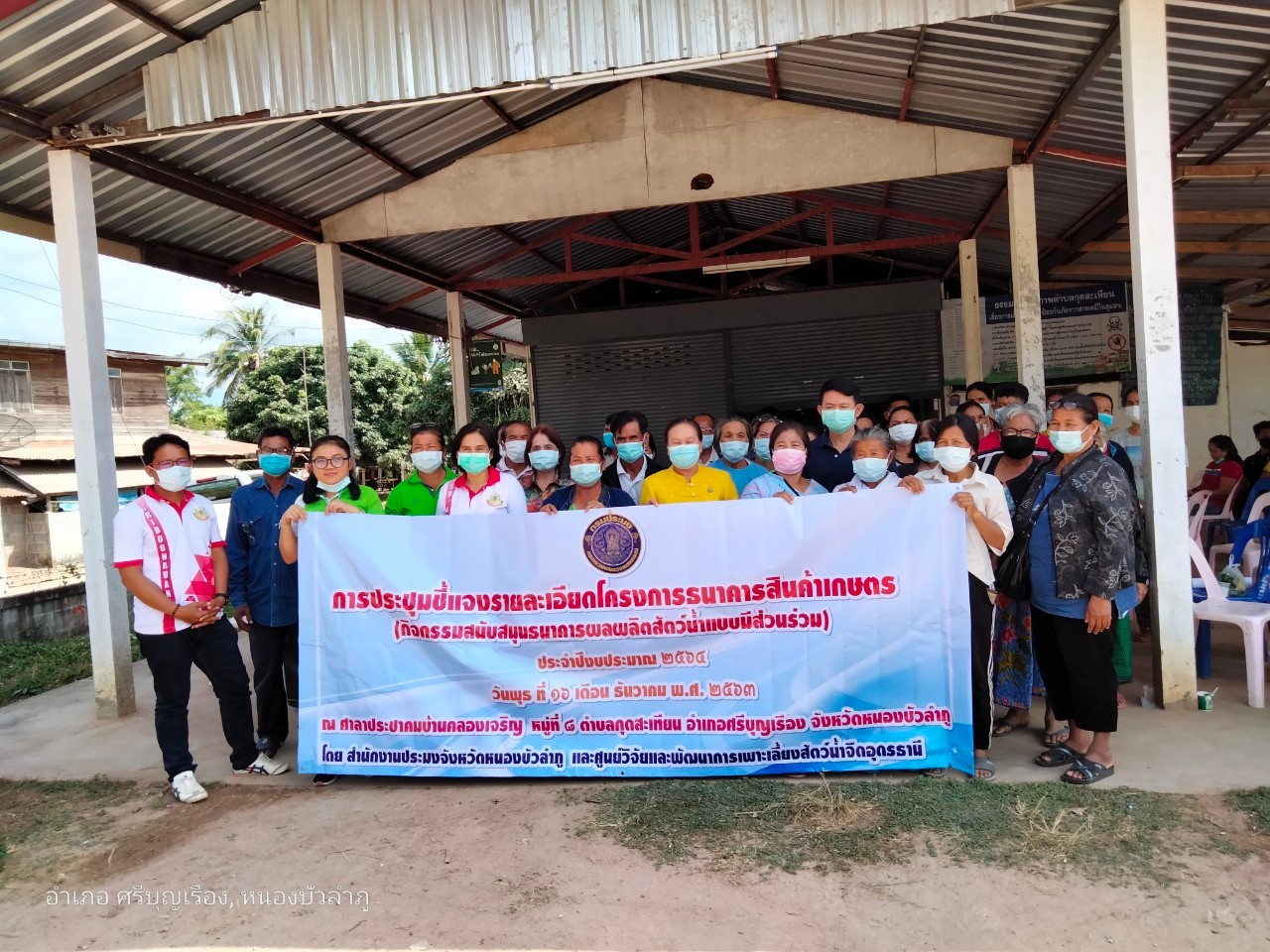 วันที่ 16 ธันวาคม 2563 นายบุญหลาย กุลนารัตน์ ประมงจังหวัดหนองบัวลำภู มอบหมายให้นายสมจิตร์ พงษ์ภุมมา หัวหน้ากลุ่มบริหารจัดการด้านการประมง ร่วมกับ นางสาวมลฤดี ลิ้มสุวรรณ ประมงอำเภอศรีบุญเรือง ,นายบรรพต พิชคำ นักวิชาการประมงชำนาญการ (ศูนย์วิจัยและพัฒนาการเพาะเลี้ยงสัตว์น้ำจืด อุดรธานี) เกษตรอำเภอศรีบุญเรือง, พัฒนาการอำเภอศรีบุญเรือง, ปศุสัตว์อำเภอศรีบุญเรือง,นายยกองค์การบริหารส่วนตำบลกุดสะเทียน,ผู้อำนวยการโรงเรียนบ้านคลองเจริญ พร้อมด้วยคณะกรรมหมู่บ้าน และประชาชนในพื้นที่เป้าหมาย จัดประชุมชี้แจงรายละเอียดโครงการธนาคารสินค้าเกษตร (กิจกรรมสนับสนุนธนาคารผลผลิตสัตว์น้ำแบบมีส่วนร่วม) ปีงบประมาณ 2564 แหล่งน้ำหนองกุง หมู่ที่ 8 ตำบลกุดสะเทียน อ.ศรีบุญเรือง โดยมี นายสุภโชค พนาลิกุล นายอำเภอศรีบุญเรือง เป็นประธานเปิดการประชุม มีผู้เข้าร่วมการประชุมชี้แจงทั้งสิ้น 97 ราย ทั้งนี้ในที่ประชุมได้ดำเนินการแต่งตั้งคณะกรรมการธนาคารผลผลิตสัตว์น้ำแบบมีส่วนร่วมและกำหนดบทบาทหน้าที่ของคณะกรรมการ พร้อมกำหนดกฎระเบียบ การบริหารงานธนาคารฯ ประจำแหล่งน้ำชุมชน และการจัดทำแผนการใช้จ่ายเงินงบอุดหนุนในการดำเนินกิจกรรมการเพิ่มผลผลิตสัตว์น้ำ การเพาะเลี้ยงสัตว์น้ำชุมชน และการขับเคลื่อนการบริหารงานของธนาคารประจำแหล่งน้ำ