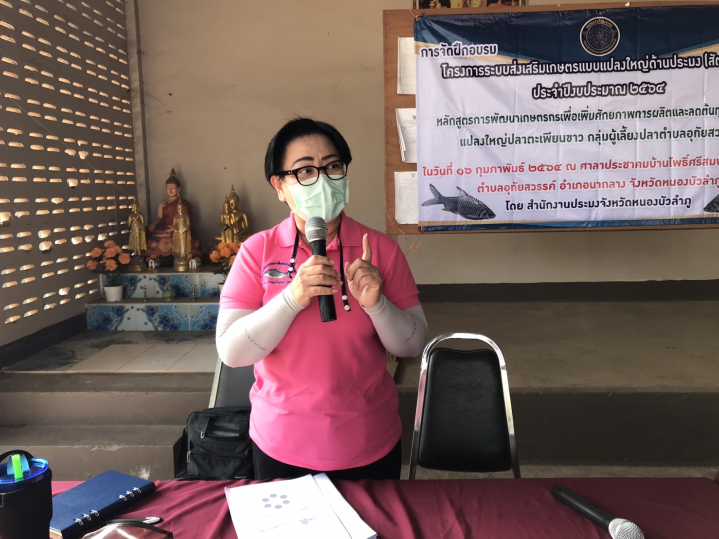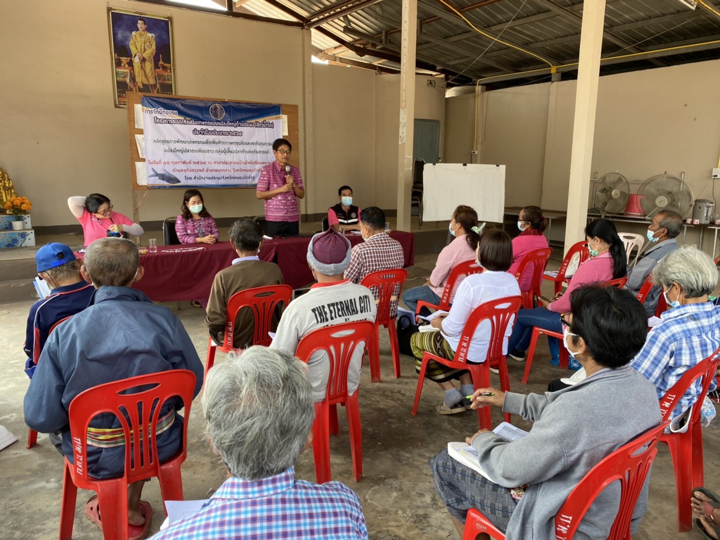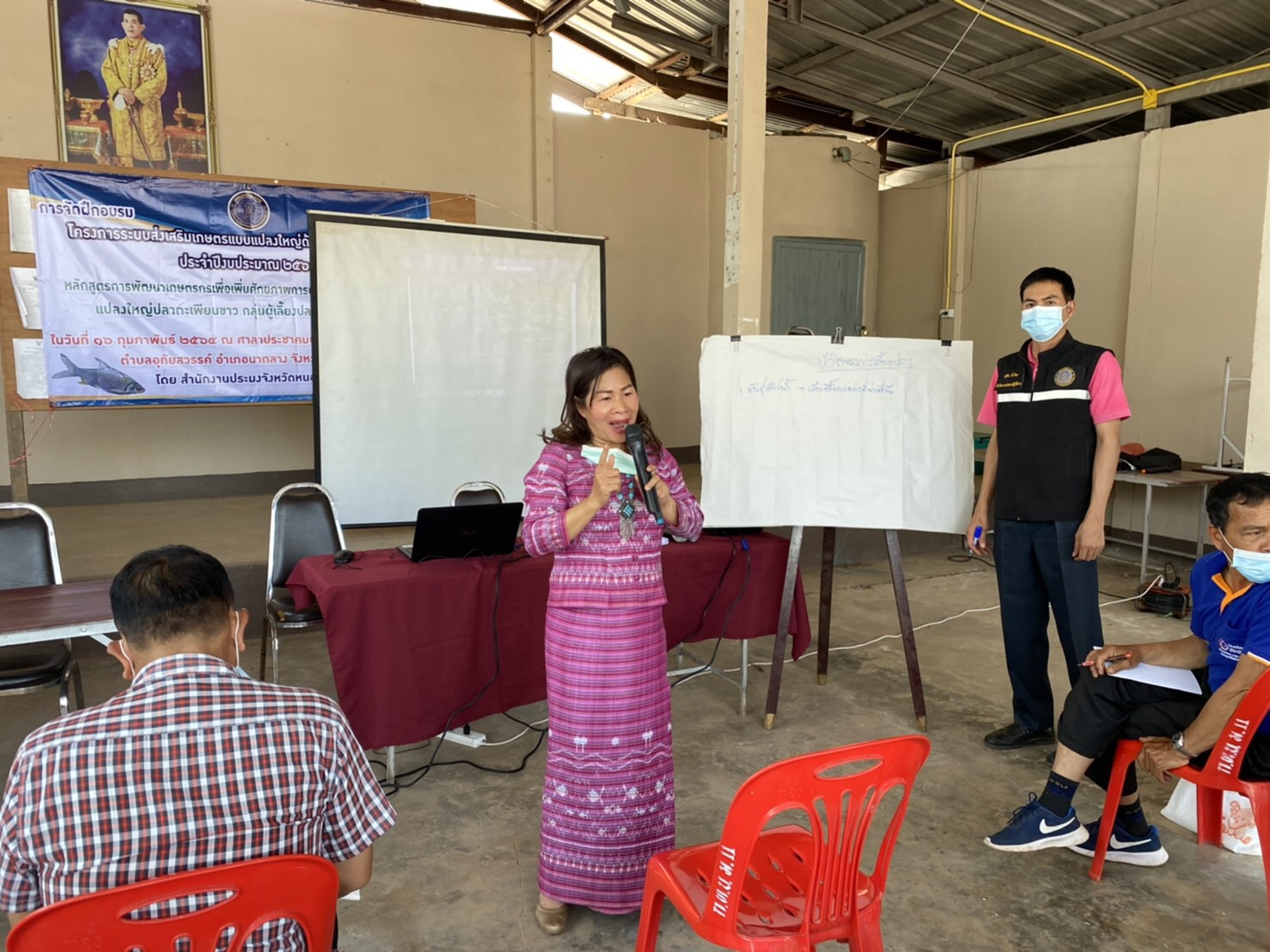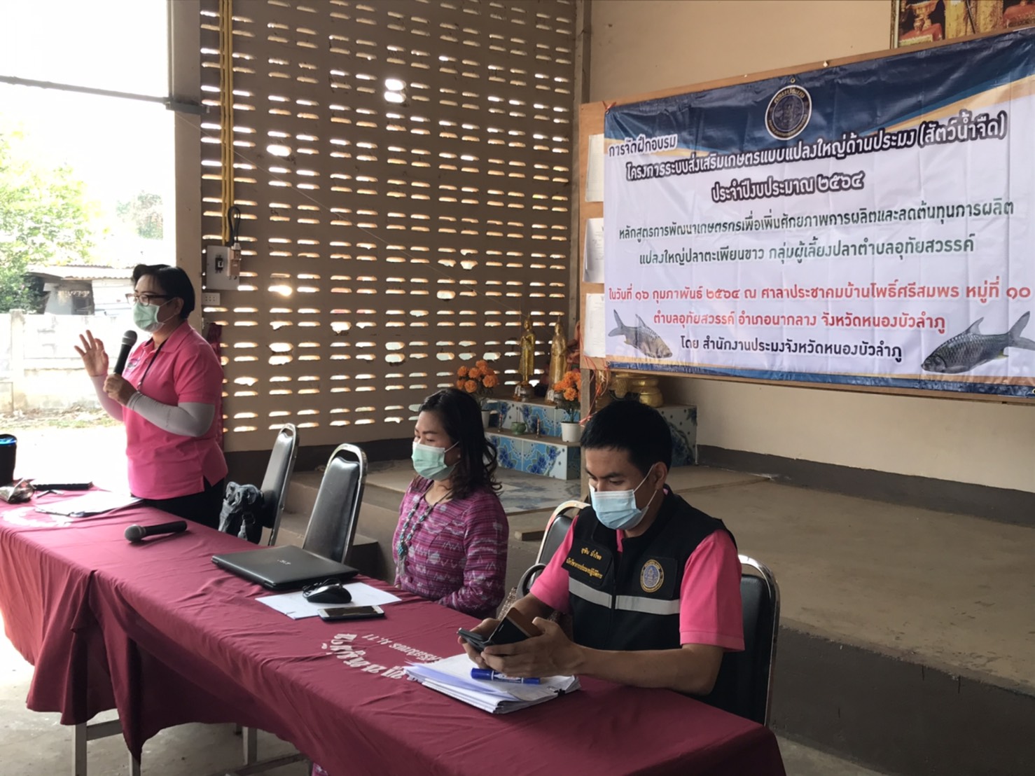 วันที่ 16 กุมภาพันธ์ 2564 นางสาวทัศนีย์ สุนนท์ชัย หัวหน้ากลุ่มพัฒนาและส่งเสริมอาชีพการประมง ร่วมกับนายชัยพร มังคะละแสน ประมงอำเภอนากลาง และเจ้าหน้าที่สำนักงานประมงจังหวัดหนองบัวลำภู จัดฝึกอบรมโครงการระบบส่งเสริมเกษตรแบบแปลงใหญ่ด้านประมง (สัตว์น้ำจืด) ประจำปี 2564 หลักสูตรการพัฒนาเกษตรกรเพื่อเพิ่มศักยภาพการผลิตสัตว์น้ำและลดต้น ให้กับเกษตรกรแปลงใหญ่ปลาตะเพียนขาว กลุ่มผู้เลี้ยงปลาตำบลอุทัยสวรรค์ ณ ศาลาประชาคมบ้านโพธิ์ศรีสมพร หมู่ที่ 10 ตำบลอุทัยสวรรค์ อำเภอนากลาง จังหวัดหนองบัวลำภู โดยมีนายบุญหลาย กุลนารัตน์ ประมงจังหวัดหนองบัวลำภู ให้เกียรติเป็นประธาน ซึ่งมีสมาชิกกลุ่มฯ เข้ารับการฝึกอบรม จำนวน 50 รายแ