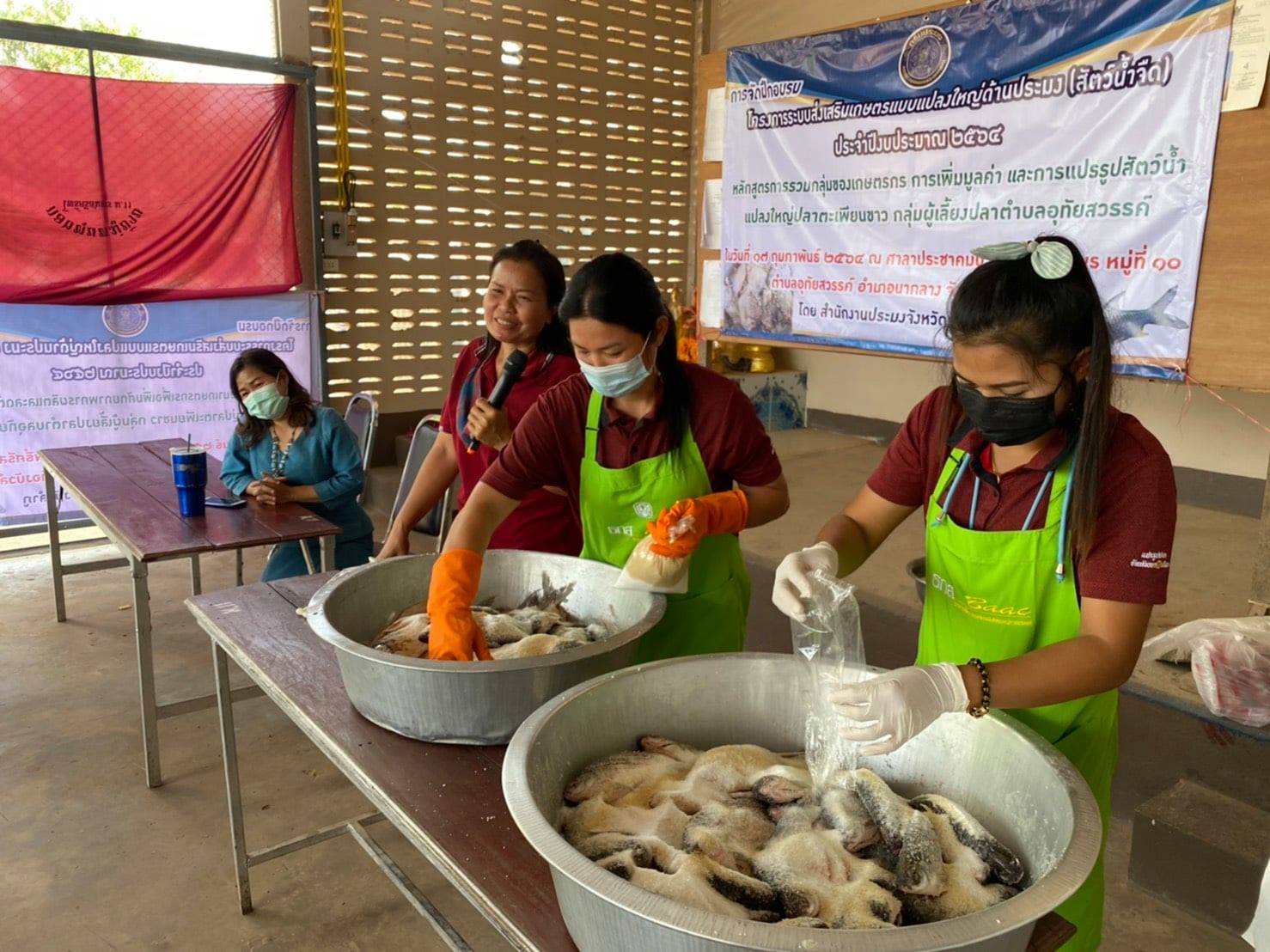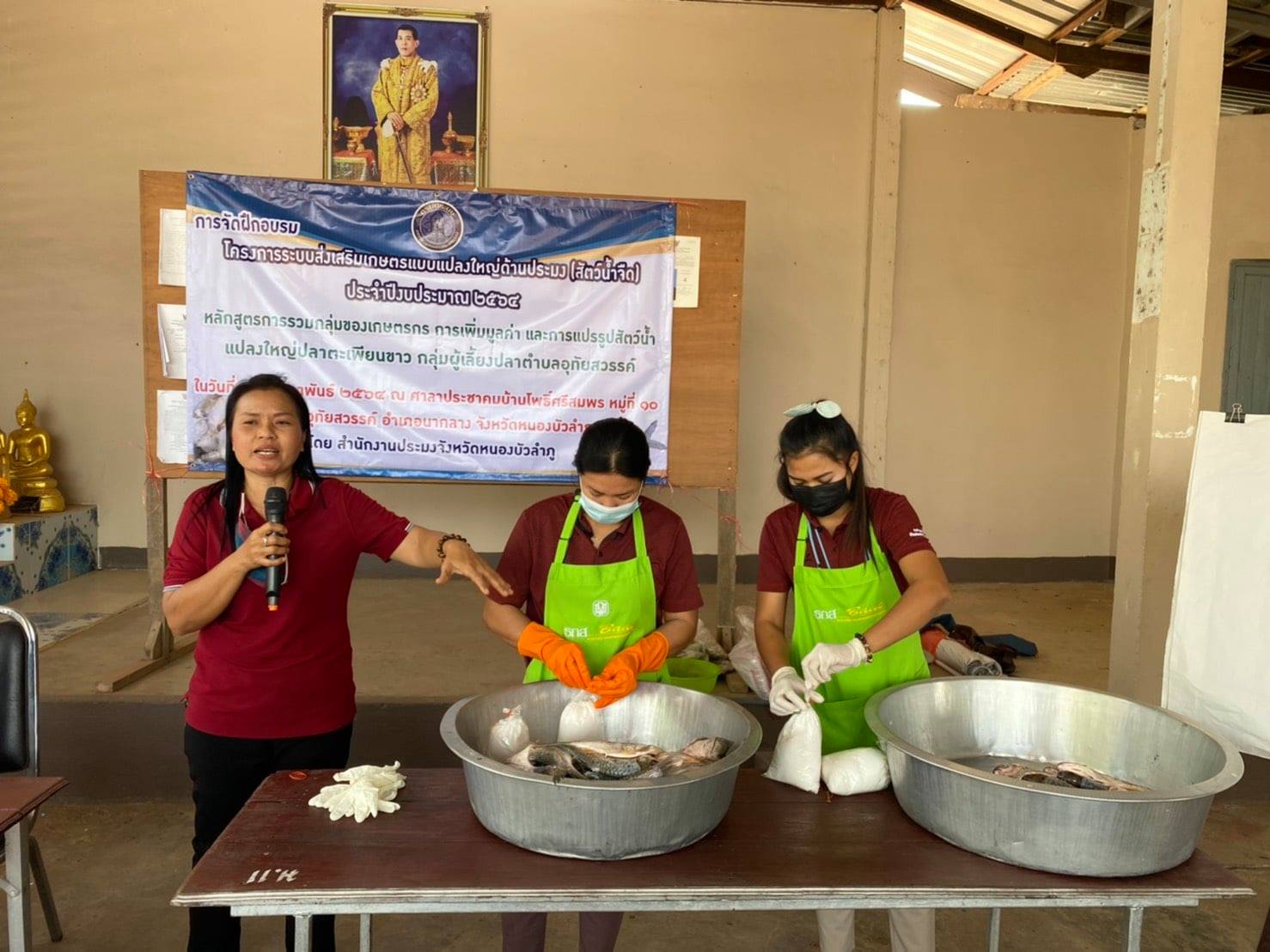 วันที่ 17 กุมภาพันธ์ 2564 นางสาวทัศนีย์ สุนนท์ชัย หัวหน้ากลุ่มพัฒนาและส่งเสริมอาชีพการประมง ร่วมกับนายชัยพร มังคะละแสน ประมงอำเภอนากลาง และเจ้าหน้าที่สำนักงานประมงจังหวัด จัดฝึกอบรมโครงการระบบส่งเสริมเกษตรแบบแปลงใหญ่ด้านประมง (สัตว์น้ำจืด) ประจำปี 2564 หลักสูตรการวมกลุ่มของเกษตรกรและการเพิ่มมูลค่าและการแปรรูปสัตว์น้ำให้กับเกษตรกรแปลงใหญ่ปลาตะเพียนขาว กลุ่มผู้เลี้ยงปลาตำบลอุทัยสวรรค์ ณ ศาลาประชาคมบ้านโพธิ์ศรีสมพร หมู่ที่ 11 ตำบลอุทัยสวรรค์ อำเภอนากลาง จังหวัดหนองบัวลำภู โดยมีเจ้าหน้าจากสหกรณ์จังหวัดหนองบัวลำภูและกลุ่มแปรรูปปลาบ้านห้วยบงตราหนึ่งเดียวให้เกียรติเป็นวิทยากรถ่ายทอดความรู้ ซึ่งมีสมาชิกกลุ่มฯ เข้ารับการฝึกอบรม จำนวน 50 ราย