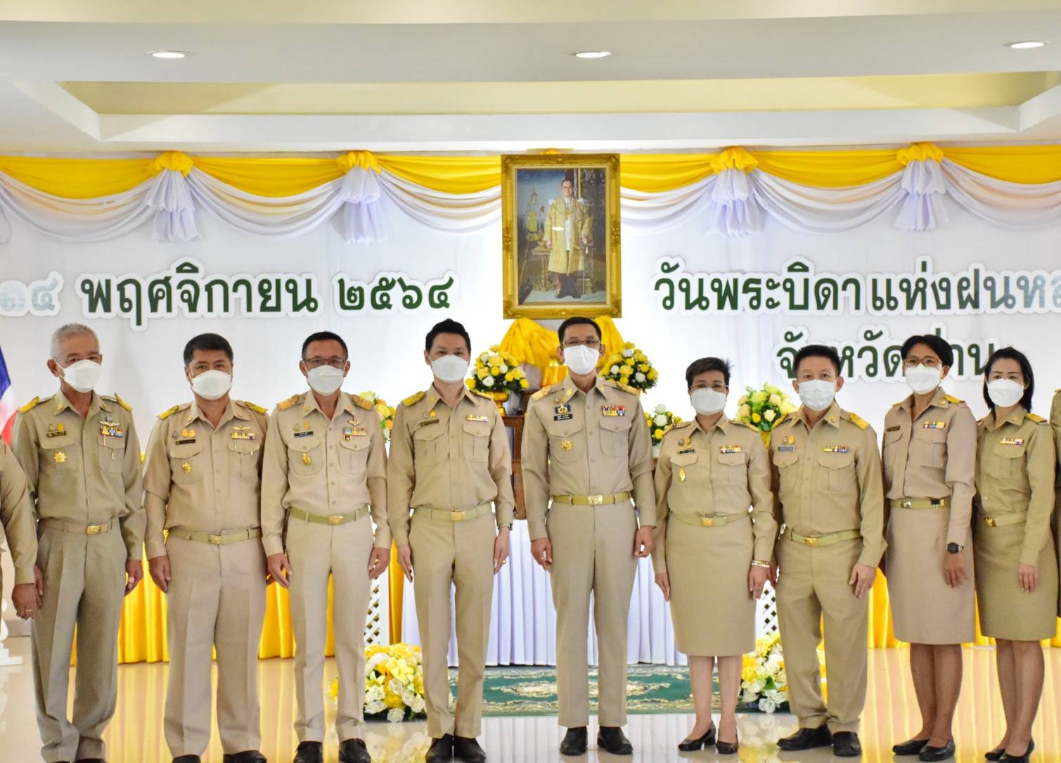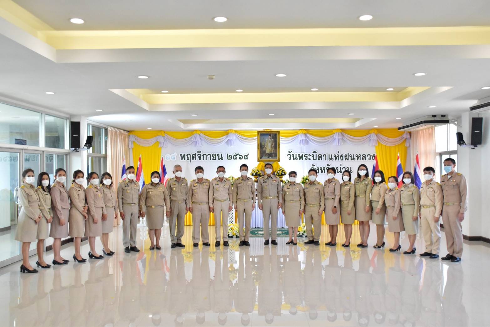 วันอาทิตย์ที่ 14 พฤศจิกายน 2564 เวลา 10.00 น. นางชยาพร เตียเจริญวงศ์ ประมงจังหวัดน่านมอบหมายให้ นางกรรณิกา กังคำ นักวิชาการประมงปฏิบัติการ เป็นตัวแทนร่วมกิจกรรมน้อมรำลึกพระมหากรุณาธิคุณ เนื่องในวันพระบิดาแห่งฝนหลวง ประจำปี 2564 ณ ห้องประชุมเจ้ามหาวงศ์ ชั้น 6 ศาลากลางจังหวัดน่าน โดยมีนายวิบูรณ์ แววบัณฑิต  รองผู้ว่าราชการจังหวัดน่าน รักษาการแทนผู้ว่าราชการจังหวัดน่าน เป็นประธานในพิธี