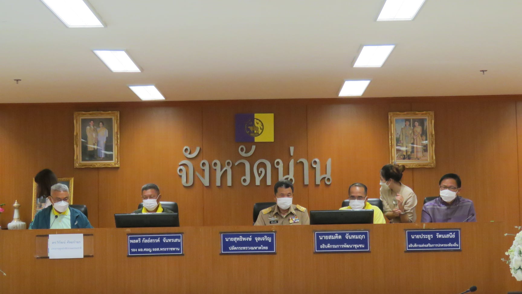 วันพฤหัสบดีที่ 25 พฤศจิกายน 2564 เวลา 10.30 น. นางชยาพร เตียเจริญวงศ์ ประมงจังหวัดน่าน เข้าร่วมประชุม "การติดตามความก้าวหน้า การขับเคลื่อนและขยายผลการพัฒนาพื้นที่และคุณภาพชีวิตตามหลักทฤษฏีใหม่ สู่ "โคก หนอง นา โมเดล" ในพื้นที่จังหวัดน่าน ครั้งที่ 1 /2564 ณ ห้องประชุมพระเจ้าสุริยพงษ์ผริตเดช ชั้น 3 ศาลากลางจังหวัดน่าน โดยมี พลตรีกัลย์สรรค์ จันทรเสน รองผู้อำนวยการศูนย์อำนวยการใหญ่จิตอาสาพระราชทาน นำคณะประกอบด้วย นายสุทธิพงษ์ จุลเจริญ ปลัดกระทรวงมหาดไทย นายสมคิด จันทมฤก อธิบดีกรมพัฒนาชุมชน นายประยรู รัตนเสนีย์ อธิบดีกรมท้องถิ่น และดร.วิวัฒน์ ศัลยกำธร ประธานมูลนิธิกสิกรรมธรรมชาติ เป็นประธานในการประชุม