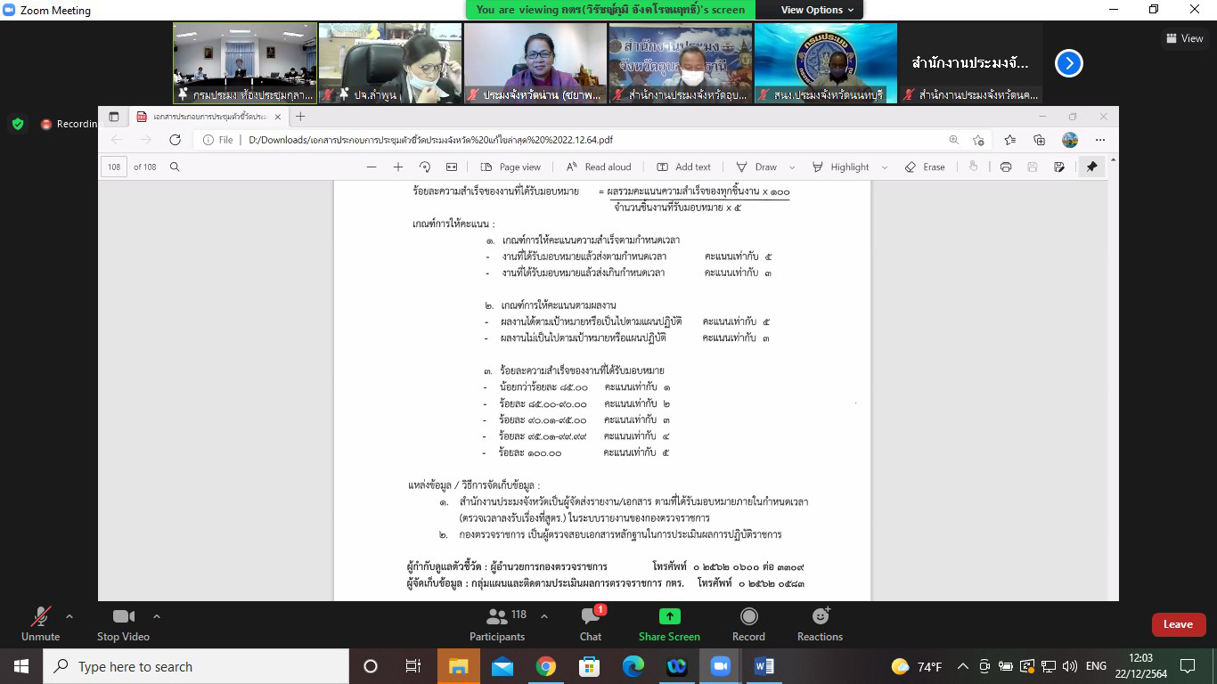 วันพุธที่ 22 ธันวาคม 2564 เวลา 09.30 น. นางชยาพร เตียเจริญวงศ์ ประมงจังหวัดน่าน  นายสมชาติ ธรรมขันทา  หัวหน้ากลุ่มพัฒนาและส่งเสริมอาชีพการประมง นางปุณณนัทธ์ โนชัย หัวหน้ากลุ่มบริหารและยุทธศาสตร์  เข้าร่วมประชุมเพื่อรับฟังคำชึ้แจงรายละเอียดตัวชี้วัดประมงจังหวัด รอบการประเมินที่ 1/2565 ประจำปีงบประมาณ 2565 ผ่าน Video Conference โดยมี นายธนาวุฒิ กุลจิตติชนก ผู้ตรวจราชการกรมประมง เป็นประธานในการประชุม ณ ห้องประชุมสำนักงานประมงจังหวัดน่าน ศาลากลางจังหวัดน่าน