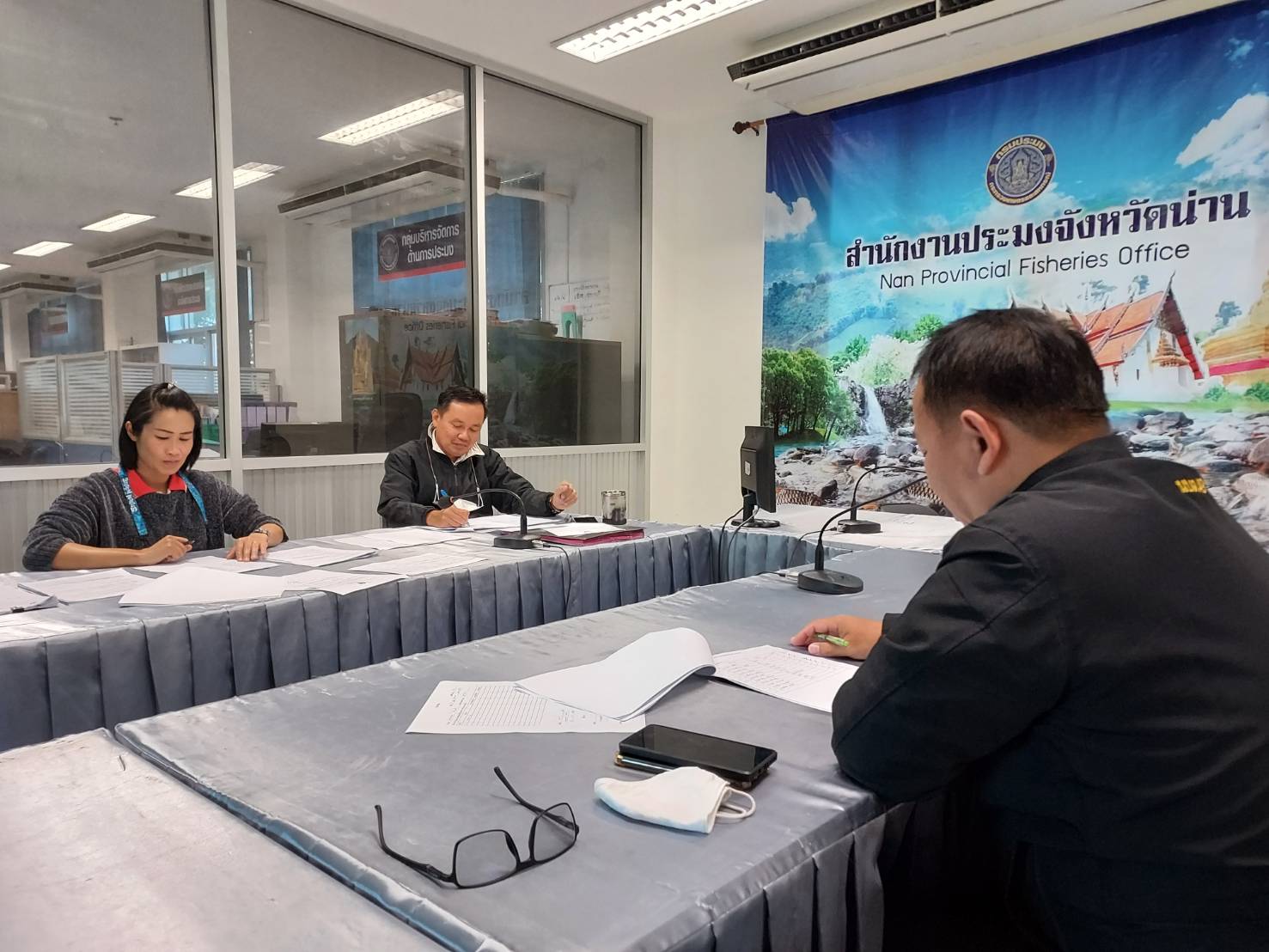 ประมงจังหวัดน่าน มอบหมายให้ หัวหน้ากลุ่มพัฒนาและส่งเสริมอาชีพการประมง ประชุมการพิจารณาคัดเลือกศูนย์เรียนรู้การเพิ่มประสิทธิภาพการผลิตสินค้าเกษตร (ศพก เครือข่าย) ด้านประมง เพื่อเป็นศูนย์ ศพก ต้นแบบของจังหวัดน่าน
