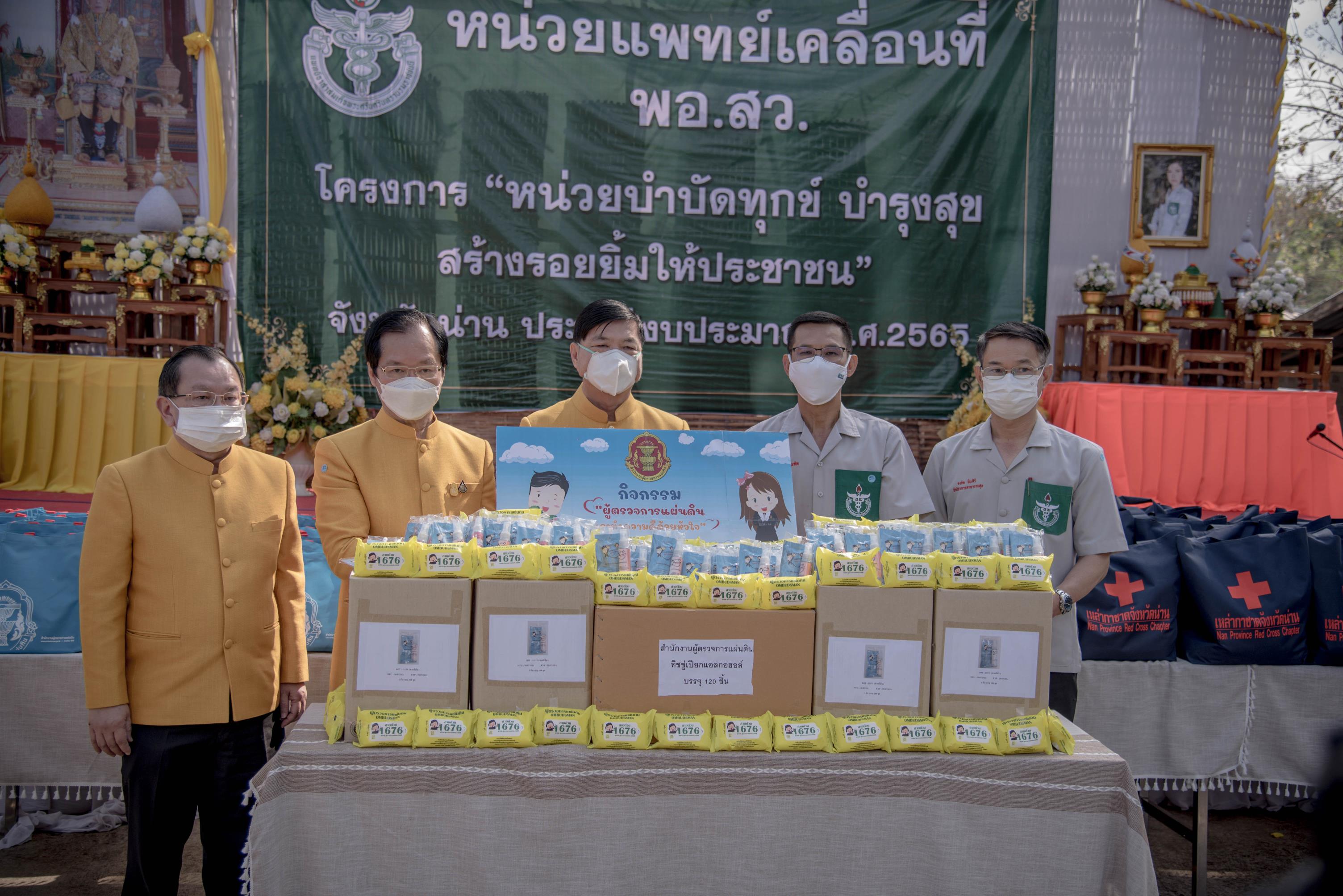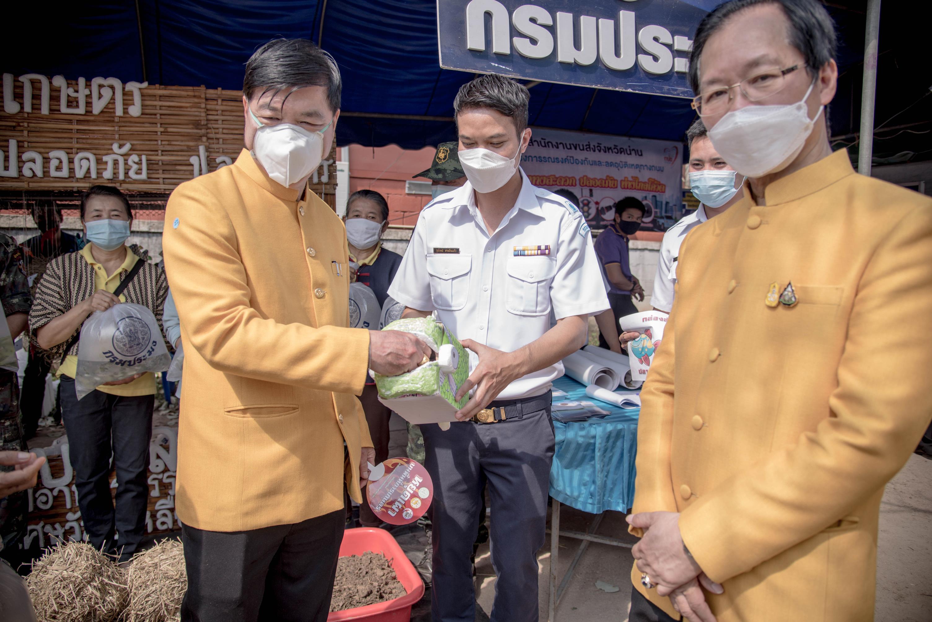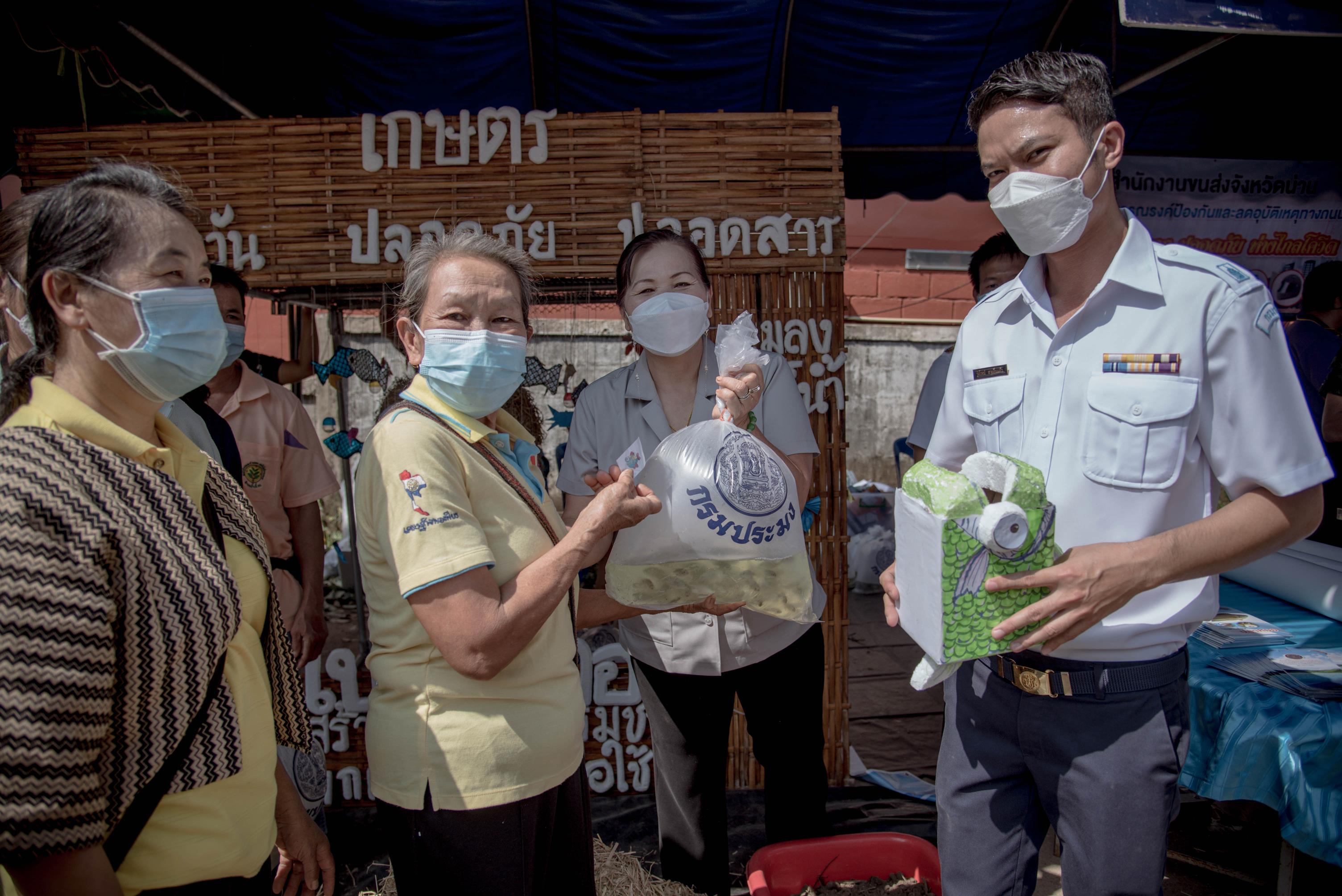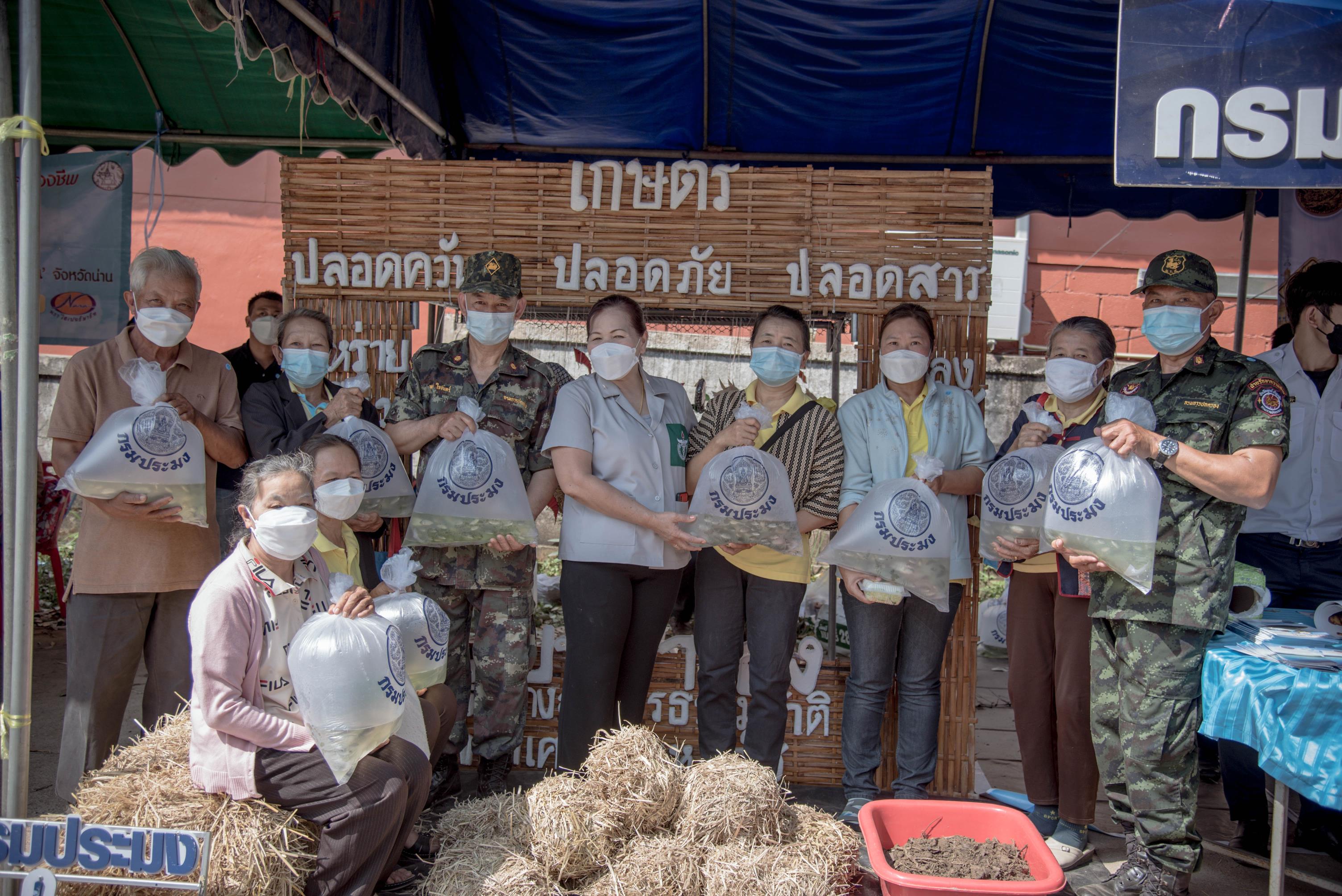 วันพฤหัสบดีที่ 3 กุมภาพันธ์ 2565 เวลา 09.00 น. นางชยาพร เตียเจริญวงศ์ ประมงจังหวัดน่าน นายคฑาวุธ ปานบุญ ผู้อำนวยการศูนย์วิจัยและพัฒนาประมงน้ำจืดน่าน และเจ้าหน้าที่กรมประมง ร่วมงานและออกบูธนิทรรศการในกิจกรรมหน่วยแพทย์เคลื่อนที่ พอ.สว. , กิจกรรมเพื่อสังคม “ผู้ตรวจการแผ่นดิน เราทำดีด้วยหัวใจ” และกิจกรรม“หน่วยบำบัดทุกข์ บำรุงสุข สร้างรอยยิ้มให้ประชาชน”ครั้งที่ 4 ณ วิสาหกิจชุมชนชีววิถี ตำบลน้ำเกี๋ยน อำเภอภูเพียง จังหวัดน่าน ซึ่งได้รับการสนับสนุนพันธุ์สัตว์น้ำ เพื่อเพิ่มผลผลิตให้แก่เกษตรกรจำนวน 50 ถุง จากศูนย์วิจัยและพัฒนาประมงน้ำจืดน่าน  โดยมี นายสมศักดิ์ สุวรรณสุจริต ประธานผู้ตรวจการแผ่นดิน เป็นประธานกิตติมศักดิ์ มูลนิธิ พอ.สว. เป็นประธานในกิจกรรม