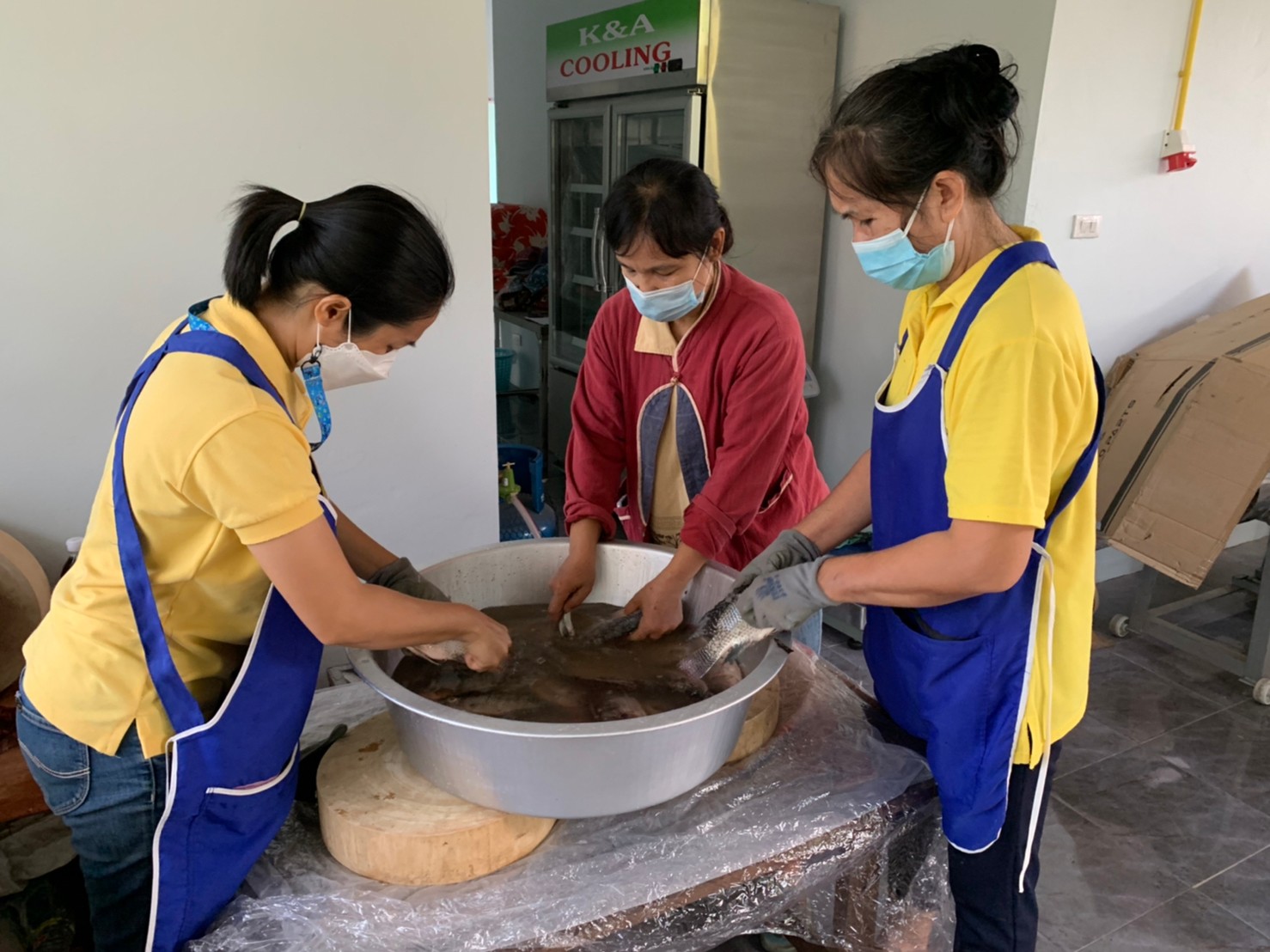วันจันทร์ที่ 14 มีนาคม พ.ศ. 2565 เวลา 08.30 น. นางชยาพร  เตียเจริญวงศ์ ประมงจังหวัดน่าน มอบหมายให้ นางกรรณิกา กังคำ นักวิชาการประมงปฏิบัติการ และนายเกียรติศักดิ์ พรมผาย เจ้าหน้าที่วิเคราะห์นโยบายและแผน จัดสถานที่ เพื่อเตรียมความพร้อมในการสาธิตการแปรรูปวัตถุดิบ จากกองพัฒนาอุตสาหกรรมสัตว์น้ำ กรมประมง ให้แก่ โครงการแปลงใหญ่ปลานิลเวียงสา ณ ตำบลแม่สา  อำเภอเวียงสา จังหวัดน่าน