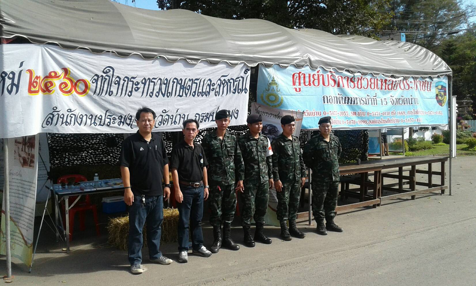 สำนักงานประมงจังหวัดน่าน ร่วมจัดตั้งศูนย์บริการประชาชน ณ บริเวณหน้ากองพันทหารม้าที่่ 15 จังหวัดน่าน ระหว่างวันที่ 30 ธันวาคม 2559 ถึง 3 มกราคม 2560