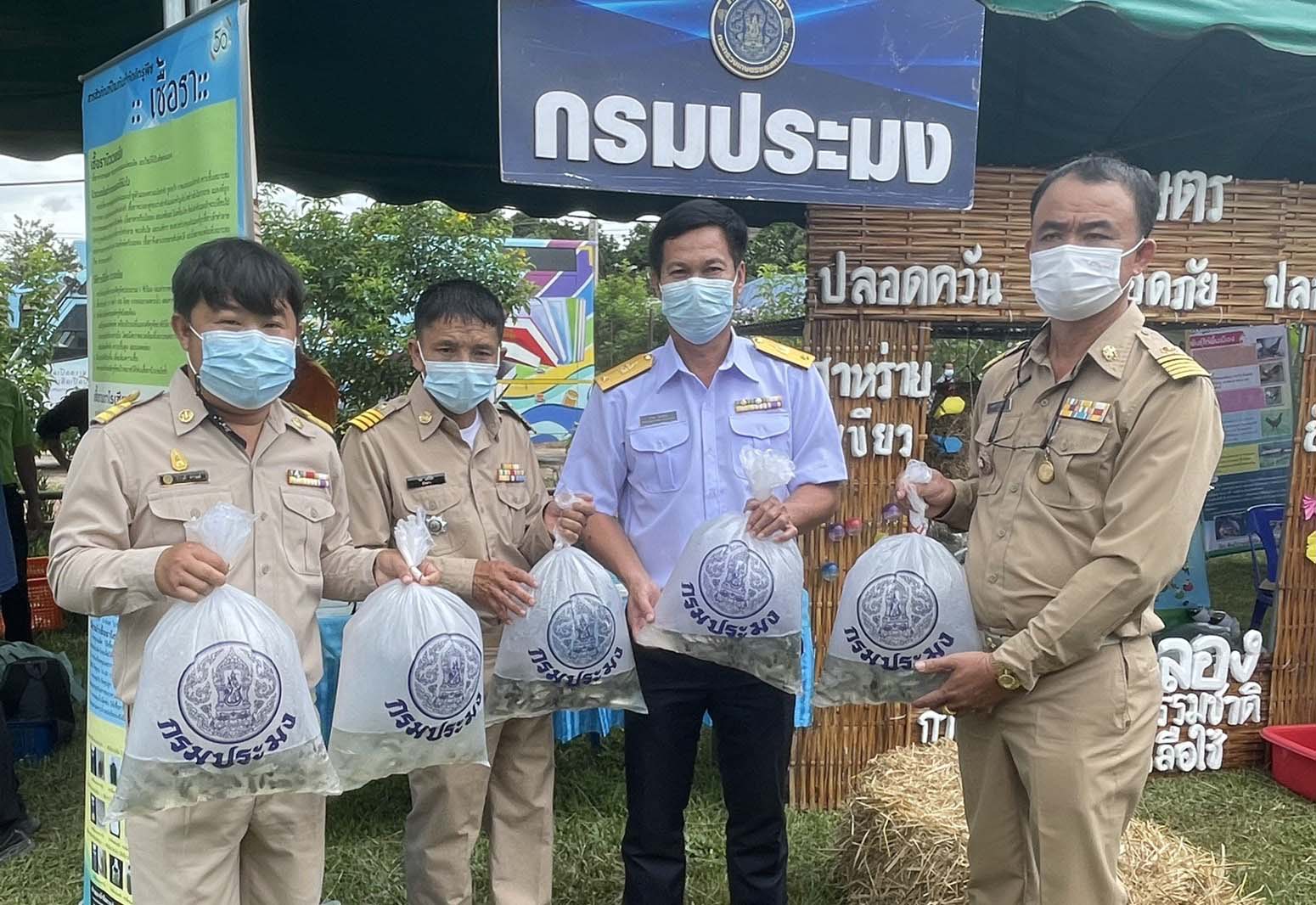 วันพฤหัสบดีที่ 12 พฤษภาคม 2565 เวลา 09.30 น. หน่วยงานกรมประมงในพื้นที่จังหวัดน่าน ร่วมงานและออกบูธนิทรรศการในกิจกรรม “หน่วยบำบัดทุกข์ บำรุงสุข สร้างรอยยิ้มให้ประชาชน” จังหวัดน่าน ประจำปีงบประมาณ พ.ศ. 2565 เพื่อให้บริการประชาชน เกี่ยวกับการอนุมัติ อนุญาต ให้คำปรึกษาในลักษณะหน่วยบริการเคลื่อนที่ ตามภารกิจของหน่วยงาน พร้อมทั้งรับฟังปัญหาความต้องการของประชาชน ณ โรงเรียนบ้านน้ำตวง ตำบลน้ำพาง อำเภอแม่จริม จังหวัดน่าน ซึ่งได้รับการสนับสนุนพันธุ์สัตว์น้ำ เพื่อเพิ่มผลผลิตให้แก่เกษตรกร จำนวน 50 ถุง จากศูนย์วิจัยและพัฒนาประมงน้ำจืดน่าน โดยมี นายวิบูรณ์ แววบัณฑิต  ผู้ว่าราชการจังหวัดน่าน เป็นประธานในกิจกรรม