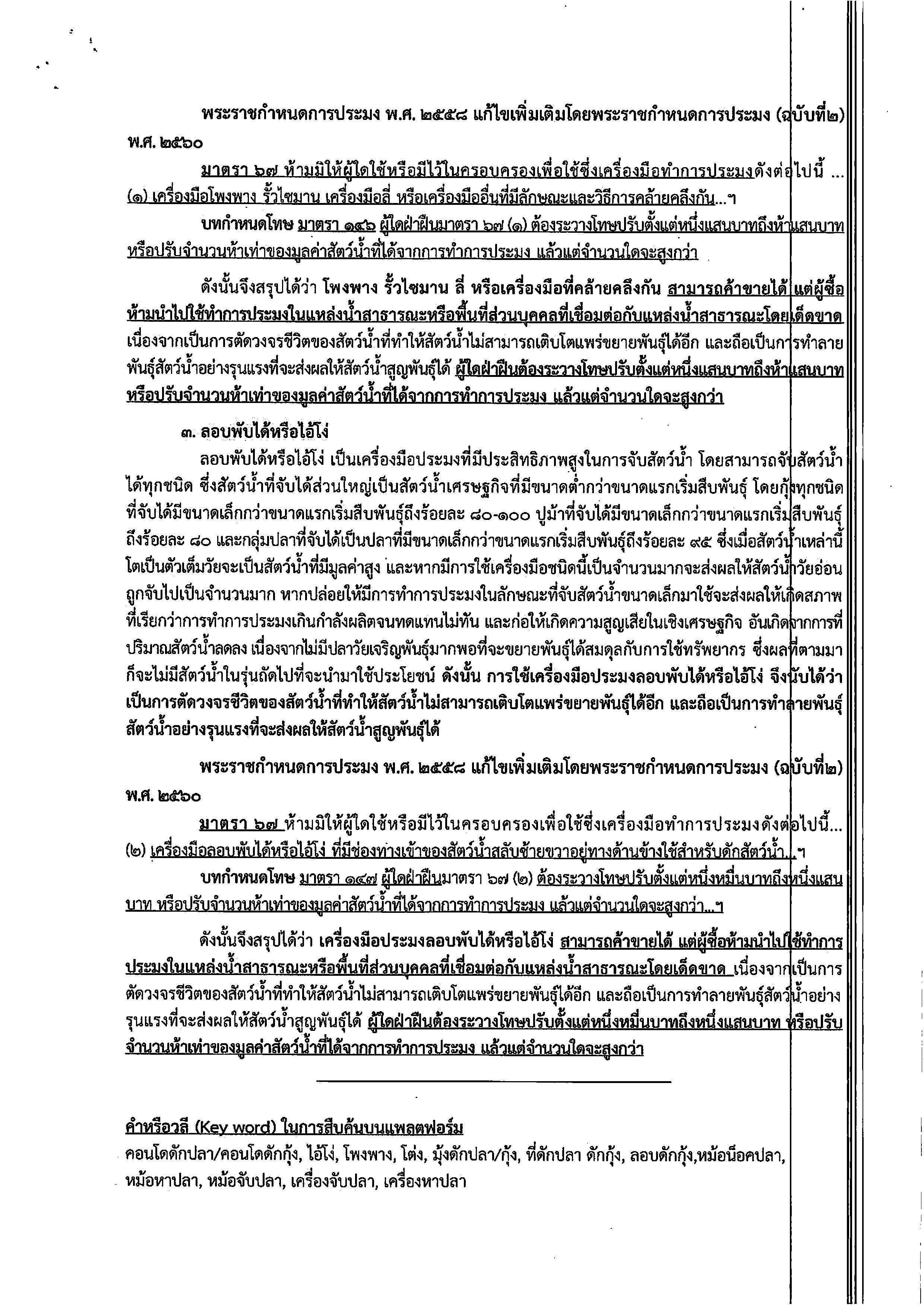 ข้อมูลกำหนดมาตราการอนุรักษ์ทรัพยากรสัตว์น้ำ และป้องกันมิให้มีการซื้อสินค้ามาใช้ทำการประมงผิดกฎหมาย..คลิก