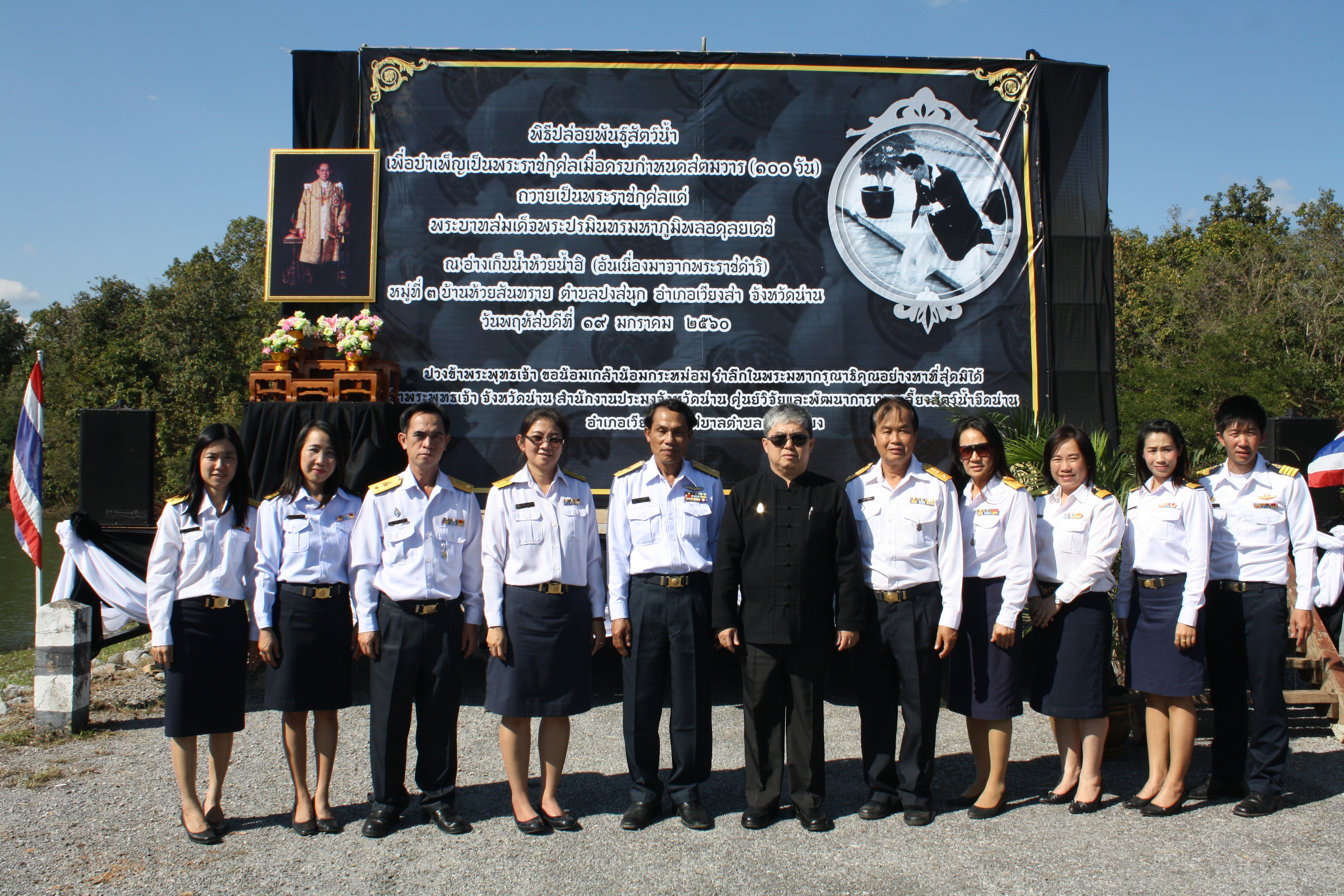 สำนักงานประมงจังหวัดน่าน ร่วมกับศูนย์วิจัยและพัฒนาการประมงน้ำจืดน่าน อำเภอเวียงสา และเทศบาลตำบลกลางเวียง จัดพิธีปล่อยพันธุ์สัตว์น้ำเพื่อบำเพ็ญเป็นพระราชกุศลเมื่อครบกำหนดสตมวาร (100 วัน) ถวายแด่พระบาทสมเด็นพระปรมินทรามหาภูมิพลอดุลยเดช ในวันพฤหัสบดีที่ 19 มกราคม 2560 ณ อ่างเก็บน้ำห้วยน้ำฮิ (อันเนื่องมาจากพระราชดำริ) หมู่ที่ 3 บ้านห้วยสันทราย ตำบลปงสนุก อำเภอเวียงสา จังหวัดน่าน โดยมีนายวรกิตติ ศรีทิพากร รองผู้ว่าราชการจังหวัดน่าน เป็นประธานในพิธี