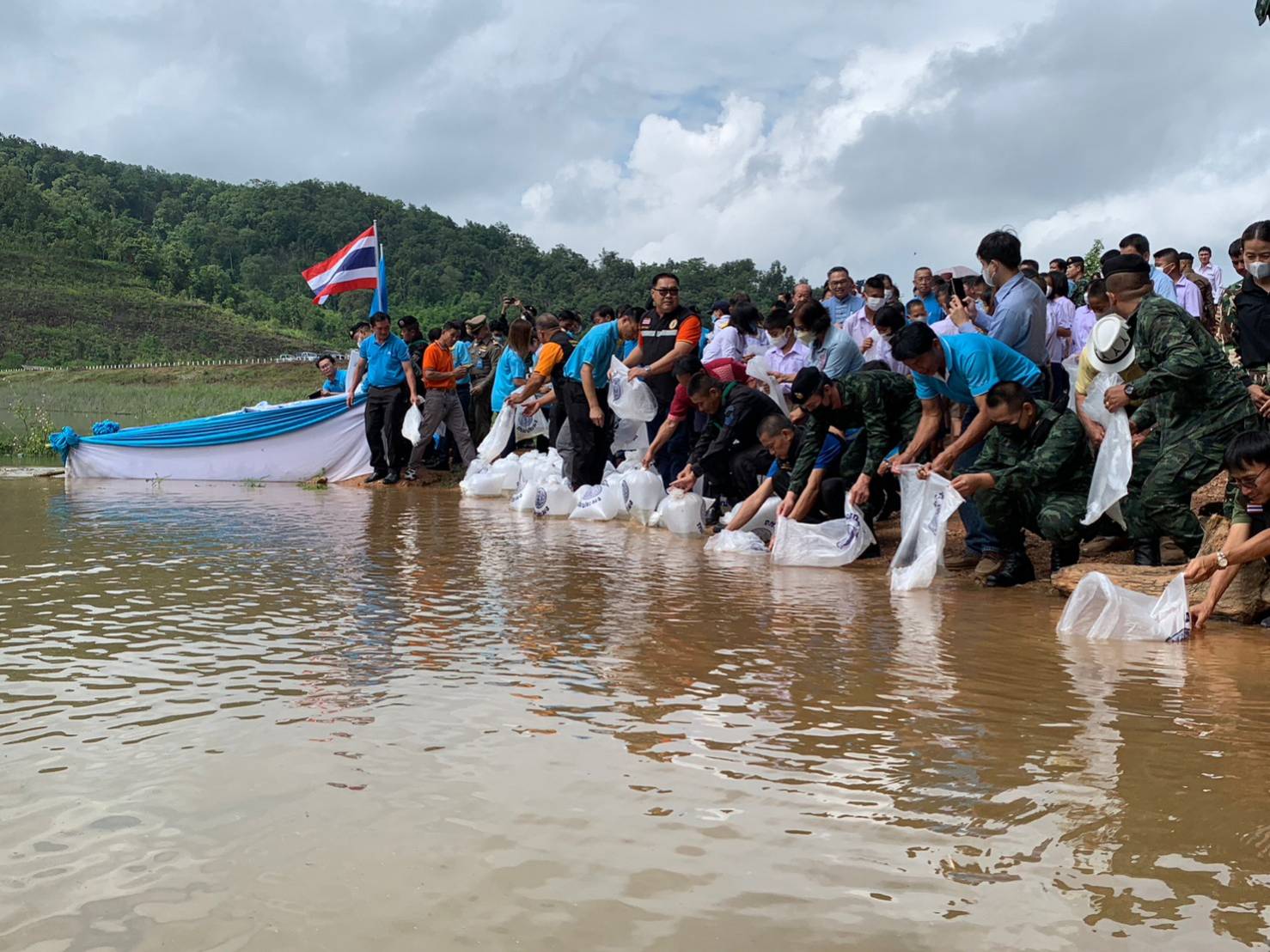 เป็นประธานในพิธี ได้รับการสนับสนุนพันธุ์ปลากินพืชจากศูนย์วิจัยและพัฒนาประมงน้ำจืดพะเยา จำนวน 200,000 ตัว
