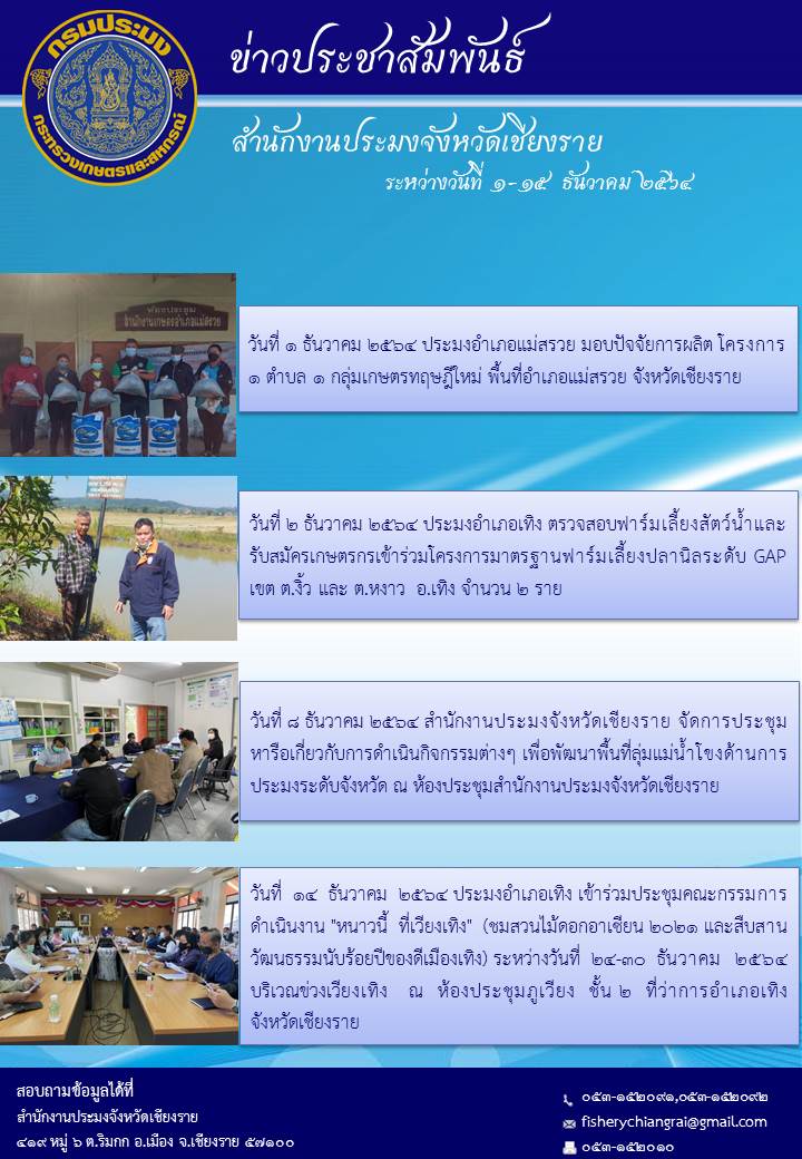 ข่าวประชาสัมพันธ์ ประจำวันที่ 1-15 ธันวาคม 2564