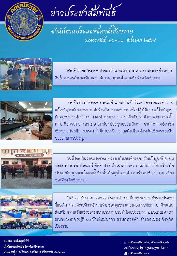 ข่าวประชาสัมพันธ์ ประจำวันที่ 16-31 ธันวาคม 2564