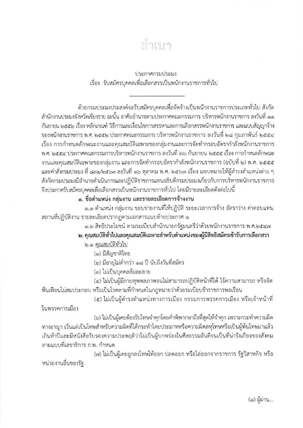 รับสมัครบุคคลเพื่อเลือกสรรเป็นพนักงานราชการทั่วไป
