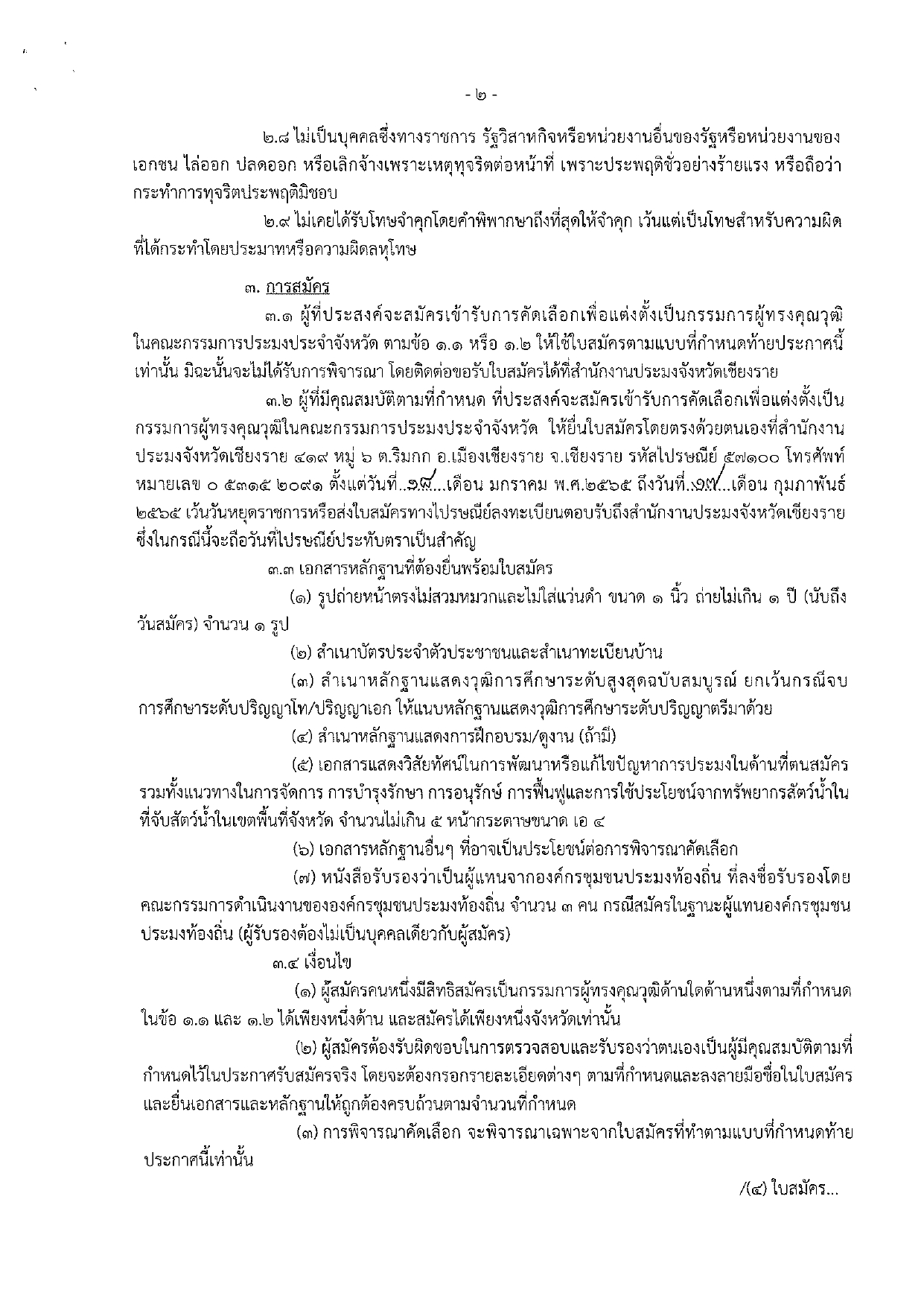 ประกาศจังหวัดเชียงราย เรื่องการรับสมัครบุคคลเข้ารับการคัดเลือกเพื่อแต่งตั้งเป็นกรรมการผู้ทรงคุณวุฒิในคณะกรรมการประมงประจำจังหวัด
