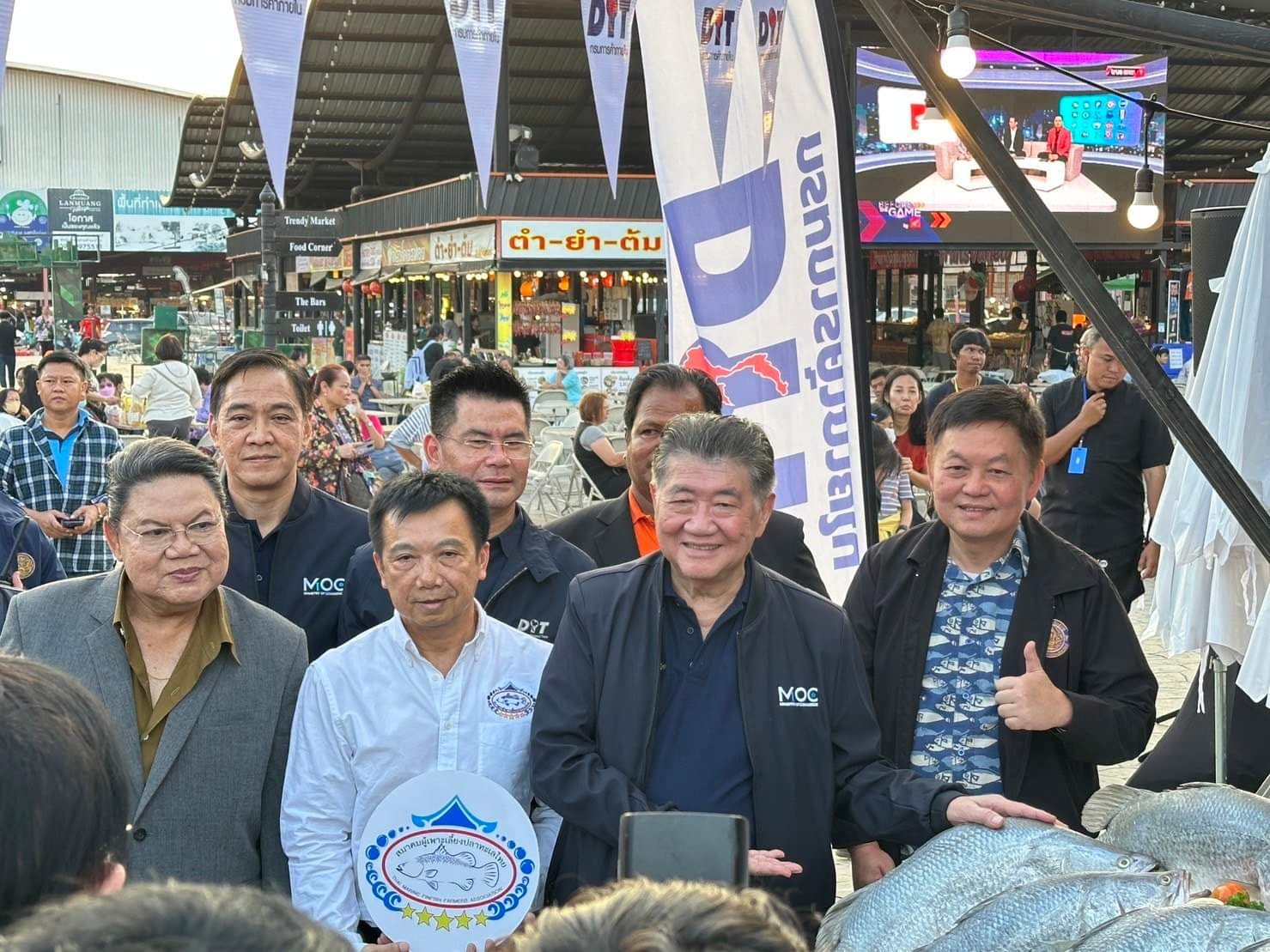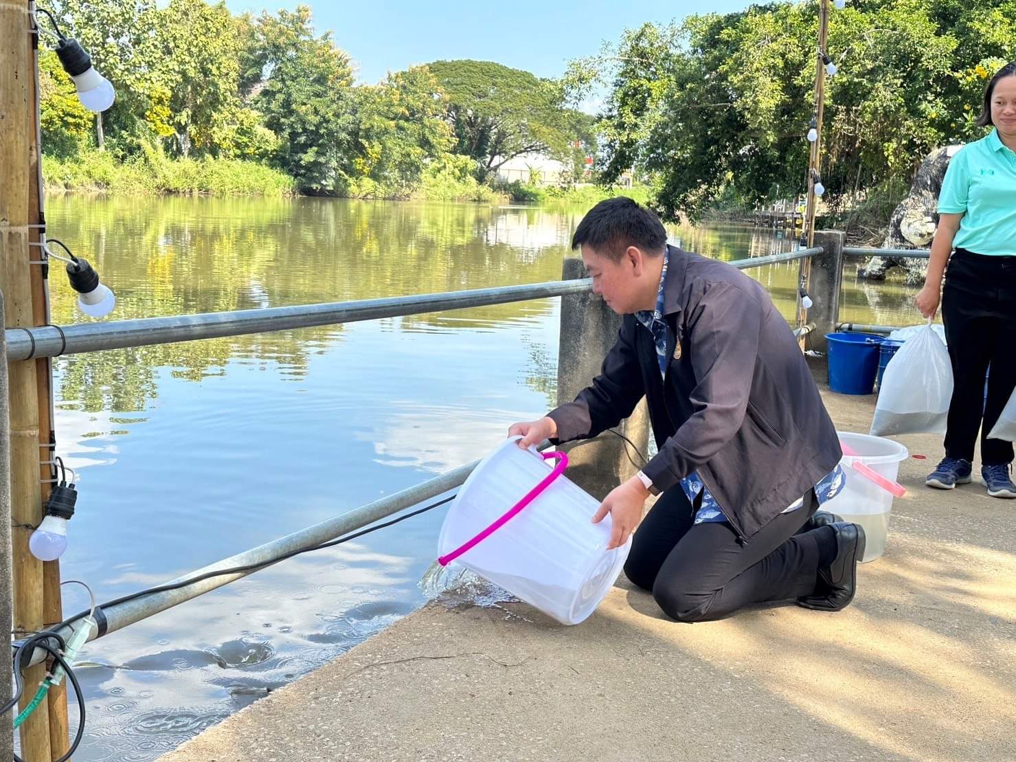 ต่อมาเวลา 12.30 น.รองอธิบดีกรมประมง ได้เดินทางไปยังวัดขัวแคร่ อำเภอเมือง จังหวัดเชียงราย เพื่อร่วมปล่อยพันธุ์สัตว์น้ำ ได้แก่ปลาเทพาและปลากาดำ เพื่อเป็นการเพิ่มทรัพยากรสัตว์น้ำในแหล่งน้ำธรรมชาติ จากนั้นเข้าร่วมงาน “พาณิชย์ปิ้งย่าง@เจียงฮาย” ณ บริเวณตลาดล้านเมือง อำเภอเมือง จังหวัดเชียงราย โดยมีนายภูมิธรรม เวชยชัย รองนายกรัฐมนตรีและรัฐมนตรีกระทรวงพาณิชย์  เป็นประธานในการจัดงาน ซึ่งงานดังกล่าวจัดขึ้นเพื่อรณรงค์ให้มีการบริโภคสินค้าและผลิตภัณฑ์ประมงและปศุสัตว์ภายในประเทศให้เพิ่มมากขึ้น เป็นการช่วยเหลือเกษตรกรที่ประสบปัญหาด้านราคาตกต่ำ โดยมีการนำสินค้าและผลิตภัณฑ์แปรรูปจากกลุ่มเกษตรกรผู้เลี้ยงกุ้ง ปลากะพง สุกร และโคเนื้อ มาจำหน่ายภายในบริเวณงาน ซึ่งได้รับความสนใจจากประชาชนเป็นอย่างมาก