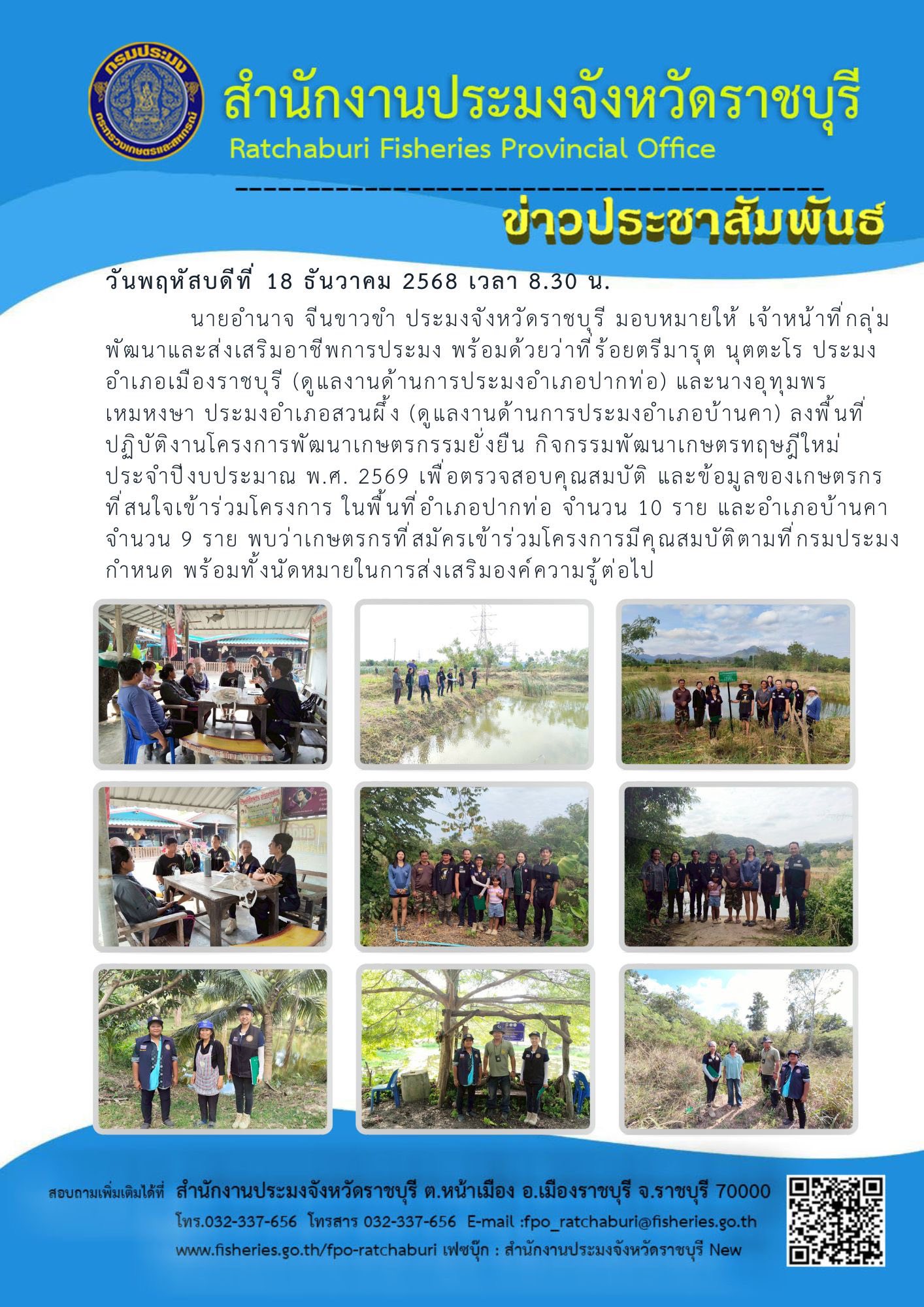 กับข้อเสนอแนะจากเจ้าของข้อมูล โดยสำนักงานประมงจังหวัดราชบุรีจะประกาศแจ้งให้ทราบอย่างชัดเจนก่อนเริ่มดำเนินการ