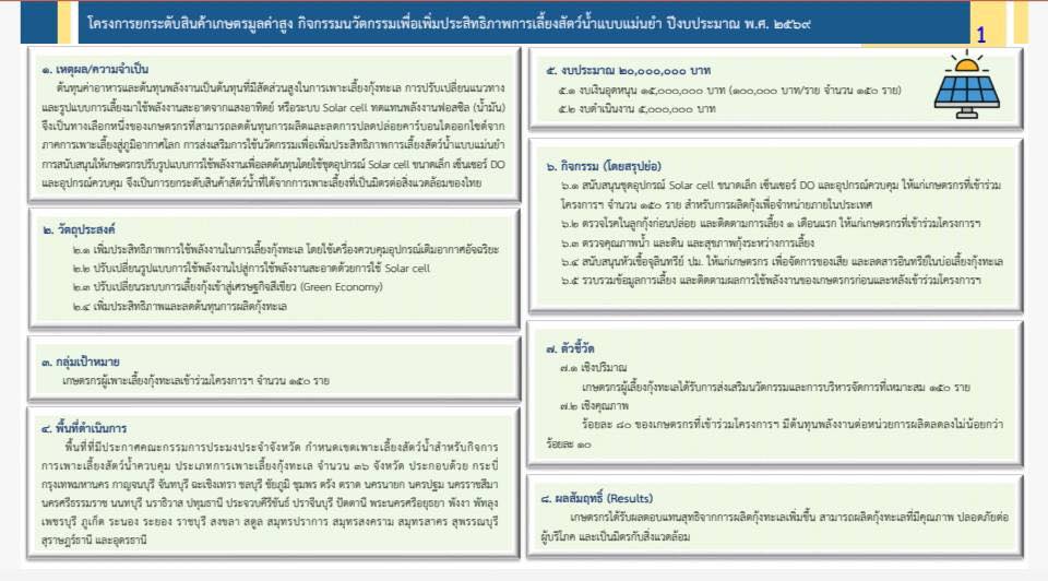 เข้าร่วมประชุมเตรียมความพร้อมการดำเนินโครงการยกระดับสินค้าเกษตรมูลค่าสูง กิจกรรมนวัตกรรมเพื่อเพิ่มประสิทธิภาพการเลี้ยงสัตว์น้ำแบบแม่นยำ พ.ศ. 2569..คลิก
