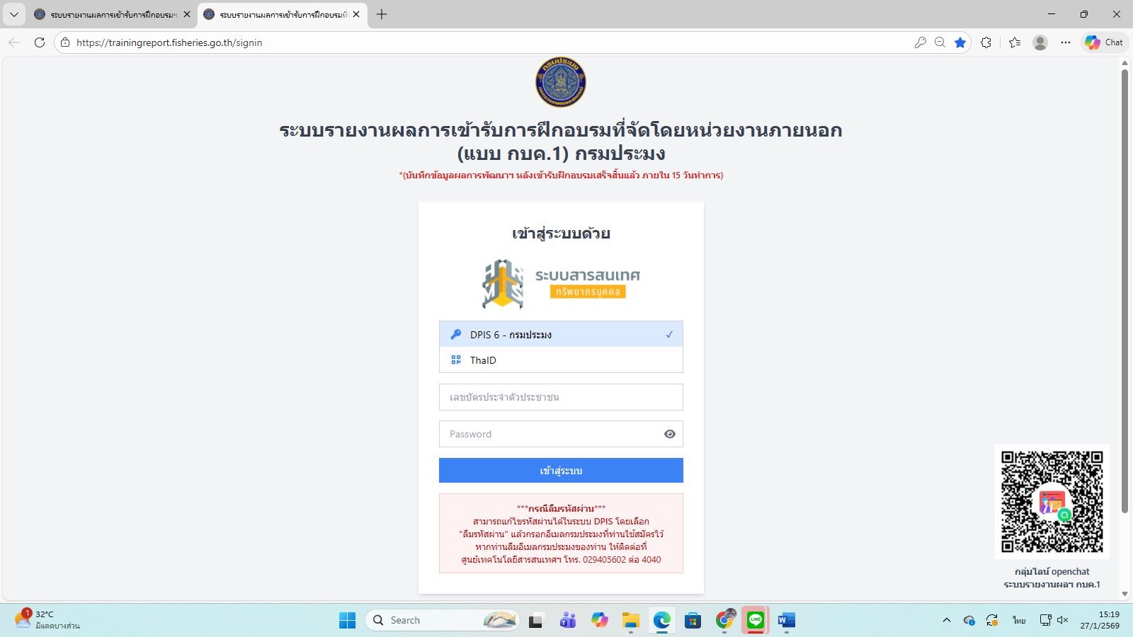 วันที่ 27 มกราคม 2569 เวลา 09.30 น. นายอำนาจ จีนขาวขำ ประมงจังหวัดราชบุรี มอบหมาย นางสาวปิยะพร เพลงสันเทียะ หัวหน้ากลุ่มบริหารและยุทธศาสตร์ เข้าร่วมการประชุมชี้แจงระบบรายงานผลการฝึกอบรมที่จัดโดยหน่วยงานภายนอก (กบค.1) กรมประมง สำหรับผู้ตรวจสอบของหน่วยงาน (Approver) ผ่านระบบ ZOOM Cloud Meeting ณ ห้องประชุมเสือตอ ศูนย์เทคโนโลยีสารสนเทศและการสื่อสาร กรมประมง