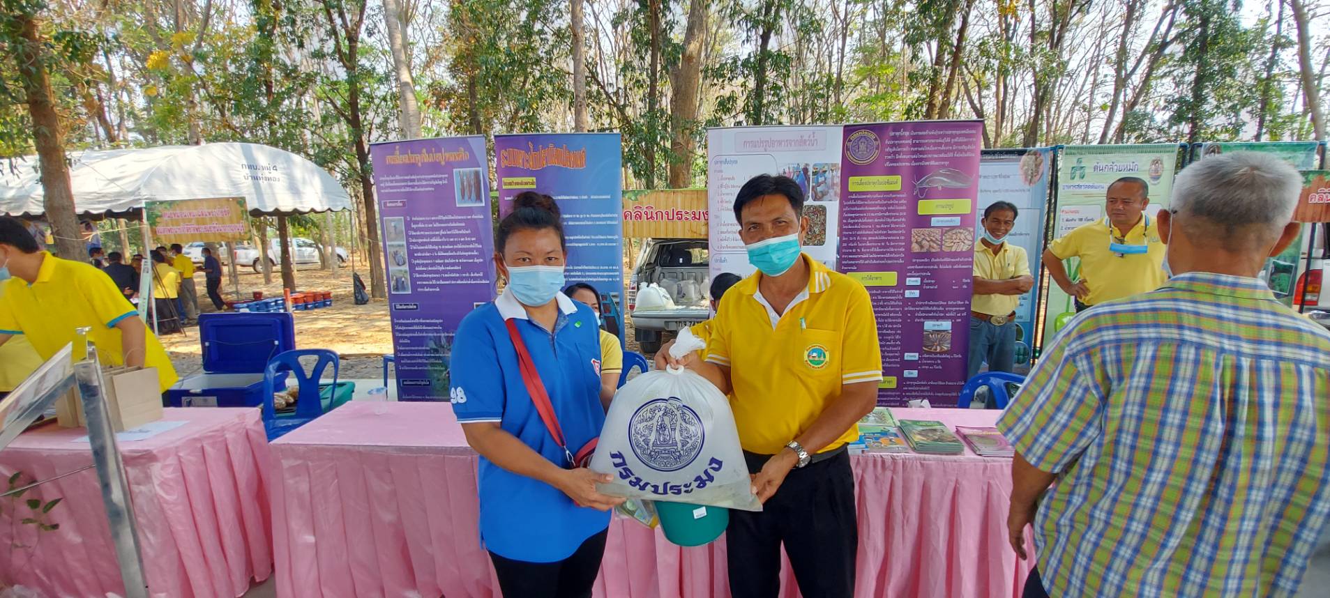 คลินิกเกษตรเคลื่อนที่ในพระราชานุเคราะห์ สมเด็จพระบรมโอรสาธิราชฯ สยามมกุฎราชกุมาร ครั้งที่ 2/2564 ณ องค์การบริหารส่วนตำบลทุ่งทอง ตำบลทุ่งทอง อำเภอท่าม่วง จังหวัดกาญจนบุรี โดยได้รับสนับสนุนพันธุ์ปลา จากศูนย์วิจัยและพัฒนาสัตว์น้ำจืดกาญจนบุรี จำนวน 50,000 ตัว เพื่อมอบแก่เกษตรกรผู้เพาะเลี้ยงสัตว์น้ำ ต่อไป
