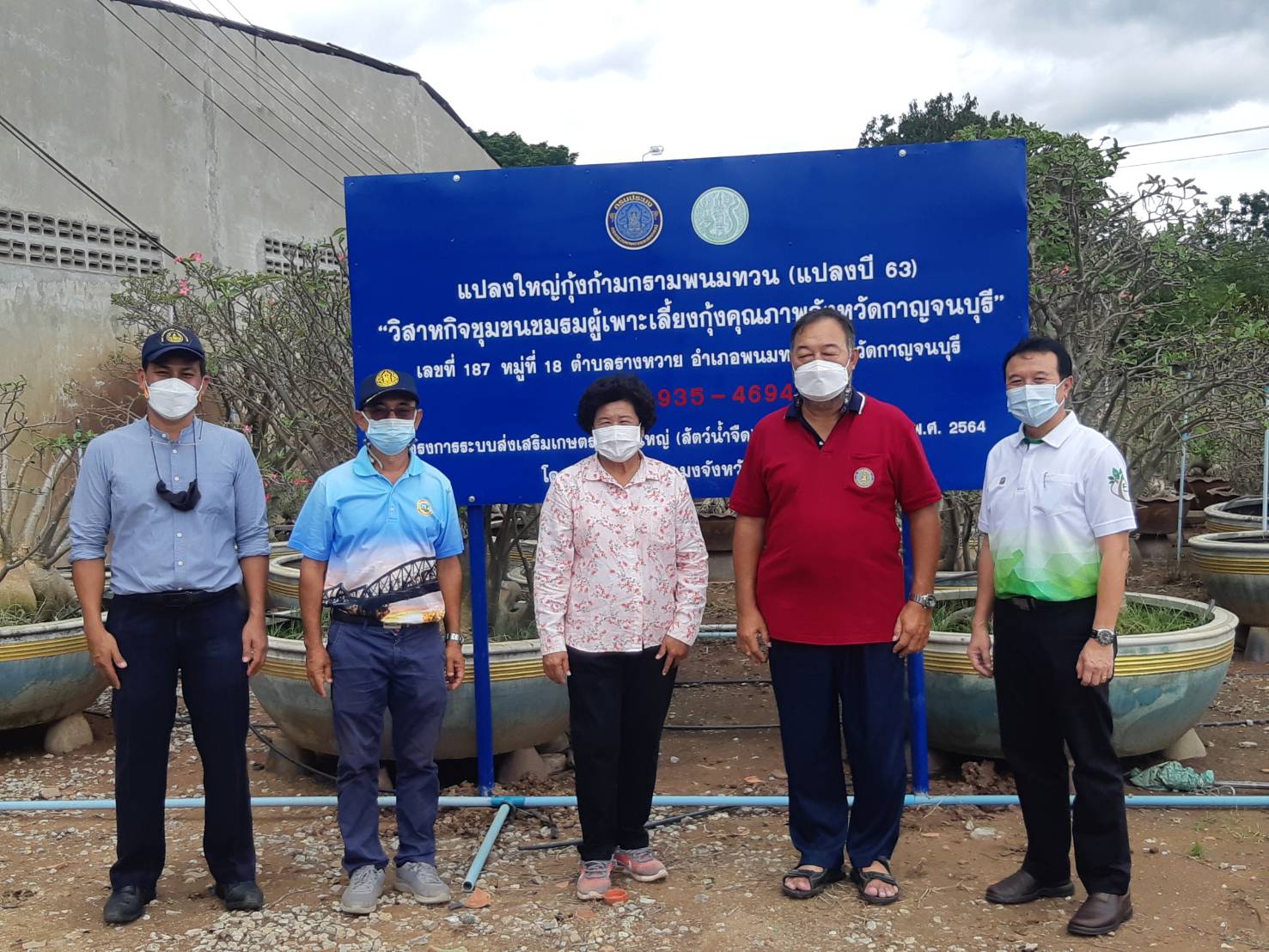 สุมงคล ผู้อำนวยการสำนักงานธนาคารเพื่อการเกษตรและสหกรณ์ จังหวัดกาญจนบุรี นายจิระพงศ์ ศิริวัฒน์ หัวหน้ากลุ่มพัฒนาและส่งเสริมอาชีพการประมง นางสาวณัฐวรรณ สุขสม เจ้าหน้าที่วิเคราะห์นโยบายและแผน และนางสาวฐานภา ปลาทิพย์ เจ้าหน้าที่วิเคราะห์นโยบายและแผน ได้เข้าชี้แจงรายละเอียดโครงการลดต้นทุนการผลิตกุ้งทะเลเพื่อเพิ่มขีดความสามารถการแข่งขันในอุตสาหกรรมกุ้งทะเลอย่างยั่งยืน ปี 2564 พร้อมให้คำแนะนำนางอรอนงค์ ธนพันธุ์ภูวเดช ประธานแปลงใหญ่กุ้งก้ามกรามอำเภอพนมทวน และผู้แทนกลุ่มเกษตรกรเพื่อเตรียมความพร้อมเพื่อการคัดเลือกเกษตรกรต้นแบบการเพาะเลี้ยงกุ้งก้ามกราม (ระดับประเทศ) ปีงบประมาณ 2564