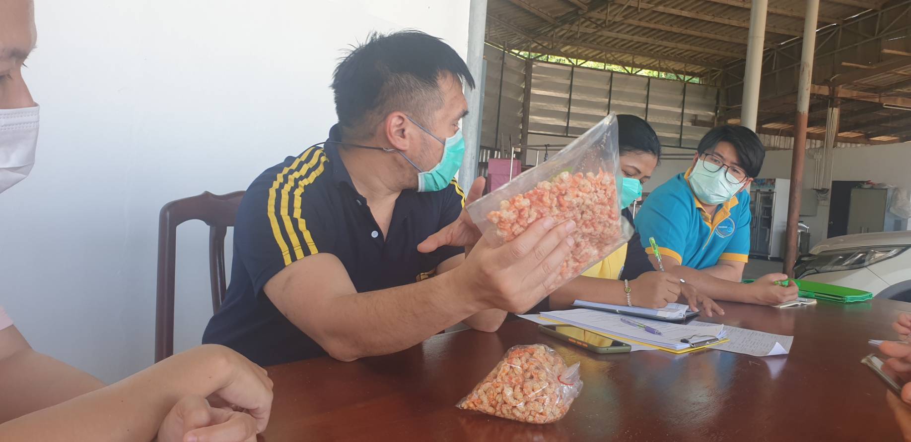 กองวิจัยและพัฒนาเทคโนโลยีอุตสาหกรรมสัตว์น้ำ พร้อมด้วย นางสาวสุวรรณา รักวงศ์ นักวิชาการประมง นายชนก กาญจนมยูร นักวิชาการผลิตภัณฑ์อาหาร และนางสาวจุฑารัตน์ บัวทอง นักวิชาการผลิตภัณฑ์อาหาร  ดำเนินการพัฒนาศักยภาพผู้ประกอบการแปรรูปสัตว์น้ำโดยการเข้าสำรวจการดำเนินงานของกลุ่มแม่บ้านเกษตรกรและสุ่มตัวอย่างผลิตภัณฑ์มาวิเคราะห์คุณภาพ