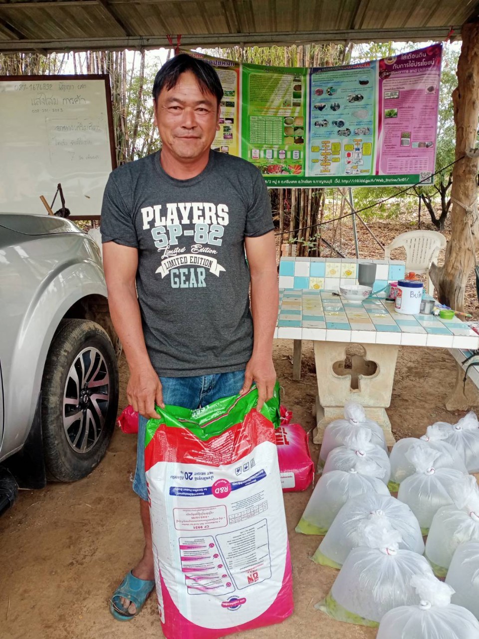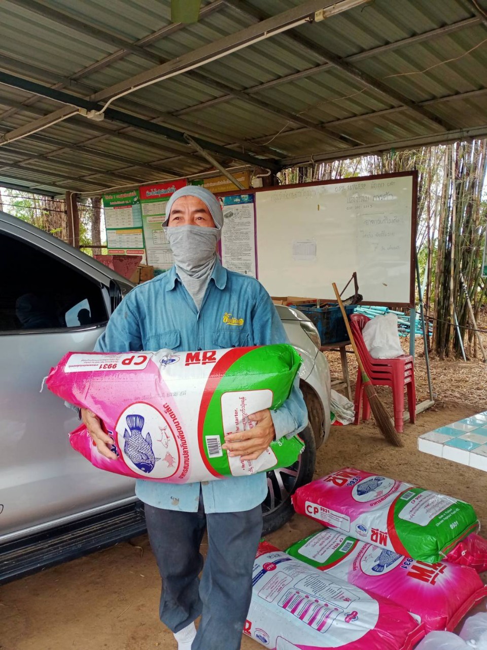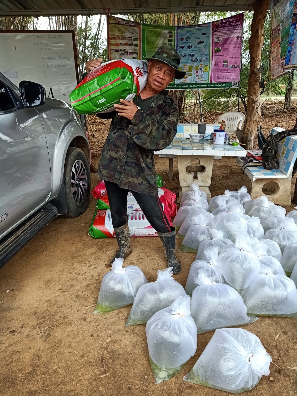 ดำเนินการมอบวัสดุการเกษตร ให้แก่เกษตรกรที่เข้าร่วมโครงการส่งเสริมอาชีพประมง กิจกรรมส่งเสริมเกษตรทฤษฎีใหม่ด้านการประมง ในพื้นที่ ตำบลศรีมงคล อำเภอไทรโยค จังหวัดกาญจนบุรี จำนวน 10 ราย