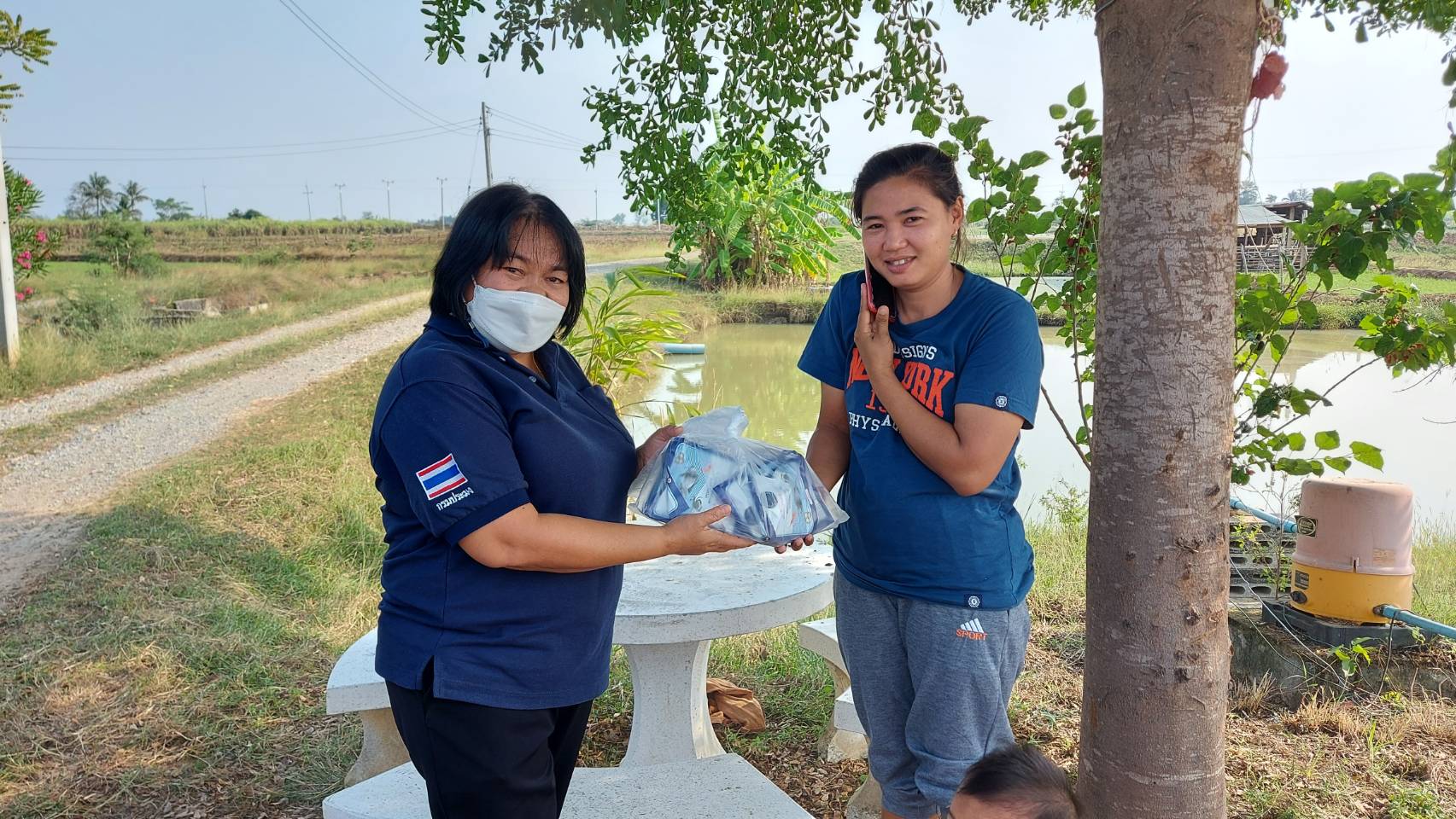 ข้าพเจ้านางสาวศิวพร  ราชสุวรรณ  ประมงอำเภอพนมทวน ติดตามส่งเสริมเกษตรกรแบบแปลงใหญ่กุ้งก้ามกราม แปลงวิสาหกิจชุมชนชมรมผู้เพาะเลี้ยงกุ้งคุณภาพจังหวัดกาญจนบุรี มอบหัวเชื้อจุลินทรีย์ (ปม.1)  ให้แก่เกษตรกรผู้เข้าร่วมโครงการฯ  ในพื้นที่ตำบลรางหวาย อำเภอพนมทวน จังหวัดกาญจนบุรี จำนวน 5 ราย