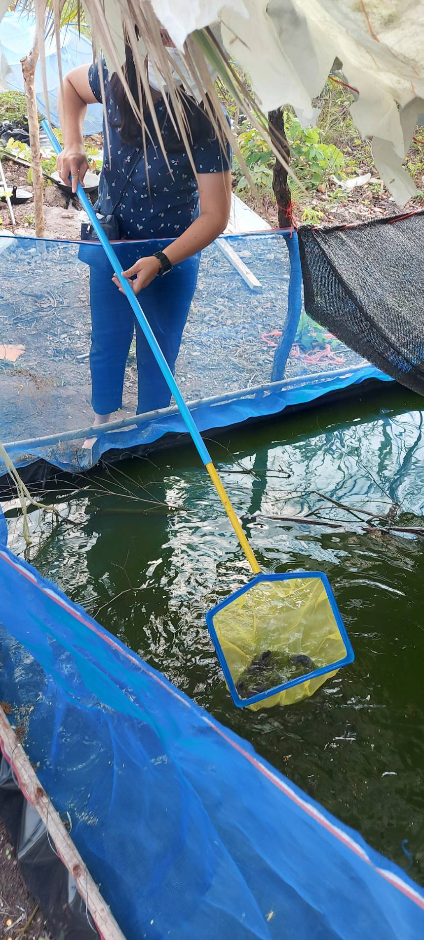 ข้าพเจ้า นางรัชนีกร รัตนา ประมงอำเภอไทรโยค เข้าตรวจติดตามเกษตรกรที่เข้าร่วมโครงการส่งเสริมและพัฒนาอาชีพเพื่อแก้ไขปัญหาที่ดินทำกินของเกษครกรปี 2565 กิจกรรมส่งเสริมการเพาะเลี้ยงปลาดุกในกระชังบก