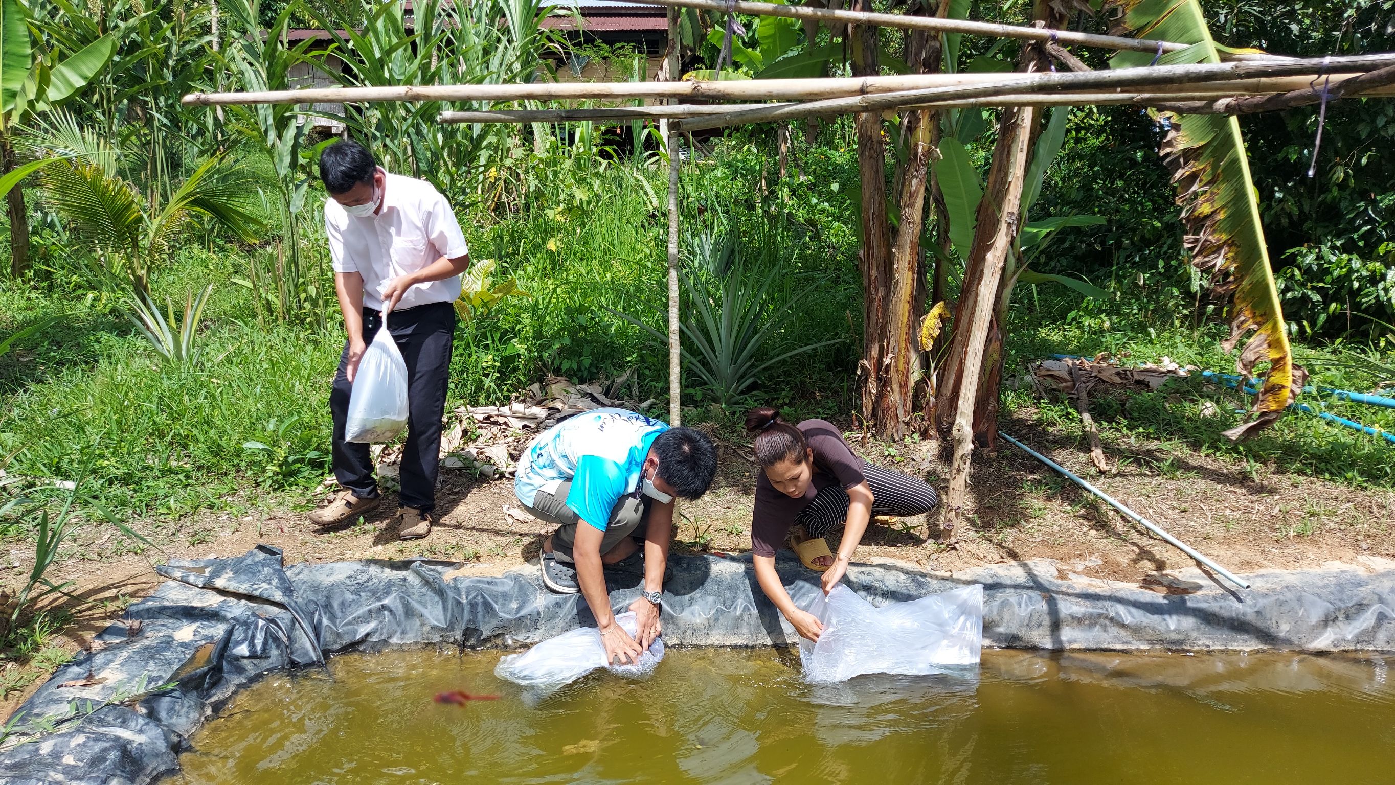 วันที่ 17 พฤษภาคม 2565  นายวรรณนัฑ หิรัญชุฬหะ ประมงจังหวัดกาญจนบุรี   ได้มอบหมายให้นางสาวธิดาวรรณ โพธิ์เพ็ชร เจ้าพนักงานประมงอาวุโส นายนฤนาท เผือกจีน ประมงอำเภอสังขละบุรี นายอภิศักดิ์ สงวนธรรม นักวิชาการประมงและนายเกียรติศักดิ์ เรืองจรูญ  เจ้าหน้าที่วิเคราะห์นโยบายและแผน  ได้เข้าพื้นที่ปฏิบัติงานกิจกรรมส่งเสริมการเลี้ยงสัตว์น้ำเพื่อบริโภคและลดรายจ่ายในครัวเรือนติดตามการเลี้ยงสัตว์น้ำรายครัวเรือน มอบปัจจัยการเลี้ยงปลา เลี้ยงกบในกระชังบก และติดตามงานโครงการพัฒนาชุมชนในเขตรักษาพันธุ์สัตว์ป่าและอุทยานแห่งชาติ จังหวัดกาญจนบุรี  ในพื้นที่หมู่ที่ 4 บ้านไล่โว่ – สาละวะ ตำบลไล่โว่ อำเภอสังขละบุรี จังหวัดกาญจนบุรี