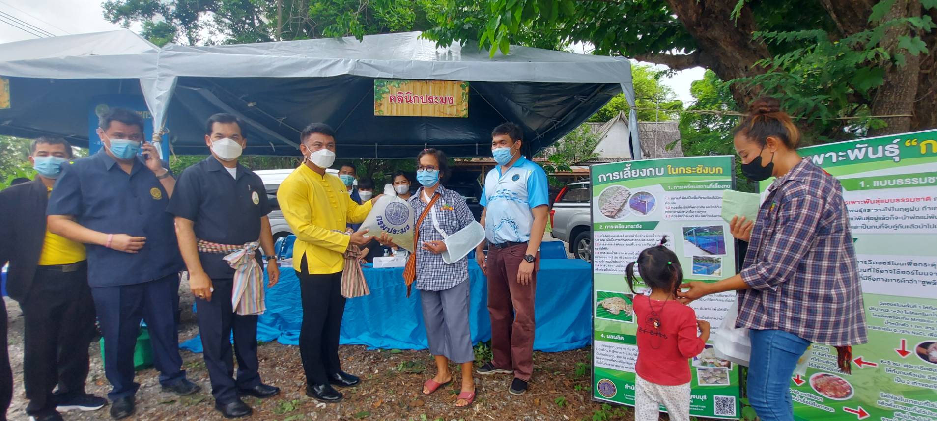 นายวรรณนัฑ หิรัญชุฬหะ ประมงจังหวัดกาญจนบุรี มอบหมายให้นายภาคย์ จินดาโชติ ประมงอำเภอศรีสวัสดิ์ พร้อมด้วยเจ้าหน้าที่กลุ่มพัฒนาและส่งเสริมอาชีพการประมง ร่วมจัดงานคลินิกเกษตรเคลื่อนที่ในพระราชานุเคราะห์ สมเด็จพระบรมโอรสาธิราชฯ สยามมกุฎราชกุมาร ครั้งที่ 3 ประจำปีงบประมาณ พ.ศ. 2565 ณ หอประชุมอำเภอศรีสวัสดิ์ ตำบลด่านแม่แฉลบ อำเภอศรีสวัสดิ์ จังหวัดกาญจนบุรี