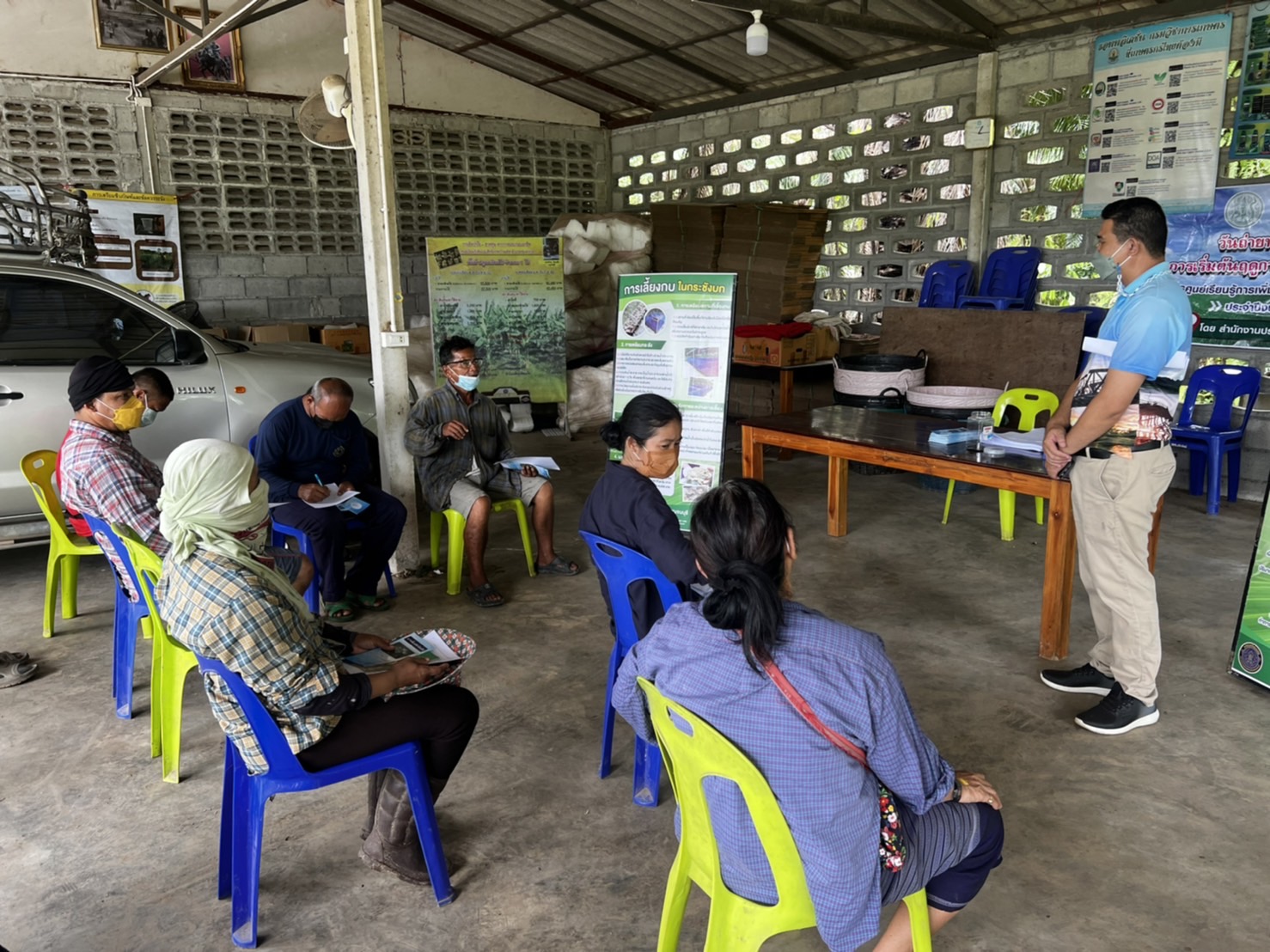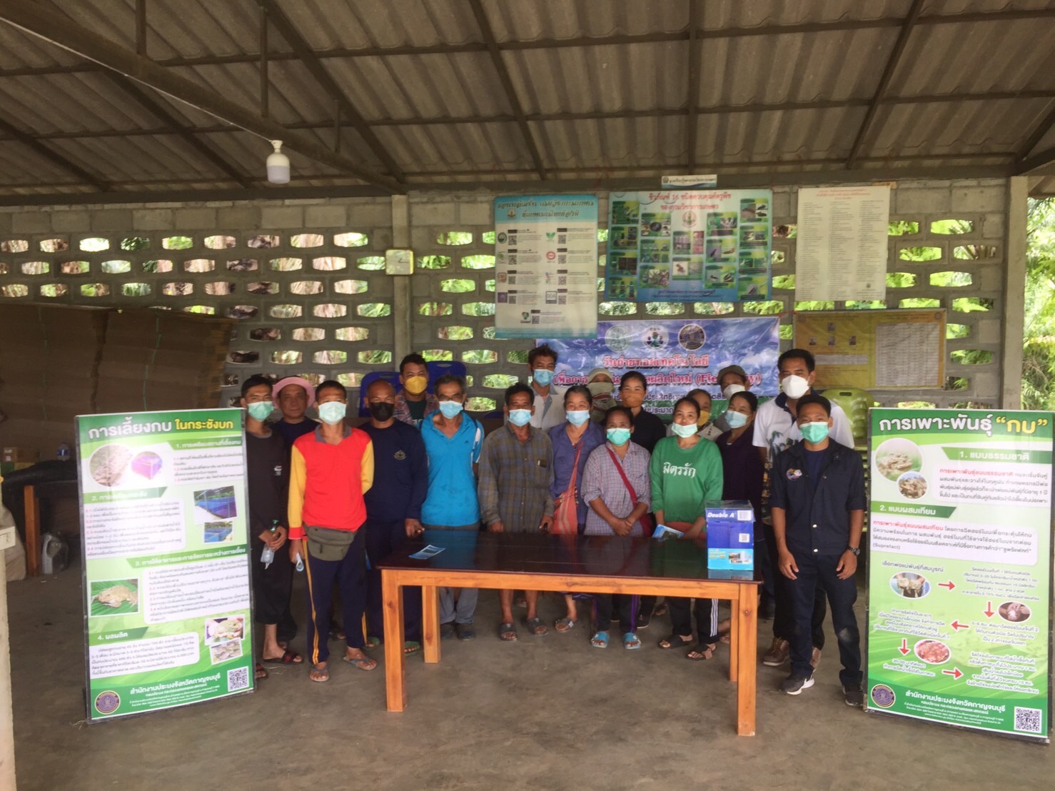 โดยสำนักงานประมงจังหวัดกาญจนบุรี (ได้ถ่ายทอดความรู้เรื่อง การเลี้ยงกบในกระชังบกโดยใช้น้ำน้อย,การขึ้นทะเบียนเกษตรกร/ประชาสัมพันธ์ห้ามจับสัตว์น้ำในฤดูปลาวางไข่ และงานในหน้าที่ที่เกี่ยวข้อง)