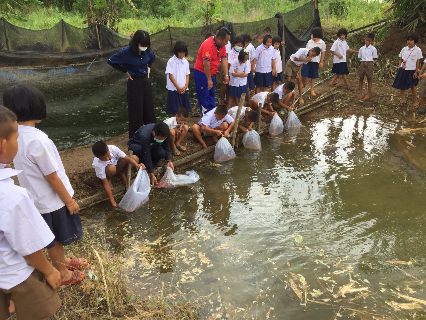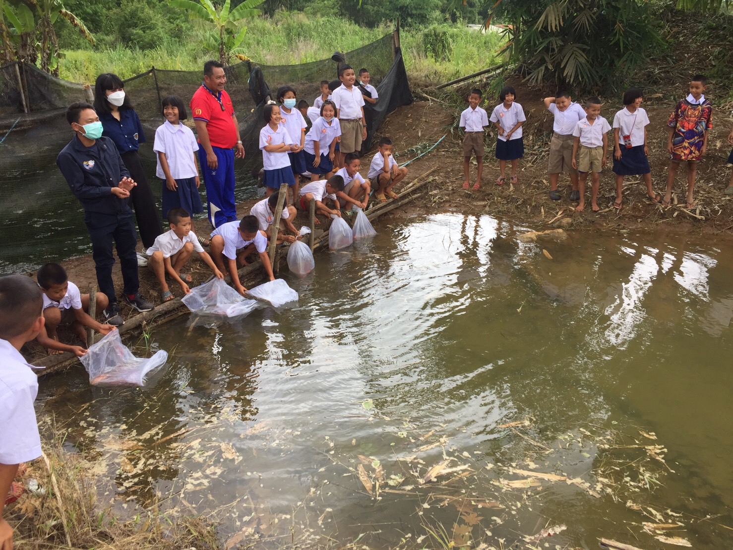 นายวรรณนัฑ หิรัญชุฬหะ ประมงจังหวัดกาญจนบุรี ได้มอบหมายให้ นายเติมศักดิ์ คงสำราญ เจ้าหน้าที่กลุ่มพัฒนาและส่งเสริมอาชีพการประมง นางสาวลักษณพร ขันทะมา และนายภควรรษ คงเพ็ชรศักดิ์ ร่วมปฏิบัติงาน โครงการเพียงหลวงฯ โดยได้มอบพันธุ์สัตว์น้ำ อาหารสัตว์น้ำ และอบรมคณะกรรมการด้านการเพาะเลี้ยงสัตว์น้ำของโรงเรียนจำนวน 10 ราย