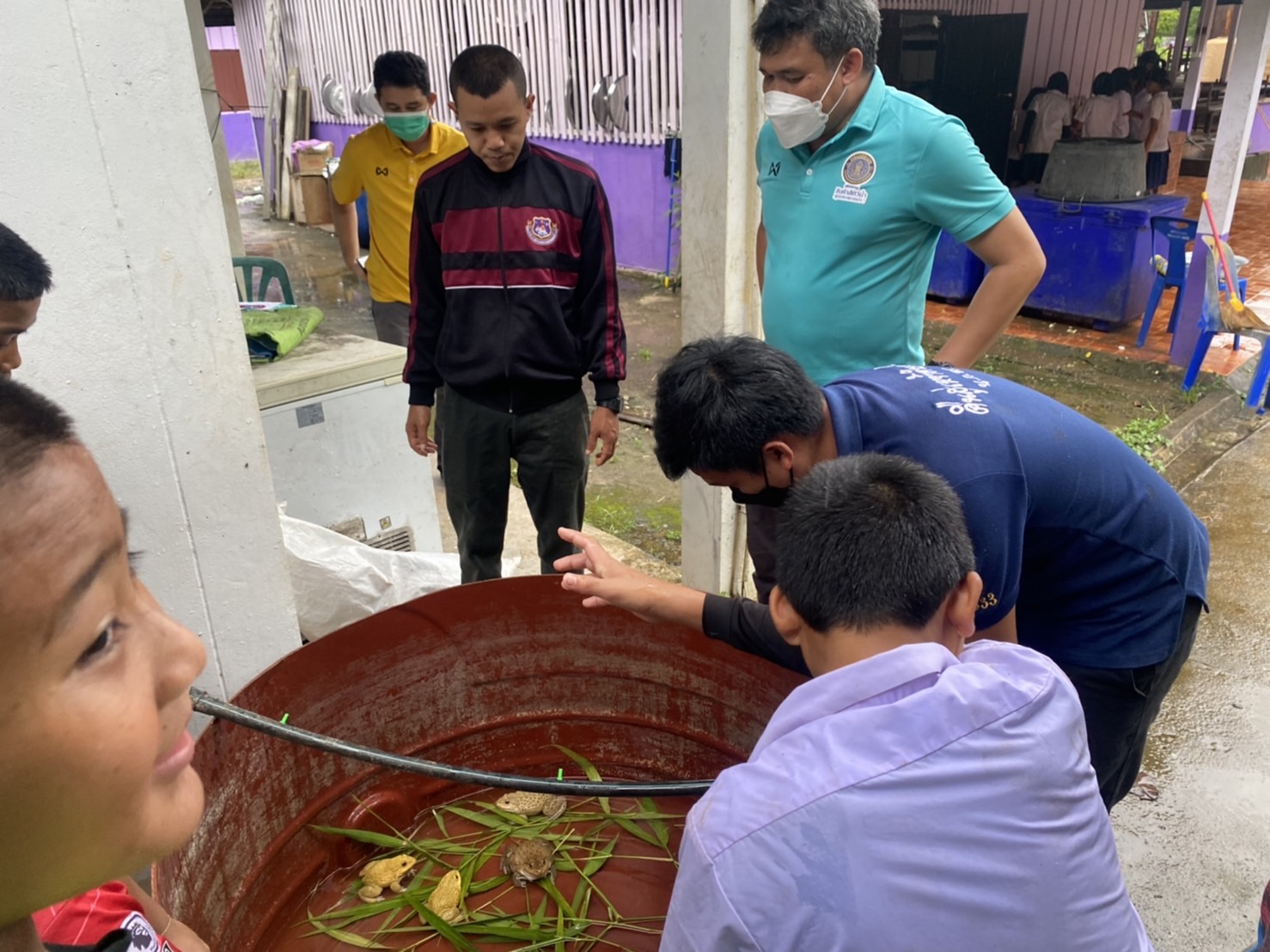 นายวรรณนัฑ หิรัญชุฬหะ ประมงจังหวัดกาญจนบุรี ได้มอบหมายให้นายเติมศักดิ์ คงสำราญ นักวิชาการประมงปฏิบัติการ นายสุระสิทธิ์ กุลชาติ นักวิชาการประมง นายภาคย์ จินดาโชติ ประมงอำเภอศรีสวัสดิ์ และนายนฤนาท เผือกจีน ประมงอำเภอสังขละบุรี  เข้าดำเนินการต่อยอดกิจกรรมประมงโรงเรียน ภายใต้โครงการพระราชดำริ สมเด็จพระกนิษฐาธิราชเจ้า กรมสมเด็จพระเทพรัตนราชสุดาฯ สยามบรมราชกุมารี โดยการฝึกเพาะพันธุ์กบให้แก่ครู และ นักเรียน พร้อมสนับสนุน พ่อแม่พันธุ์ อาหารวัยอ่อน วัสดุอุปกรณ์ และเอกสารเผยแพร่ด้านการประมง ไปมอบให้แก่ทางโรงเรียนตำรวจตระเวนชายแดนวัดสุธาสินี หมู่ที่ 4 ตำบลบ้องตี้ อำเภอไทรโยค และ ศูนย์การเรียนตำรวจตระเวนชายแดนหลวงประกอบนิติสารและโรงเรียนสุทรเวช อำเภอสังขละบุรี โดยได้รับความร่วมมือในการดำเนินโครงการดังกล่าวจากทางโรงเรียนเป็นอย่างดี