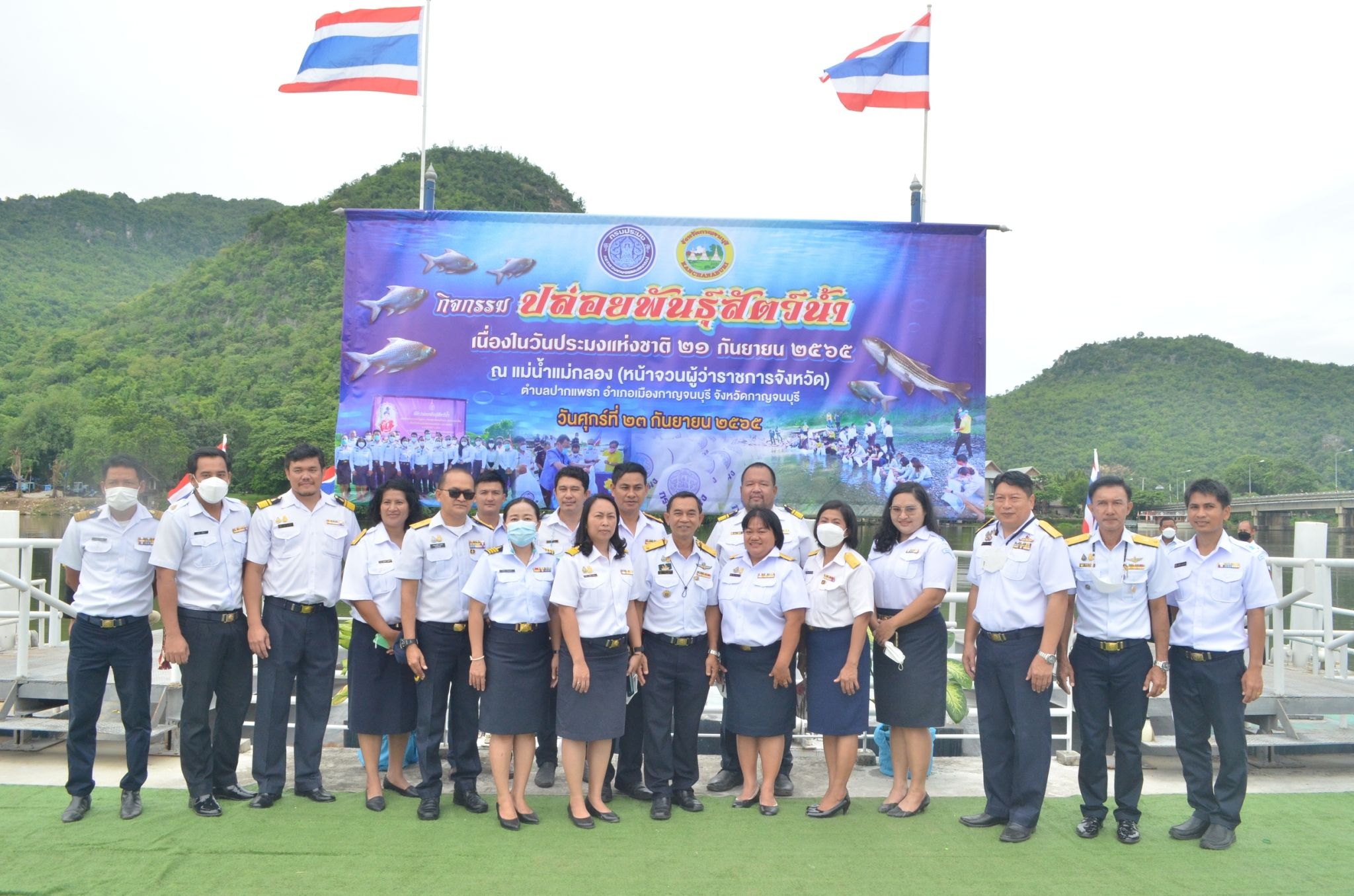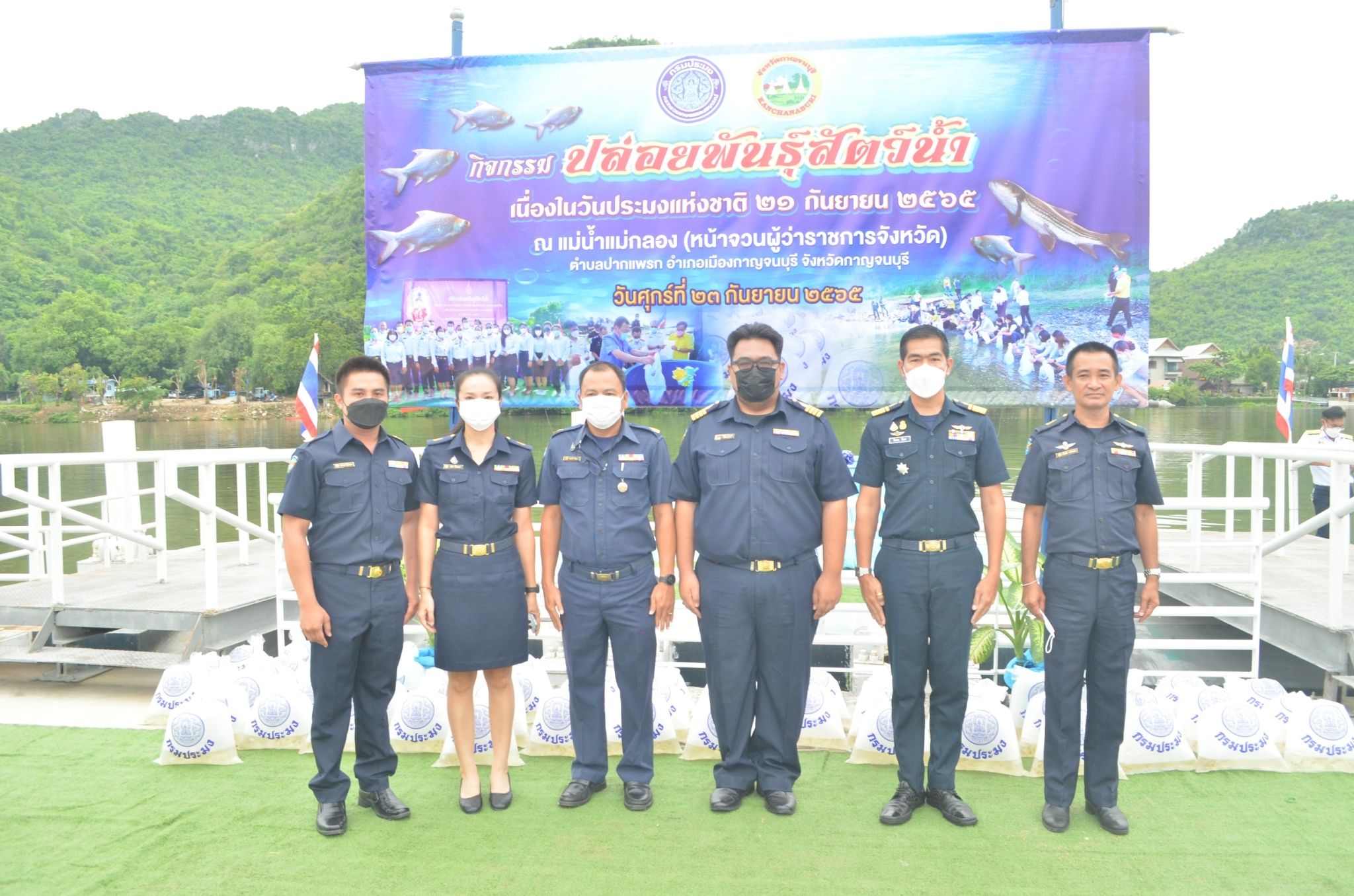 วันที่ 23 กันยายน  2565 จังหวัดกาญจนบุรีโดยสำนักงานประมงจังหวัดกาญจนบุรี นายวรรณนัฑ หิรัญชุฬหะ ประมงจังหวัดกาญจนบุรี ร่วมกับหน่วยงานในสังกัดกรมประมงในจังหวัดกาญจนบุรี จัดกิจกรรมปล่อยพันธุ์สัตว์น้ำเนื่องในวันประมงแห่งชาติ ประจำปี  2565  ณ แม่น้ำแม่กลอง บริเวณหน้าจวนผู้ว่าราชการจังหวัด ตำบลปากแพรก อำเภอเมืองกาญจนบุรี จังหวัดกาญจนบุรี  โดยมีนายจีระเกียรติ ภูมิสวัสดิ์ ผู้ว่าราชการจังหวัดกาญจนบุรี เป็นประธาน  มีหัวหน้าส่วนราชการ กำนัน ผู้ใหญ่บ้าน ผู้นำองค์กรปกครองส่วนท้องถิ่น เจ้าหน้าที่หน่วยงานและประชาชนทั่วไป เข้าร่วมในงานเป็นจำนวนมาก โดยมีพันธุ์สัตว์น้ำจากศูนย์วิจัยและพัฒนาประมงน้ำจืดกาญจนบุรี จำนวน 300,000 ตัว